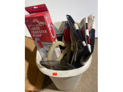 9668 Black Storage Bucket with Automotive Jumping Accessories and Portable Heater