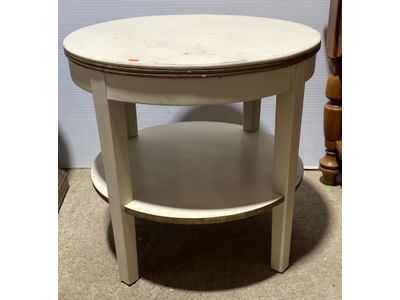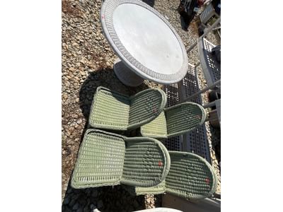 9636 White Woven Round Table with 4 Green Wicker Chairs, 4’ Diameter (Wearing Visible)