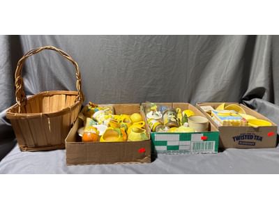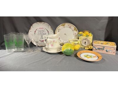 6012 Lemon-Themed Pitchers, Serving Platter, and Covered Dish, 5.5”x5.5”, 12”, 4.5”x5”, 8.5”x9”