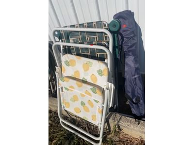 9707 3 Folding Chairs with Multicolored Fabric and Metal Frames