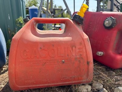 9671 Red Johnson Gasoline Tank with Connector & Blue Rubbermaid Fuel Container, 18?x9?, 16?