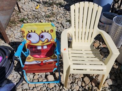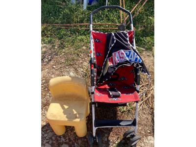 9659 Child’s Plastic Chair and Foldable Stroller with Nascar Blanket