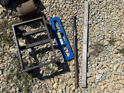 9681 Metal Rolling Frame, Blue Leveler, Pry Bar, and Metal Beam, 21”x14.5”x9”, 24”, 34”, 45.5”