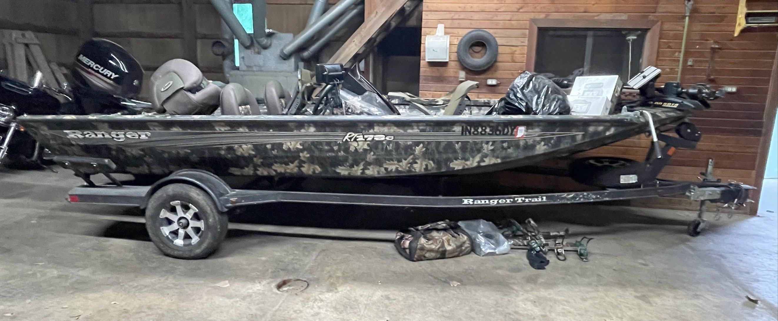 10000 2017 Ranger Trail RT178C Fishing Boat with Mercury 60ELPT 4-Stroke in Mossy Oak Breakup Camo with Ranger Trail Single Axle Trailer, Boat and Trailer Both Have Titles, Boat VIN: RGR92455d717, Boat VIN: 567RSBM12HF157963 - PICK UP AT ALTERNATE LOCATION IN WABASH, IN - THIS BOAT AND TRAILER WILL HAVE A $25 TITLE FEE ADDED TO THE WINNING INVOICE