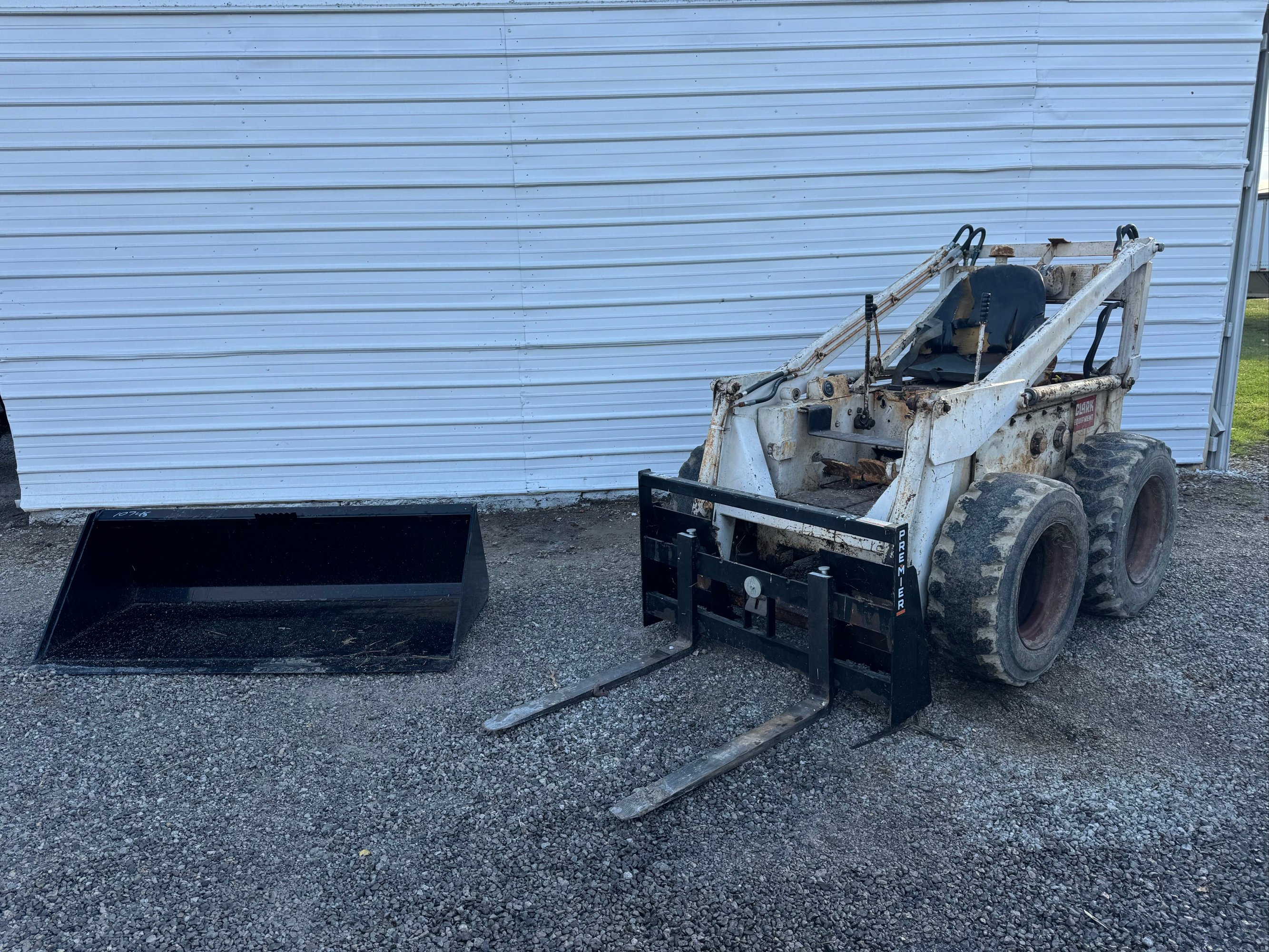 10021 Bobcat 610 with buckets, New battery, final drives just rebuilt, variable speed just rebuilt, new headgasket, brand new pallet forks and 66 inch bucket - PICK UP AT ALTERNATE LOCATION IN HUNTINGTON, IN
