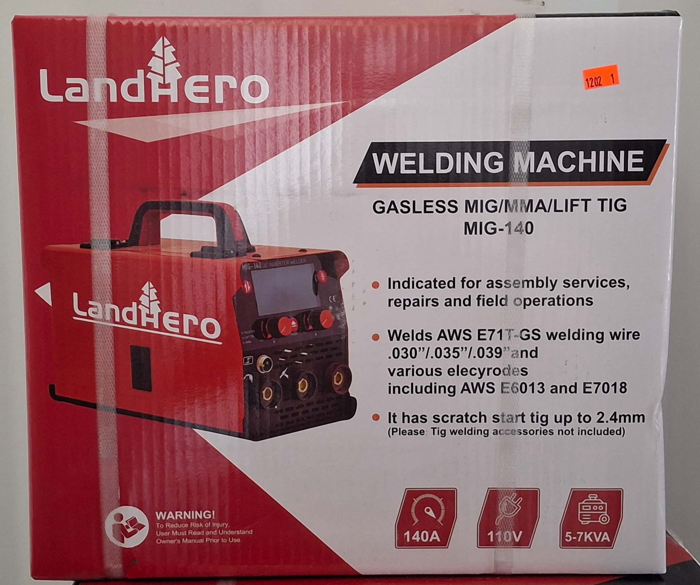 12010 LandHero Gasless MIG/MMA/LIFT TIG MIG-140 Welding Machine (New in box)