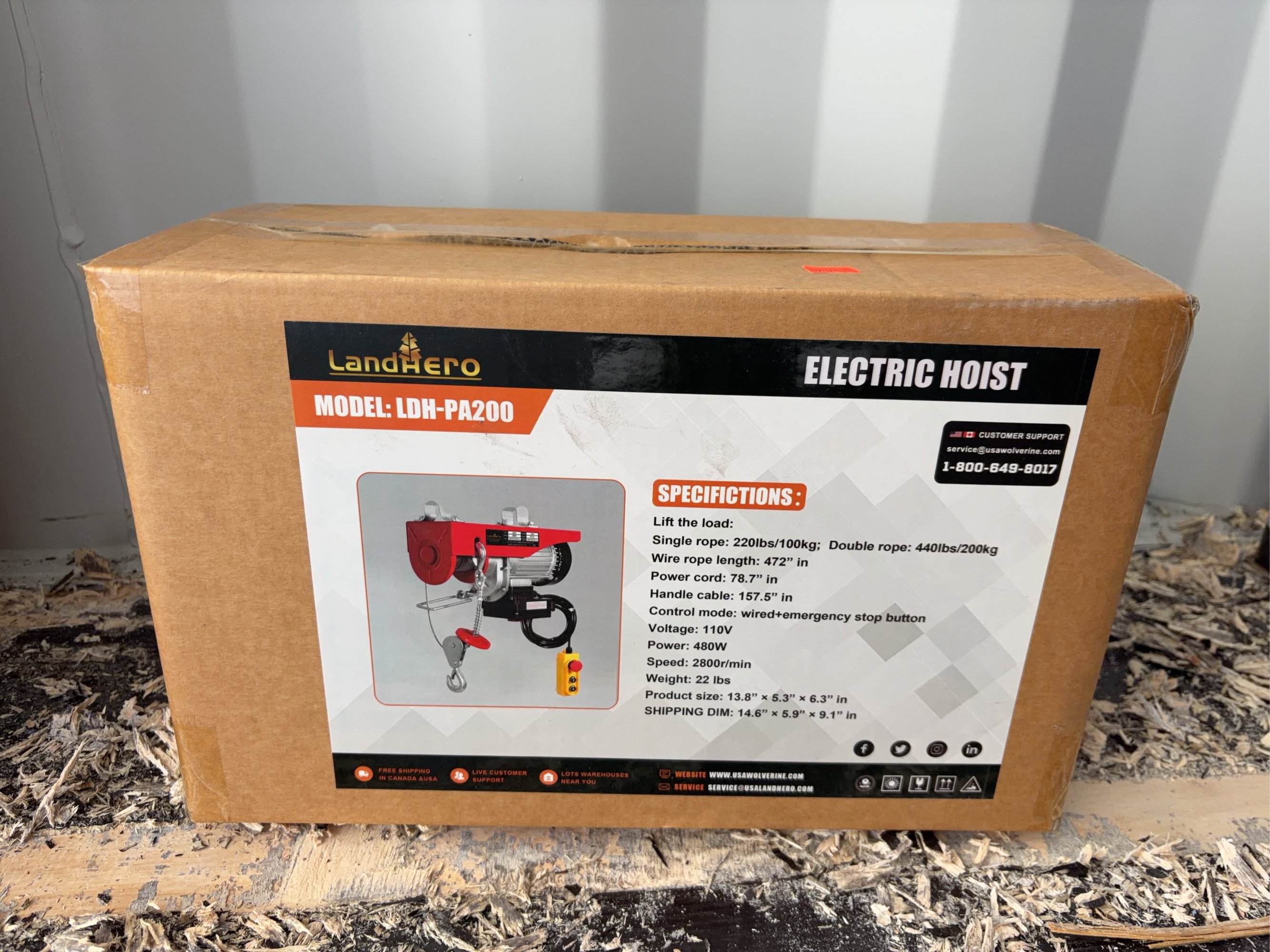 12023 Land Hero electric hoist model LDH-PA200 in factory sealed box,