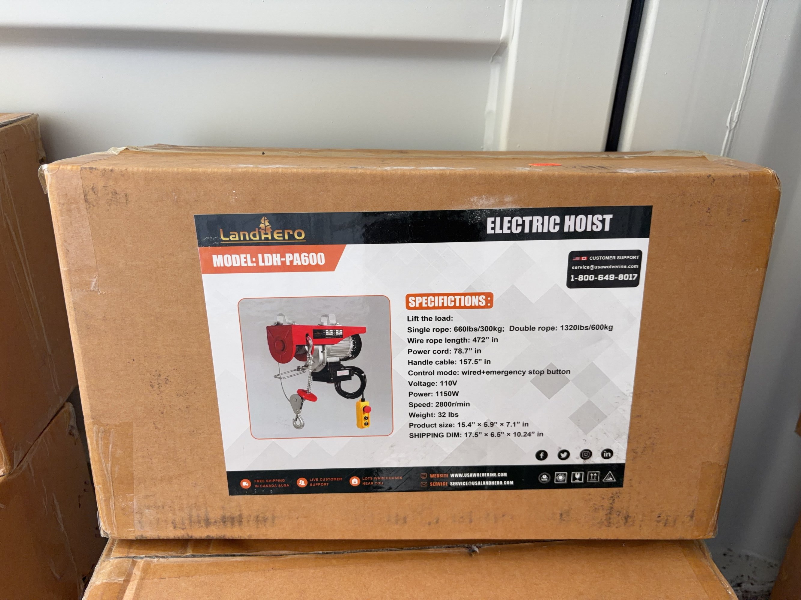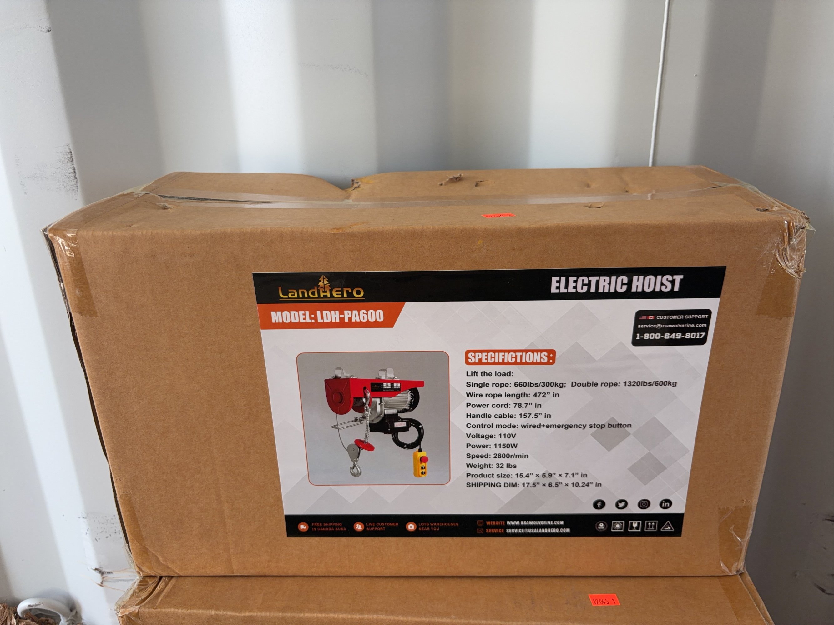 12025 Land Hero electric hoist model LDH-PA600 in factory sealed box