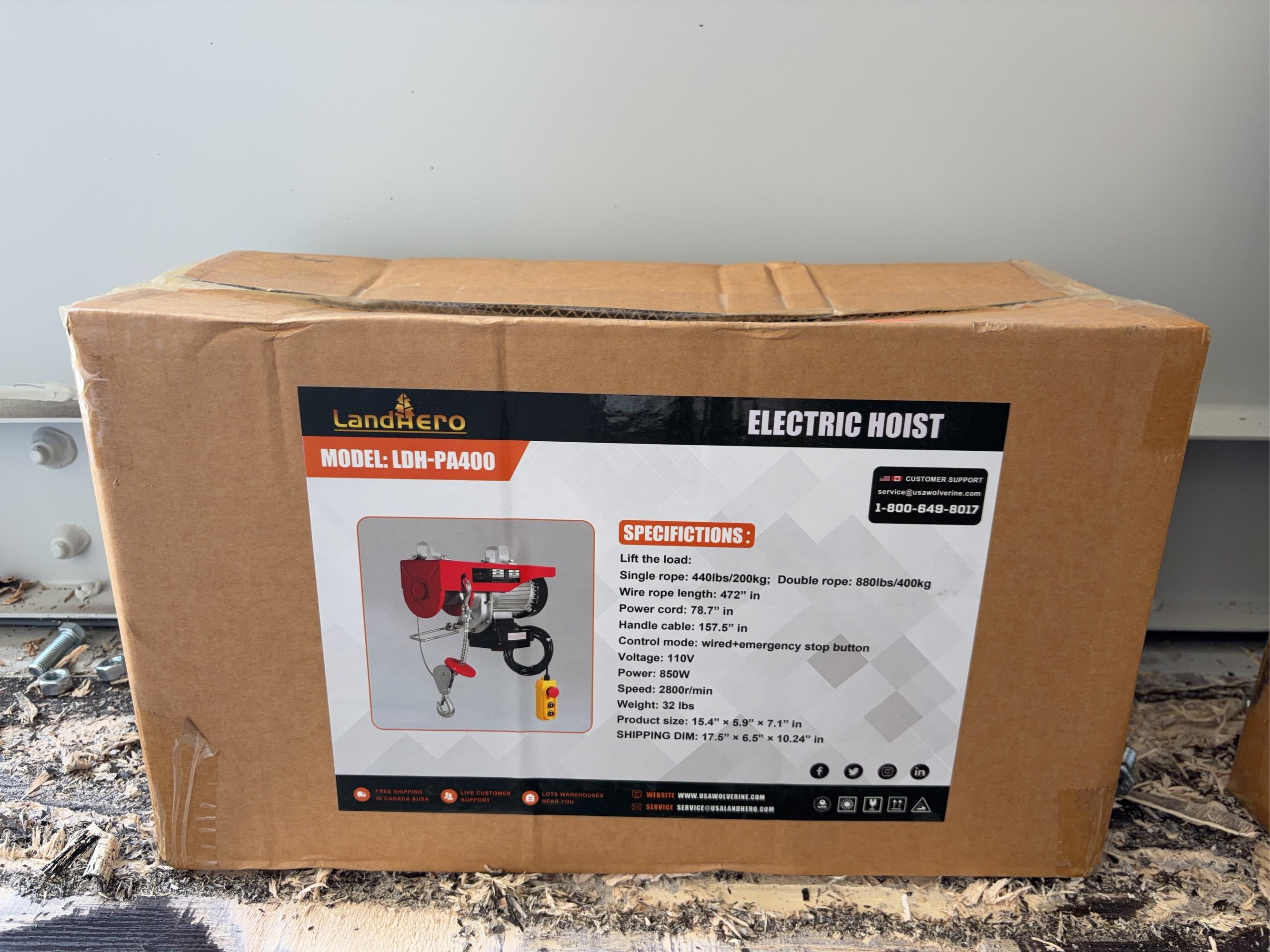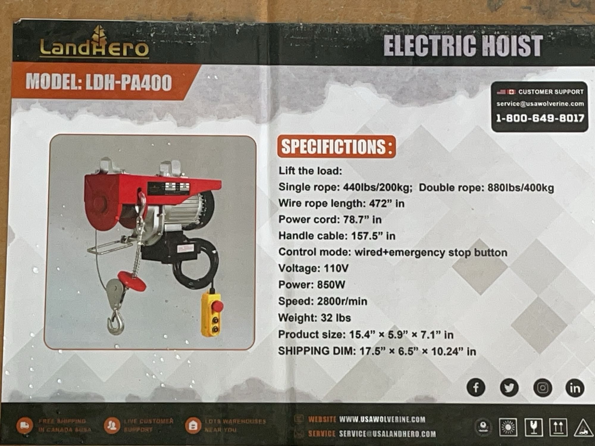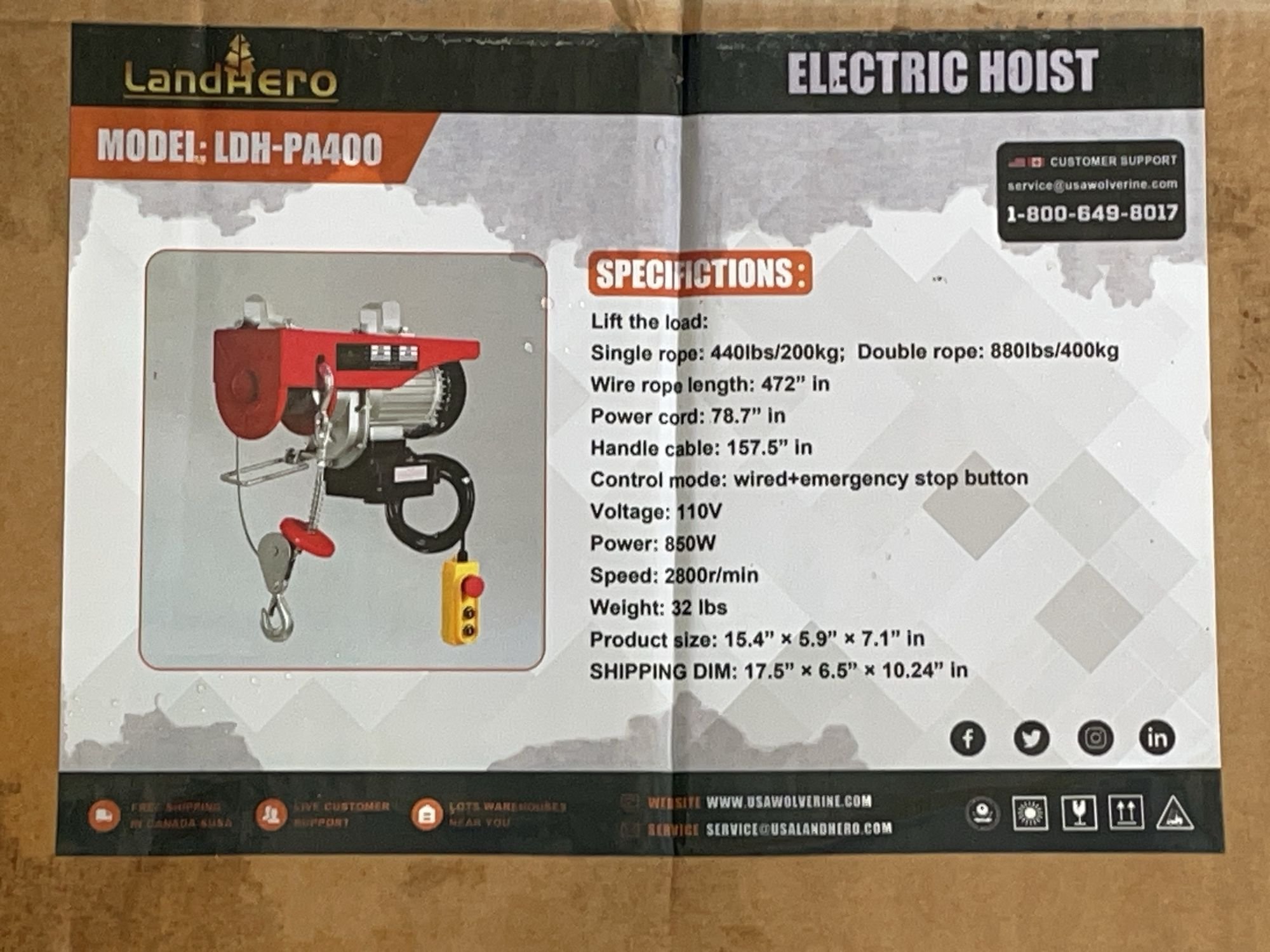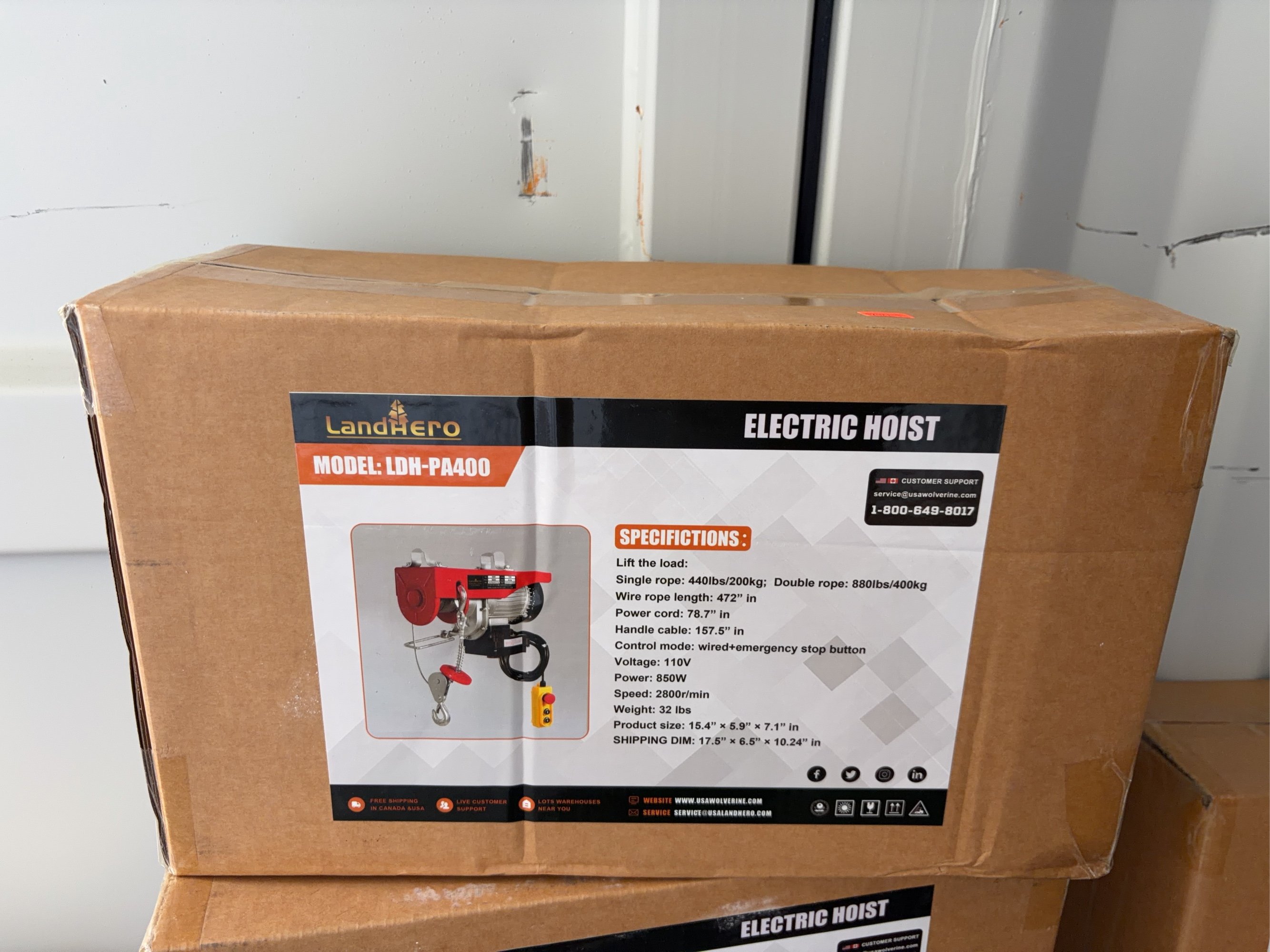 12028 Land Hero electric hoist model LDH-PA400 in factory sealed box