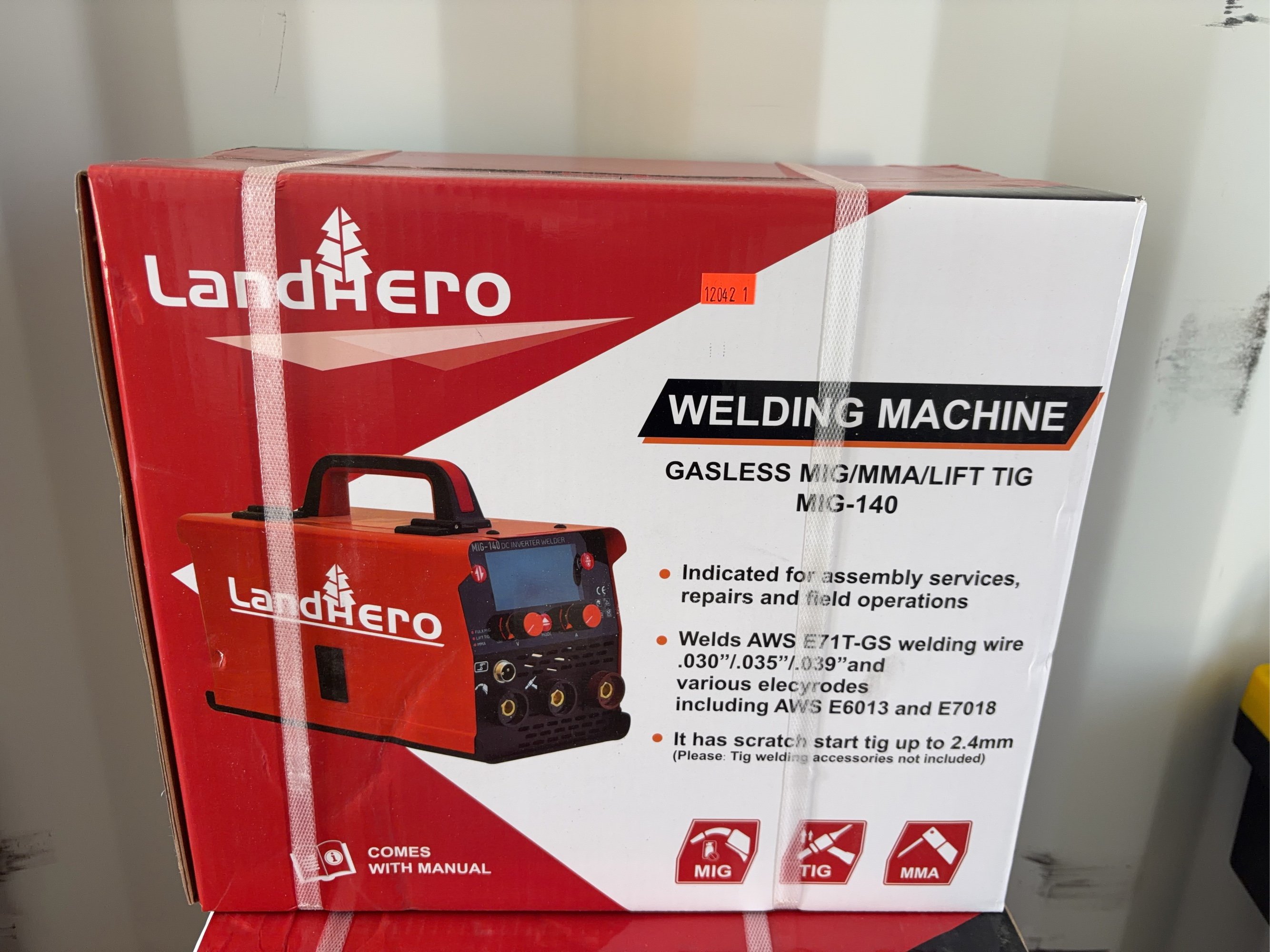 12043 Land Hero Welding Machine Gasless Mig/MMA/ Tig Mig-140 in factory sealed box