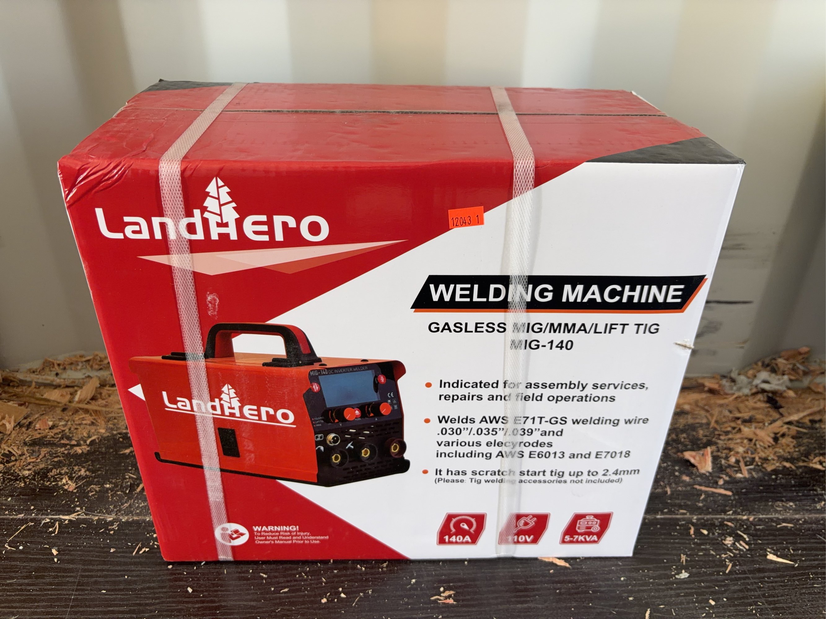 12009 LandHero Gasless MIG/MMA/LIFT TIG MIG-140 Welding Machine (New in box)