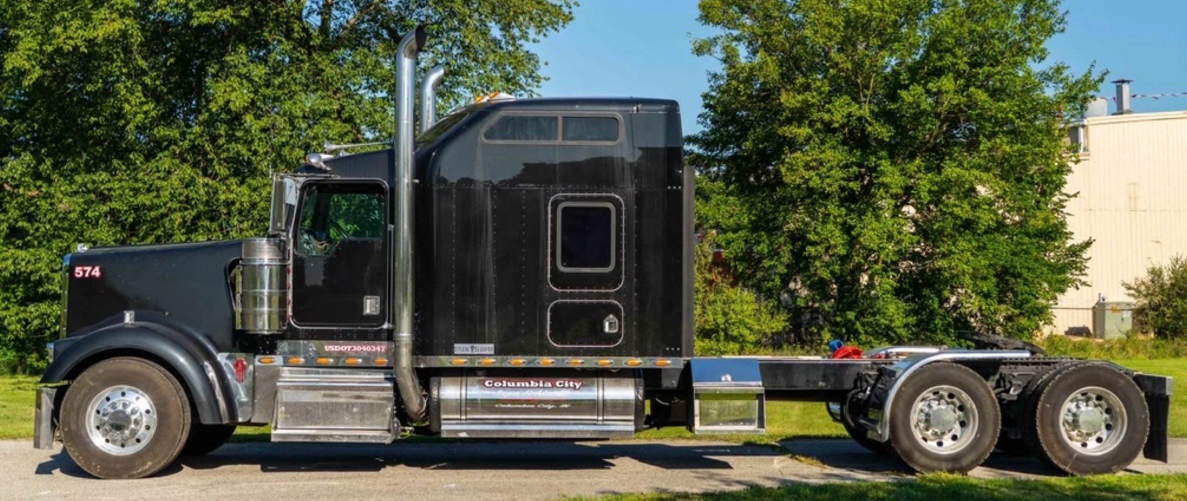 51 2000 Kenworth W-900 Semi Truck, Comprehensive Restoration Integrating 30 Foot Frame Rails, 16.0 Liter 3406E Caterpillar Inline 6-Cylinder Engine, 1999 Pre-ELD/Pre Emission Engine, New Rods and Mains last Year, Remanufactured 18 Speed Manual Transmission, New Four Bag Low-Mount Peterbilt Air Suspension, New Bushings and Shocks, New Brakes, Leather Upholstery, New Floor, 26,369 Miles, has title, VIN 1XKWDB9X7YR853274 - PICK UP AT ALTNERATE LOCATION IN COLUMBIA CITY, IN - A $25 TITLE FEE WILL BE ADDED TO THE WINNING INVOICE