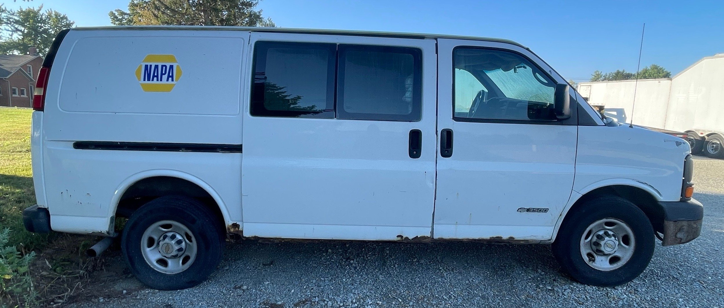 6198 2004 Chevy Express G3500 Van, 356,776 Miles, Drove in, Has Significant Rust, Gas, Used as a fleet vehicle for deliveries, Has Title, VIN: 1GCHG35U641160654 - THIS VAN WILL HAVE A $25 TITLE FEE ADDED TO THE WINNING INVOCE