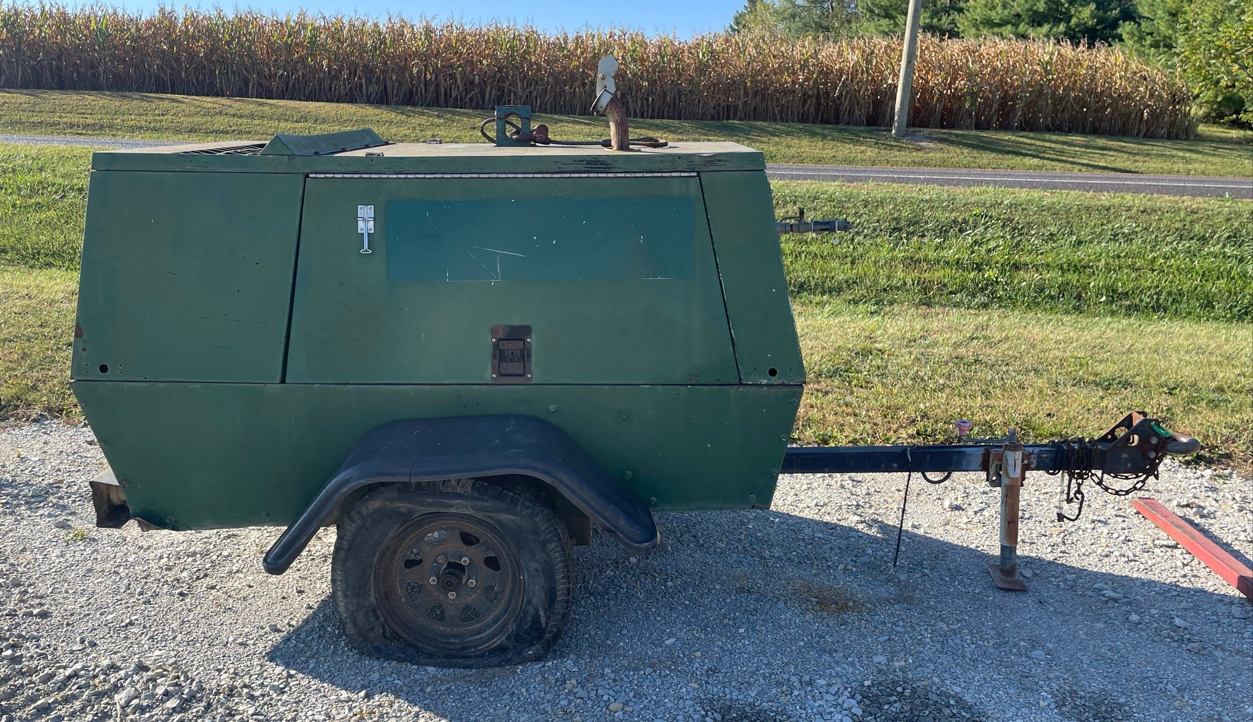 6338 Sullair Diesel Towable Air Compressor, Model 185 DPW JD, 185 CFM, Motor Runs and Operates,Has Flat Tire