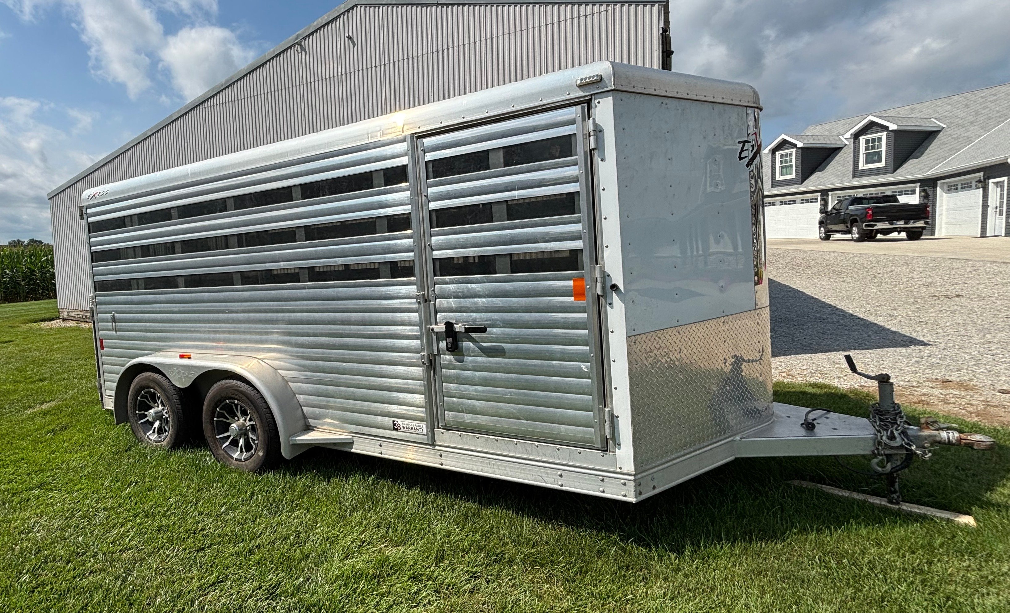 64 2013 Exciss C-Series STCLP714 Bumper Pull, Tandem Axle, Livestock Trailer Inside Trailer Height: 72" Floor to bows in ceiling Inside width, side-to-side, 82" Currently had 4 pens on the inside, each 41" wide and 55" long Ramp was all put on with stainless steel, tube and bolts, can be unbolted to remove if wanted Fits up to 3 fat steers VIN#4LAES1426D5059284 HAS TITLE, a $25 title administration fee will be to the winning invoice