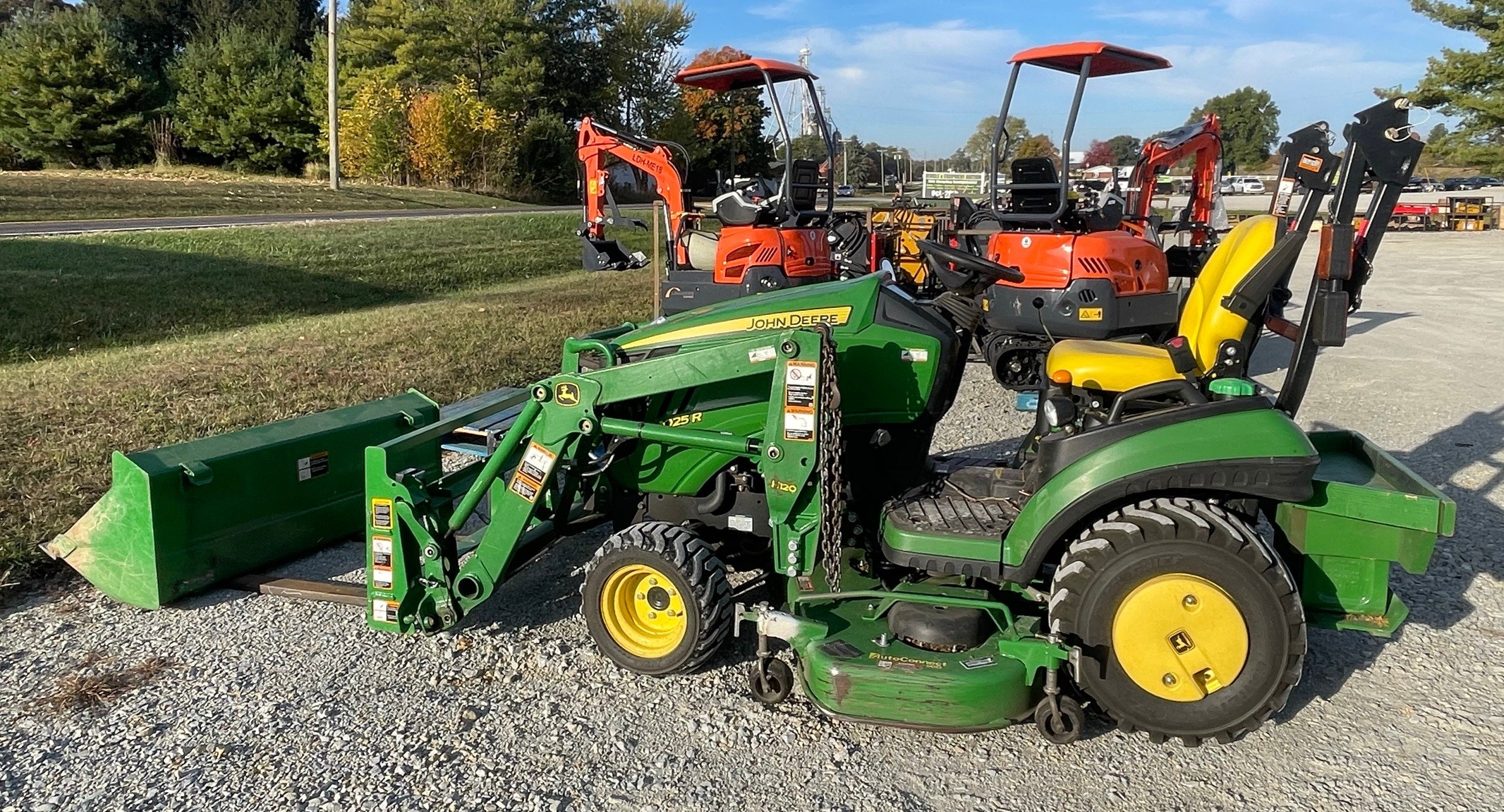 6451 John Deere 1025R with H120 Loader, Forks and Bucket, 563 Hours