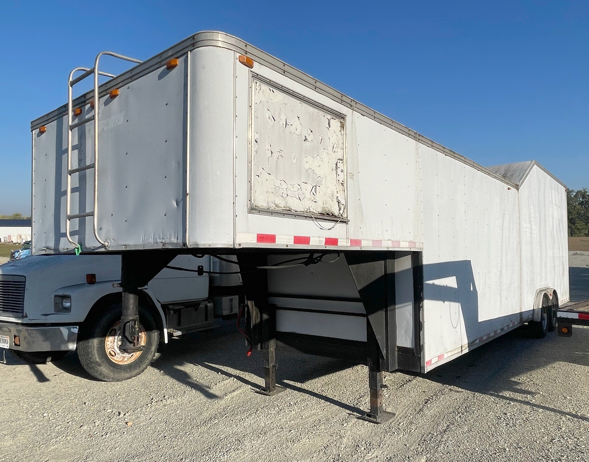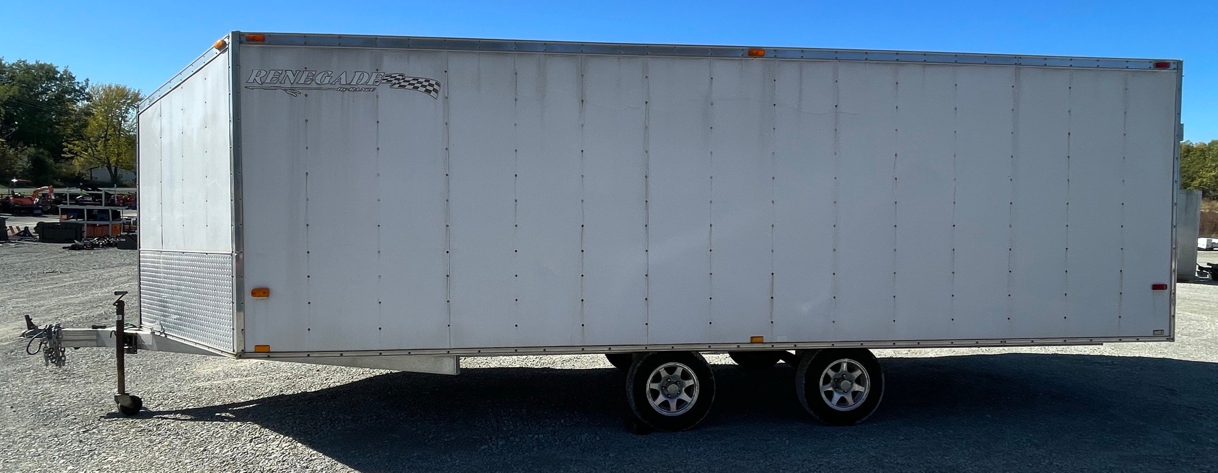 7767 1989 Timberwolf Enclosed Trailer, has onboard generator and air compressor, driver's side needs new tires, doors need work, 36', Has Title, VIN: 48FGG362R100310 - THIS TRAILER WILL HAVE A $25 TITLE FEE ADDED TO THE WINNING INVOICE
