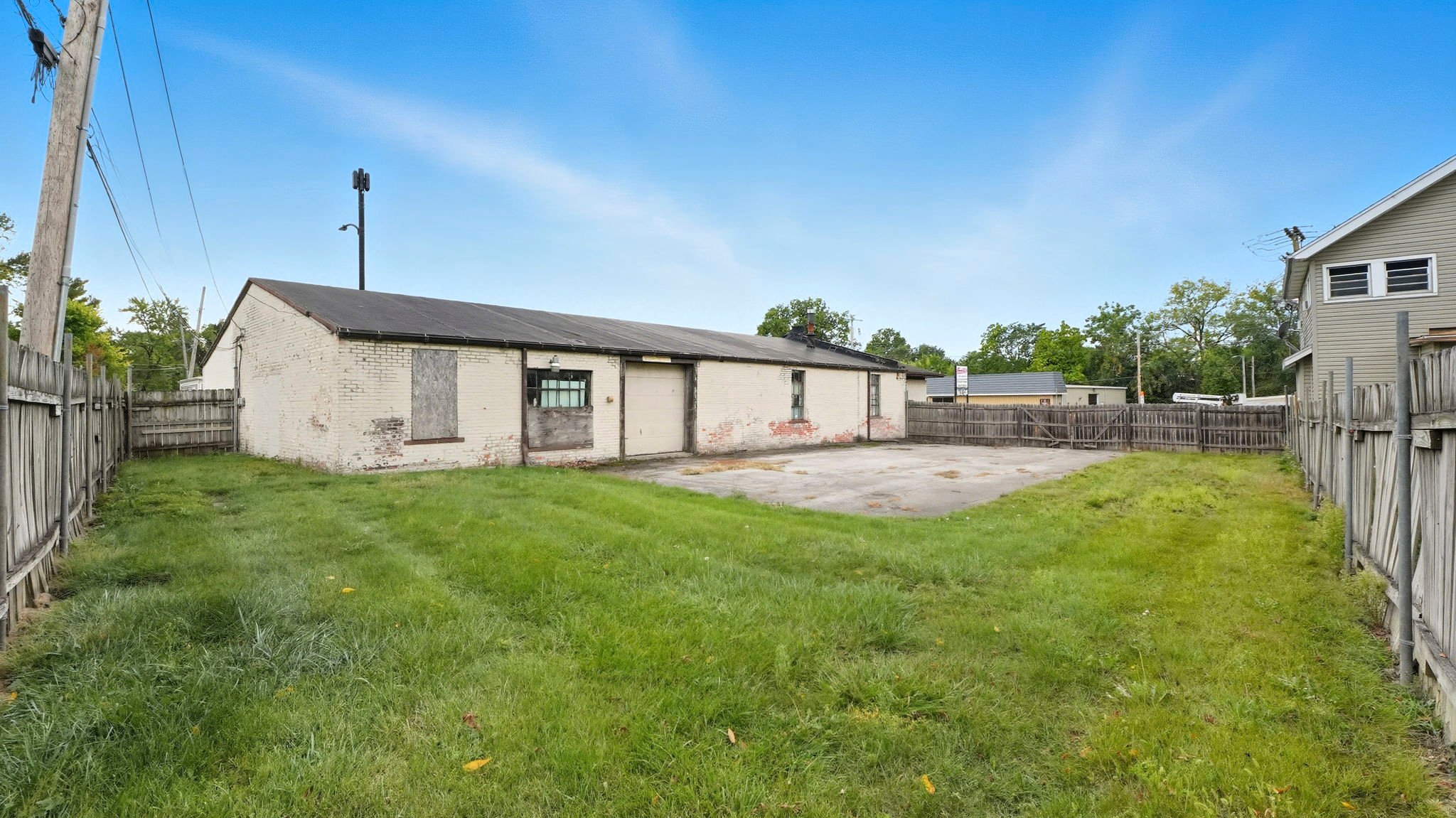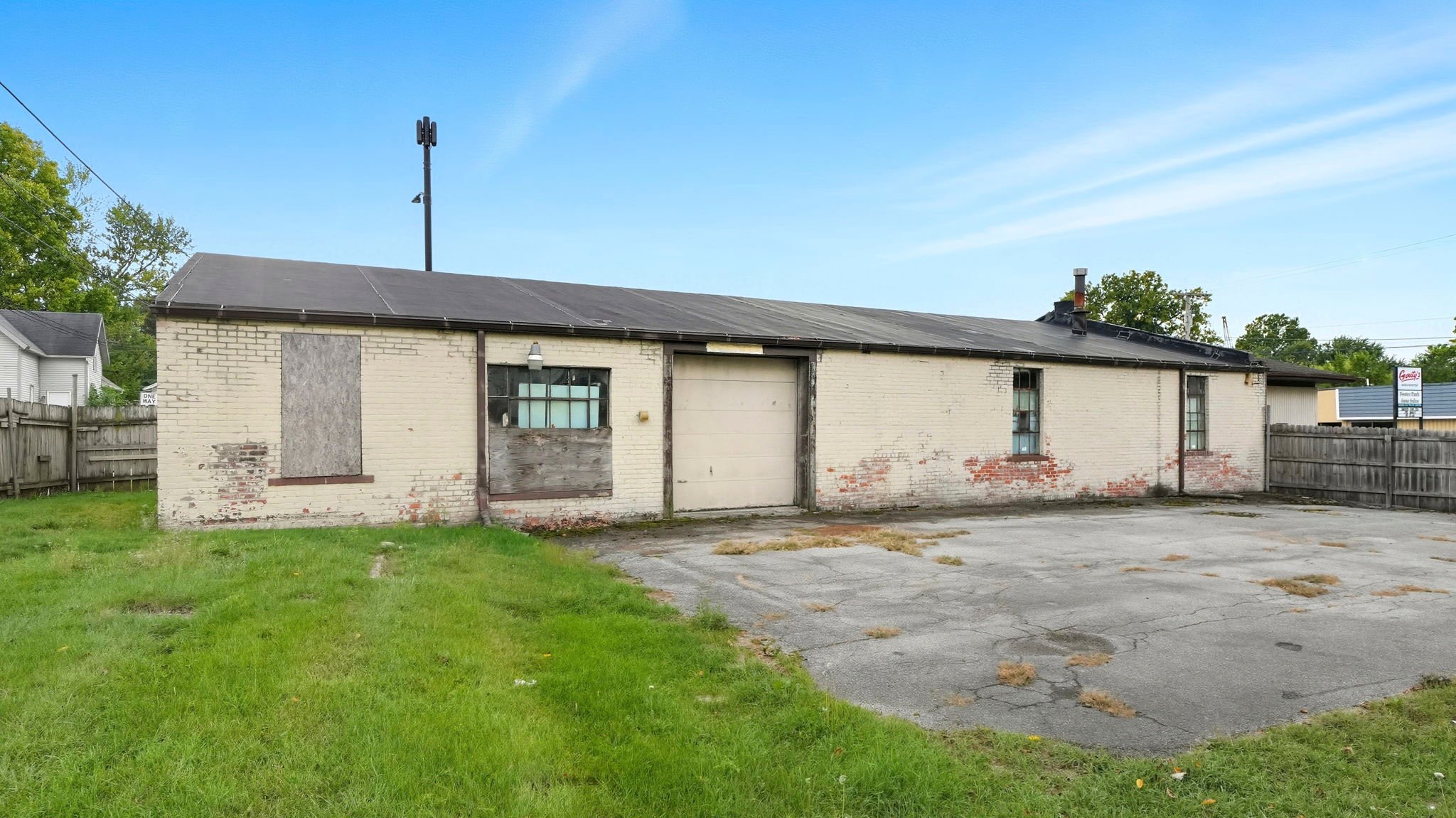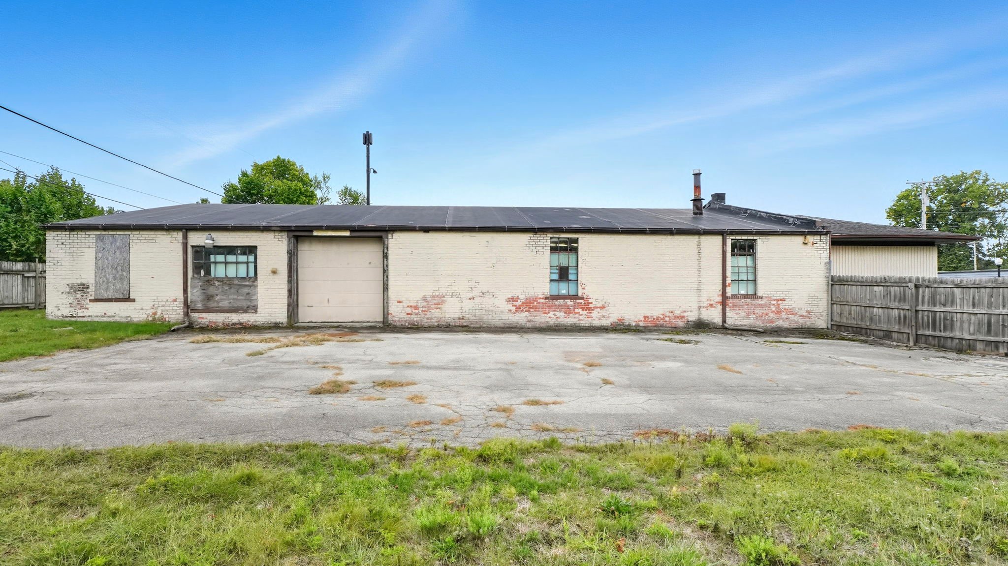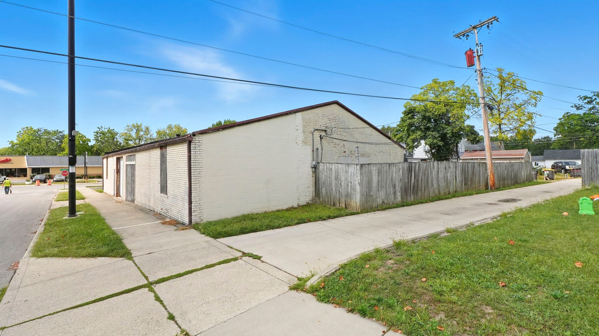 Positioned on 2 parcels on a prominent corner lot, this versatile 4,100+ square foot building offers a unique blend of office and warehouse space, ideal for a variety of business needs. The front of the building features a spacious open office area, perfect for administrative use, customer interaction, or collaborative workspaces. In the rear, a large open warehouse with two overhead doors provides ample space for storage, shipping, or production needs. A small parking lot in front accommodates employees and visitors, while a fenced-in area at the back adds security and flexibility for outdoor storage or equipment. With its prime location and functional layout, this property presents a valuable opportunity for businesses seeking high exposure and adaptable space.