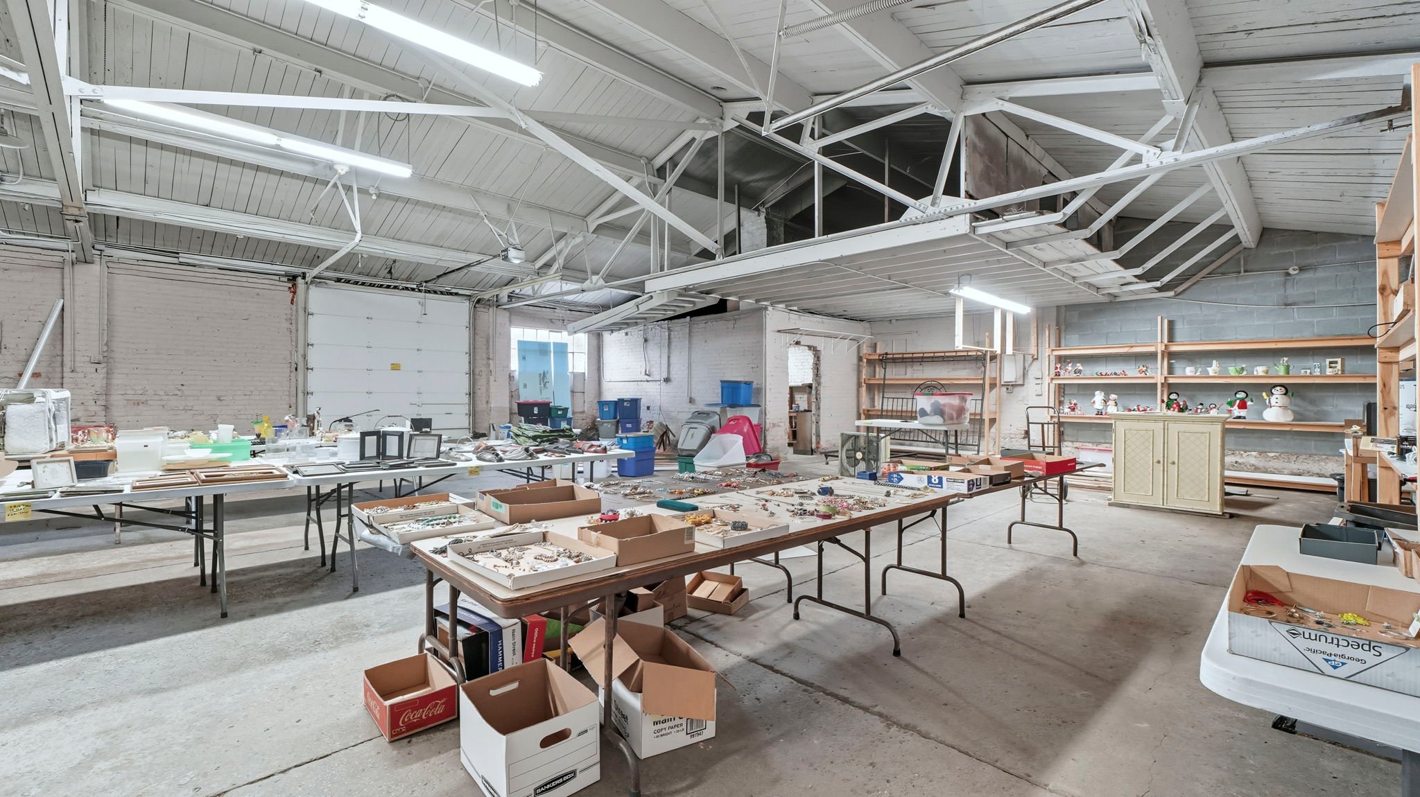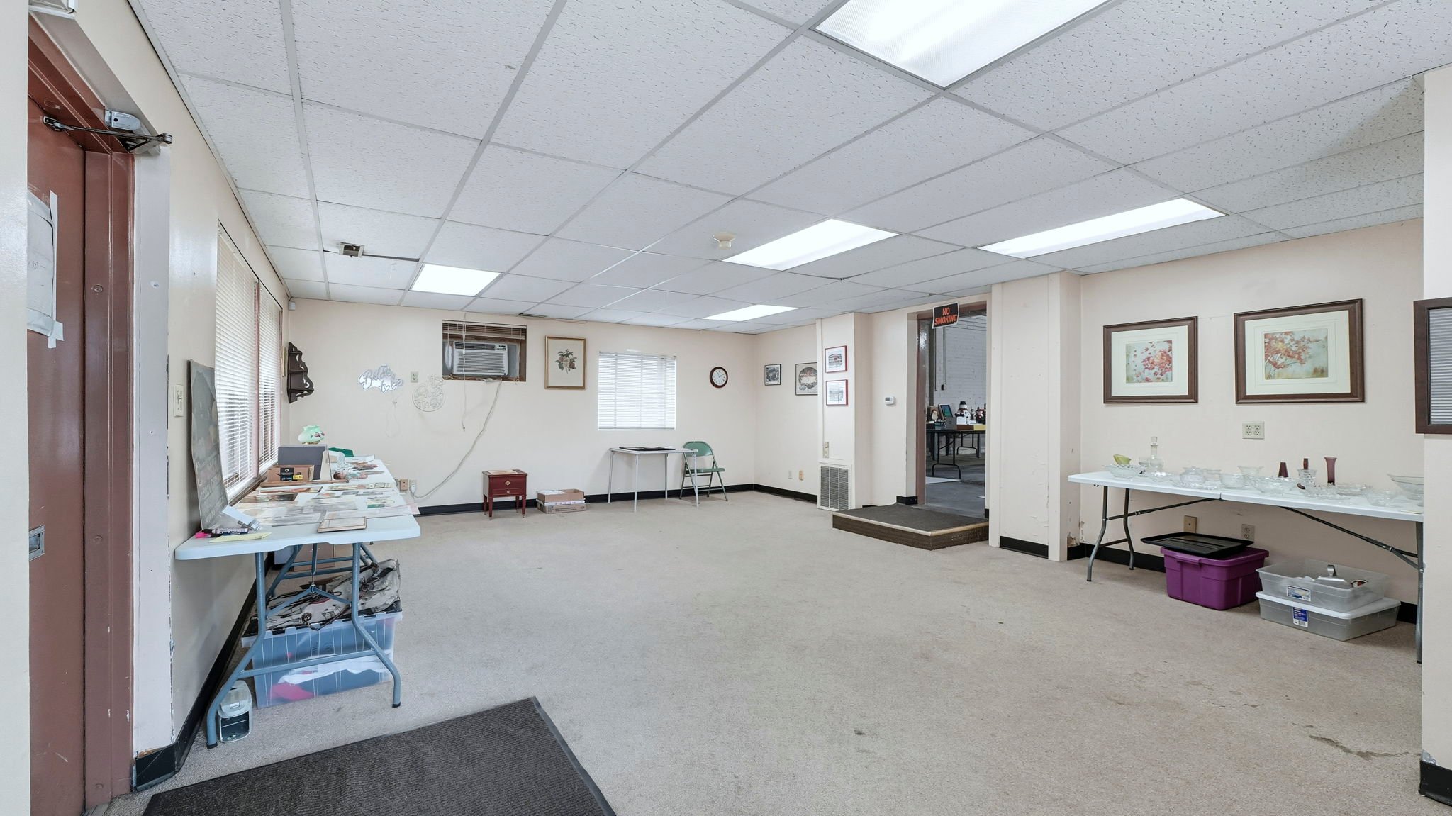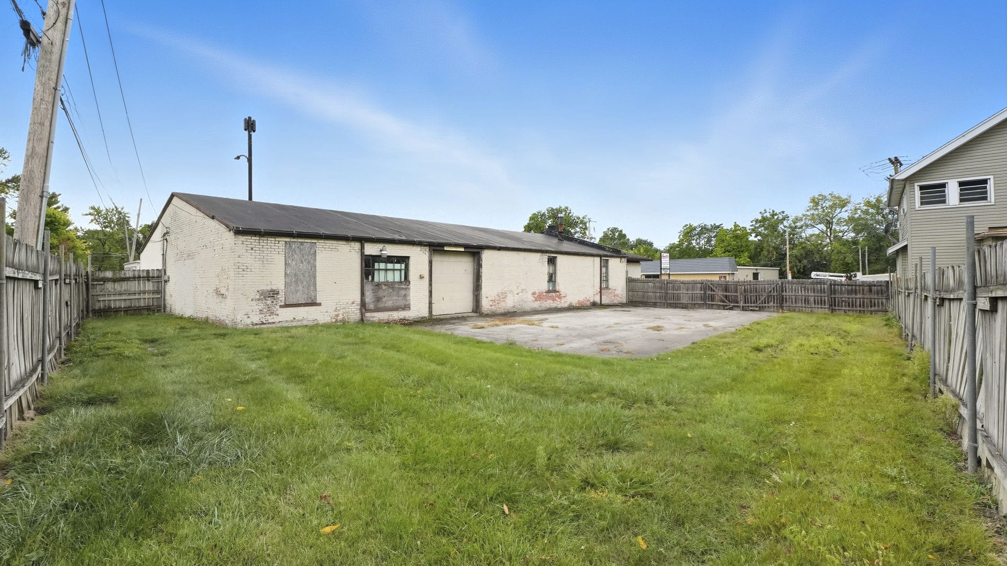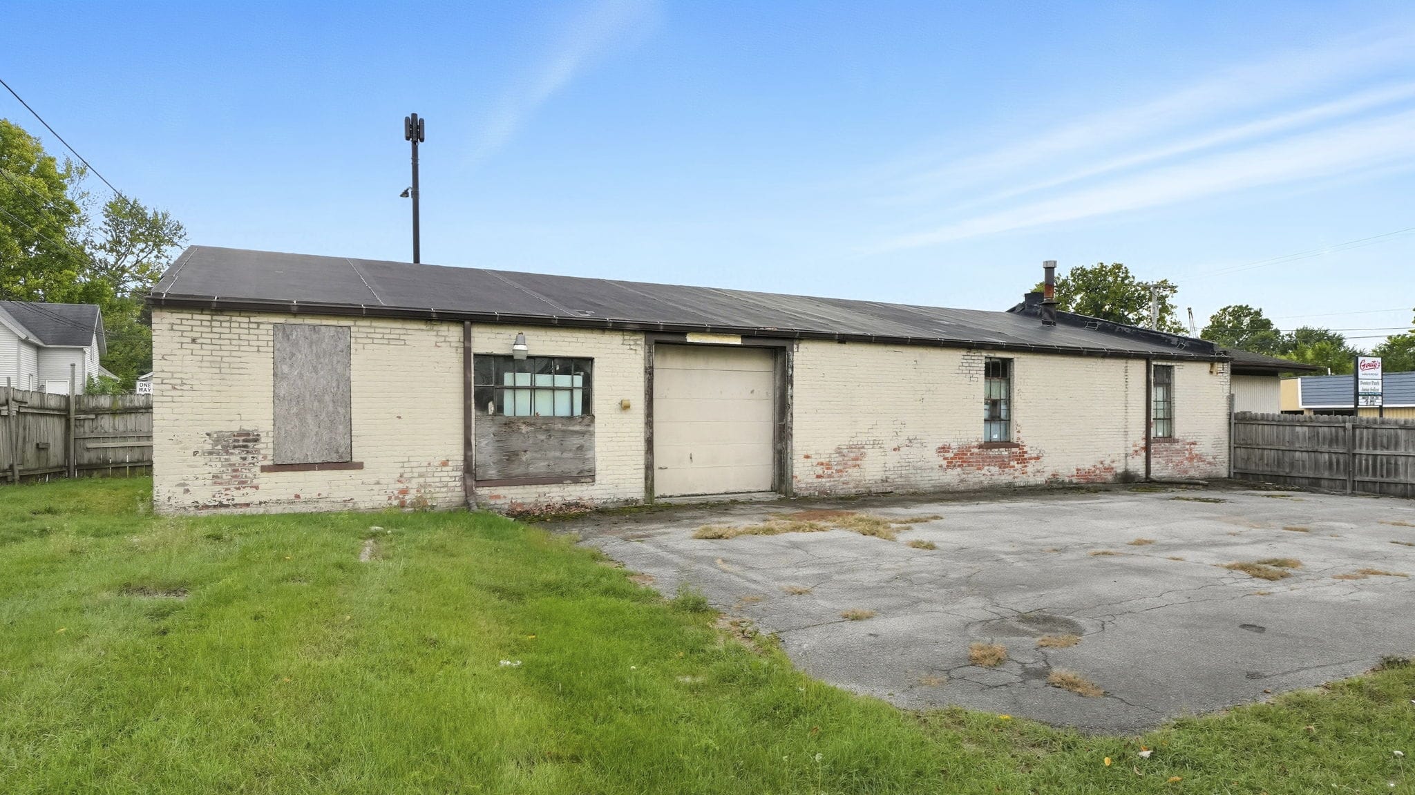 Positioned on 2 parcels on a prominent corner lot, this versatile 4,100+ square foot building offers a unique blend of office and warehouse space, ideal for a variety of business needs. The front of the building features a spacious open office area, perfect for administrative use, customer interaction, or collaborative workspaces. In the rear, a large open warehouse with two overhead doors provides ample space for storage, shipping, or production needs. A small parking lot in front accommodates employees and visitors, while a fenced-in area at the back adds security and flexibility for outdoor storage or equipment. With its prime location and functional layout, this property presents a valuable opportunity for businesses seeking high exposure and adaptable space.