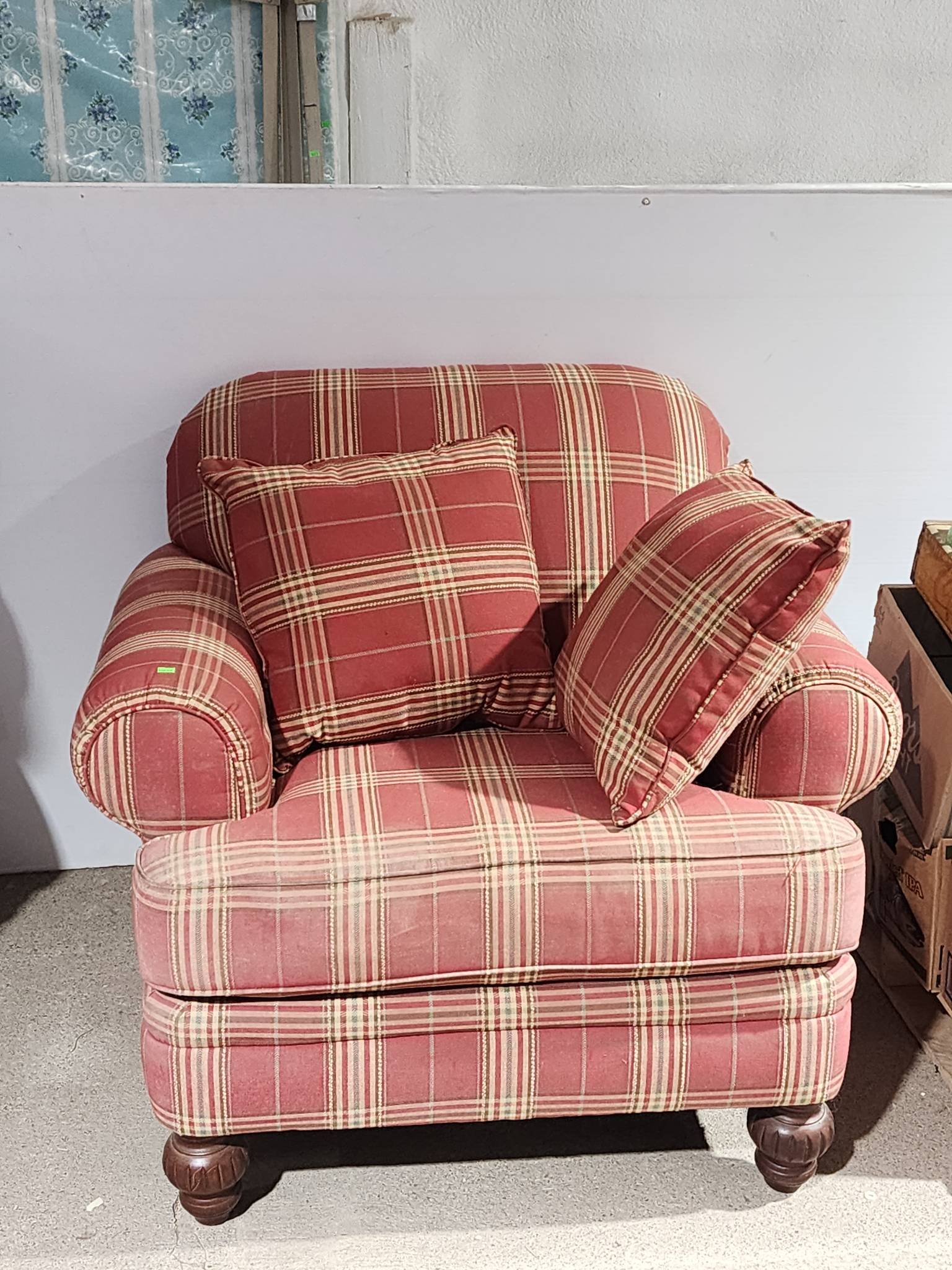 55001 Plaid Upholstered Armchair with Cushions, 38?x37?x36?
