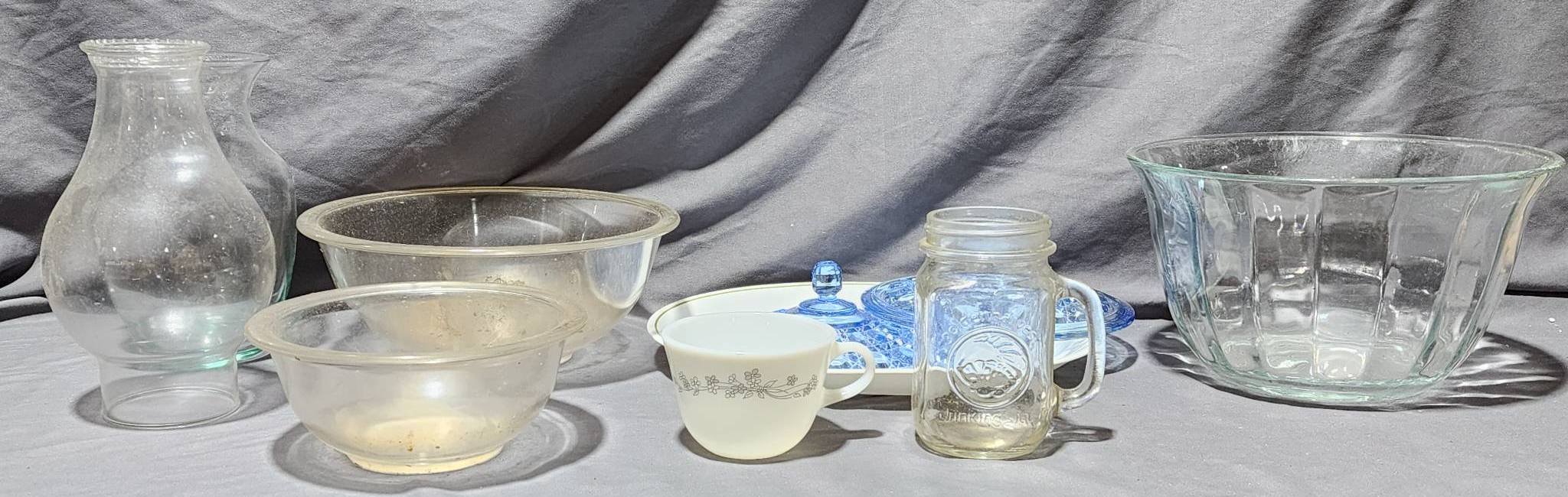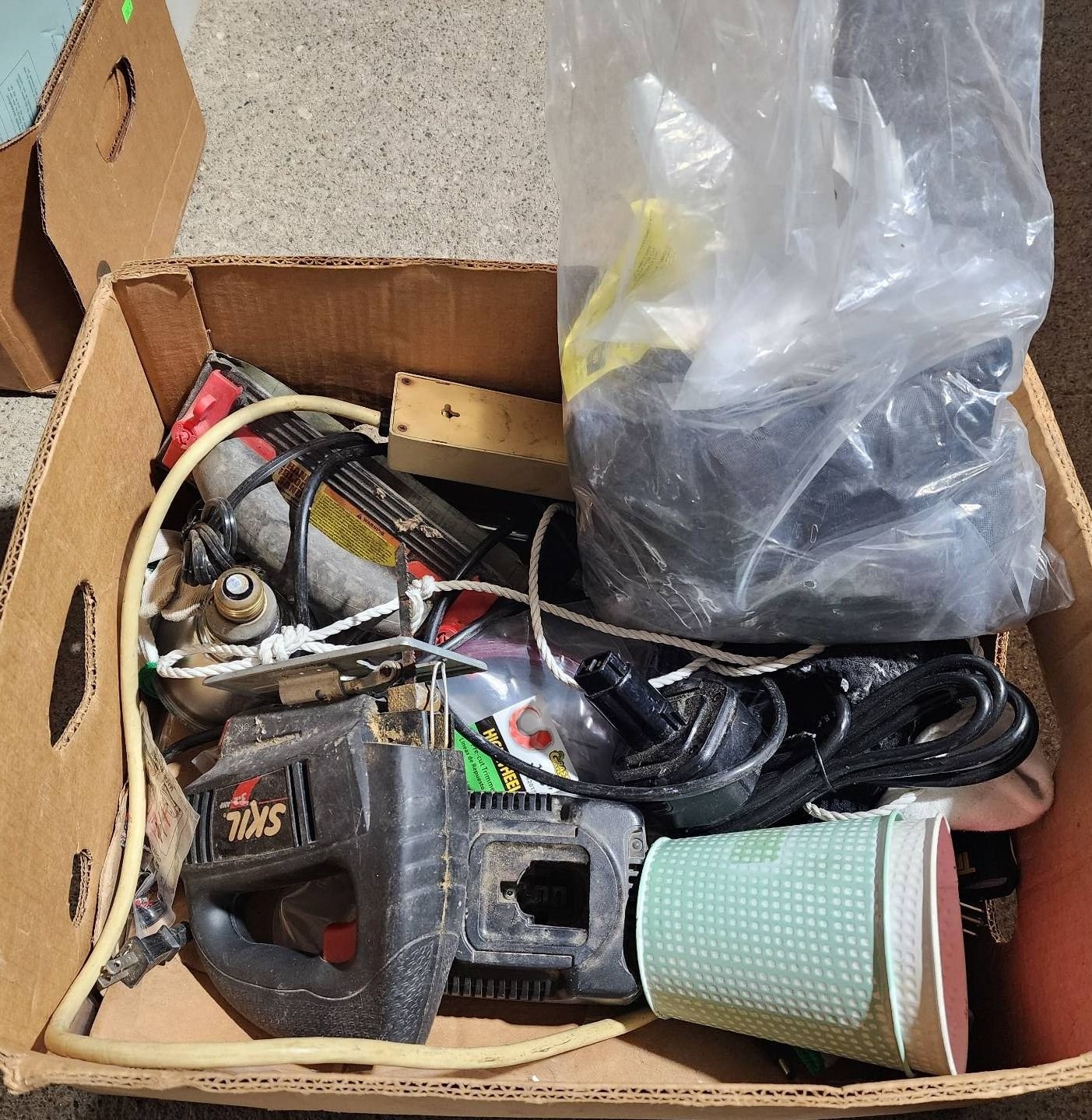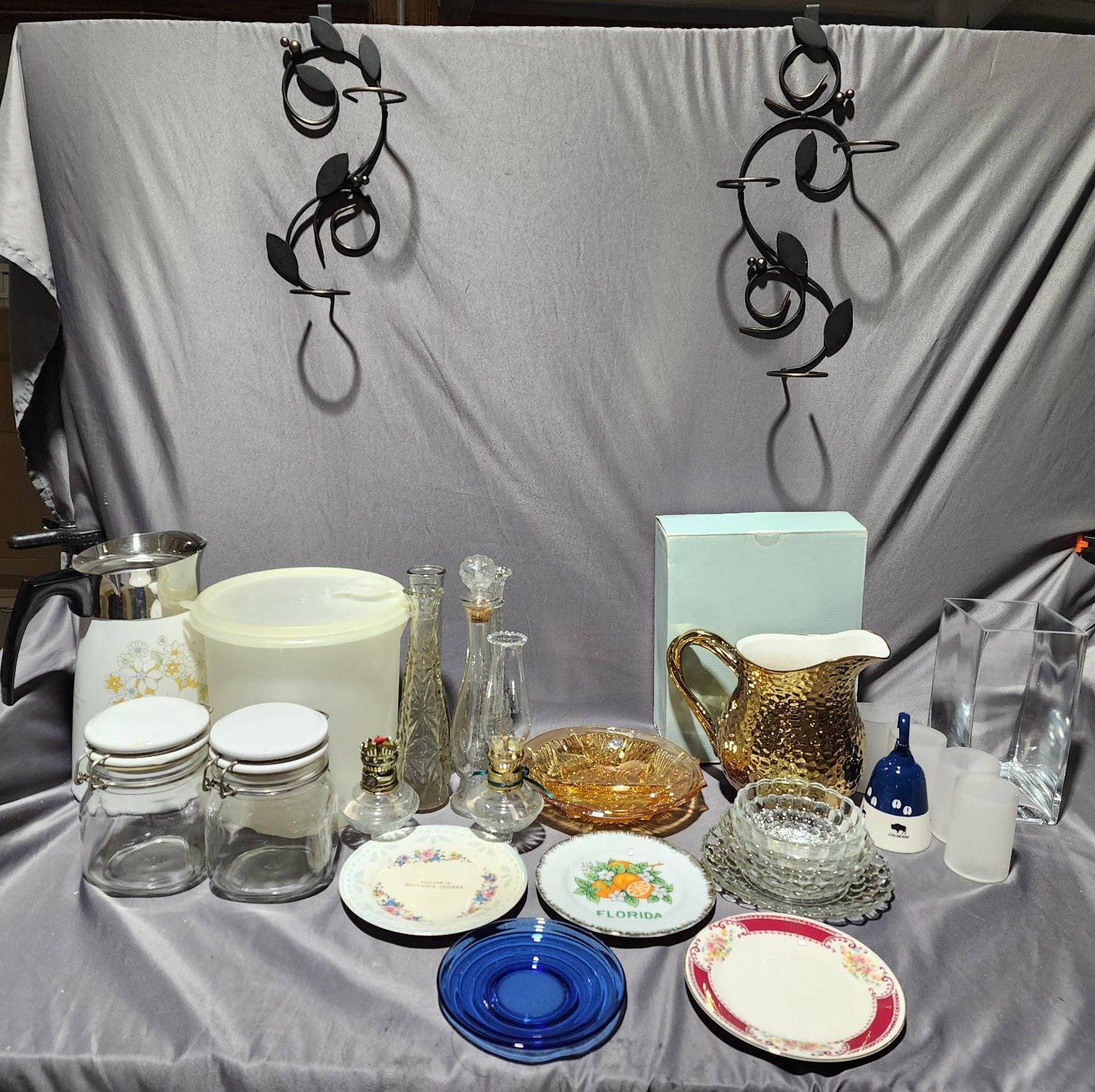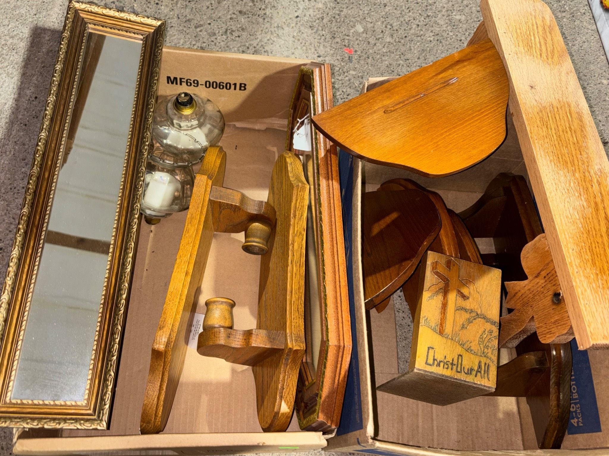 55002 Household Items Inc. Glass Bottles, Plasticware, Electronics, and Wood Crates