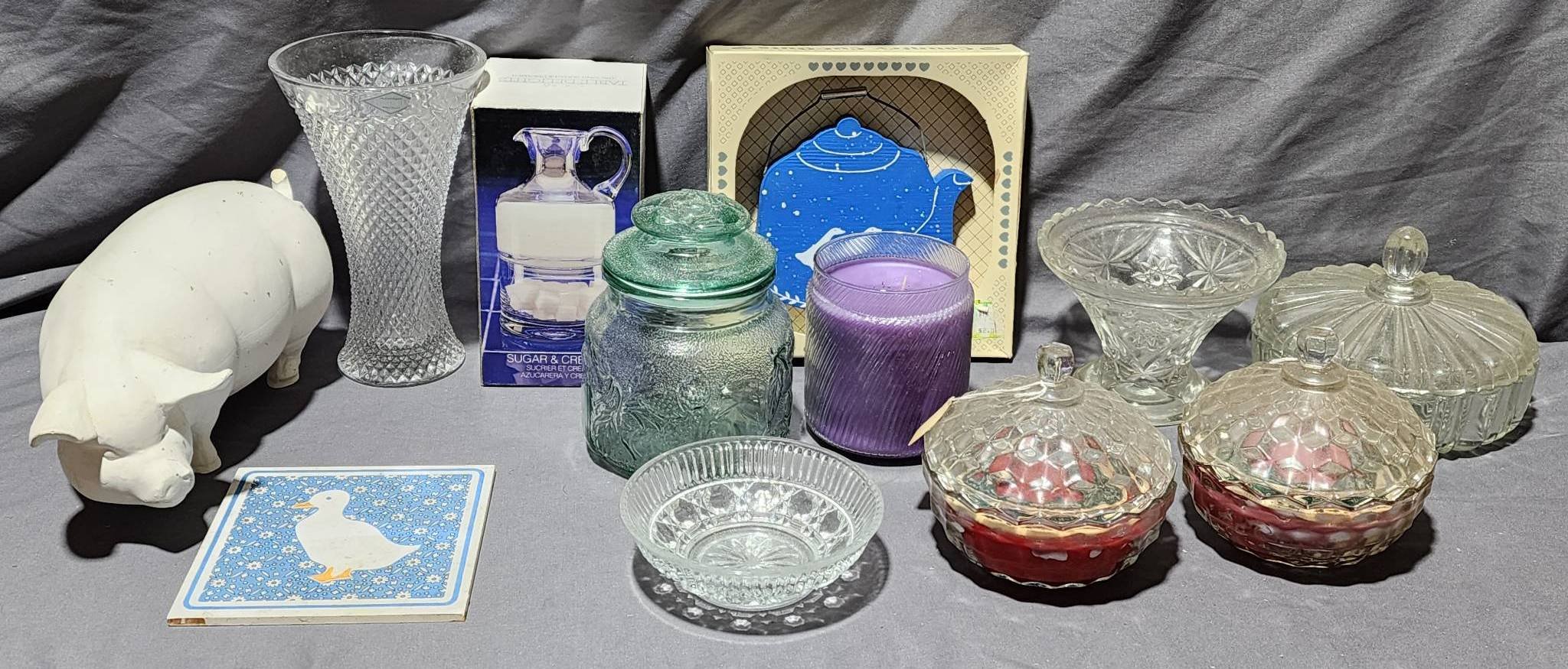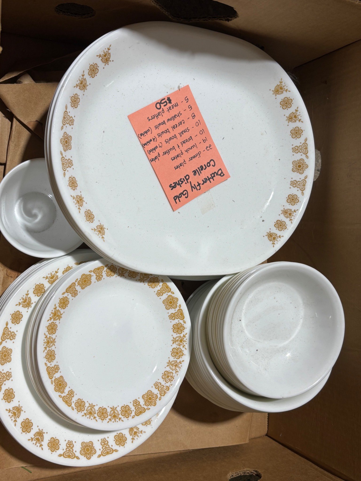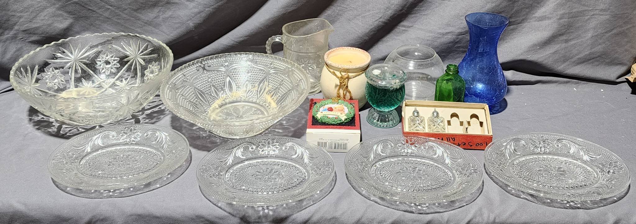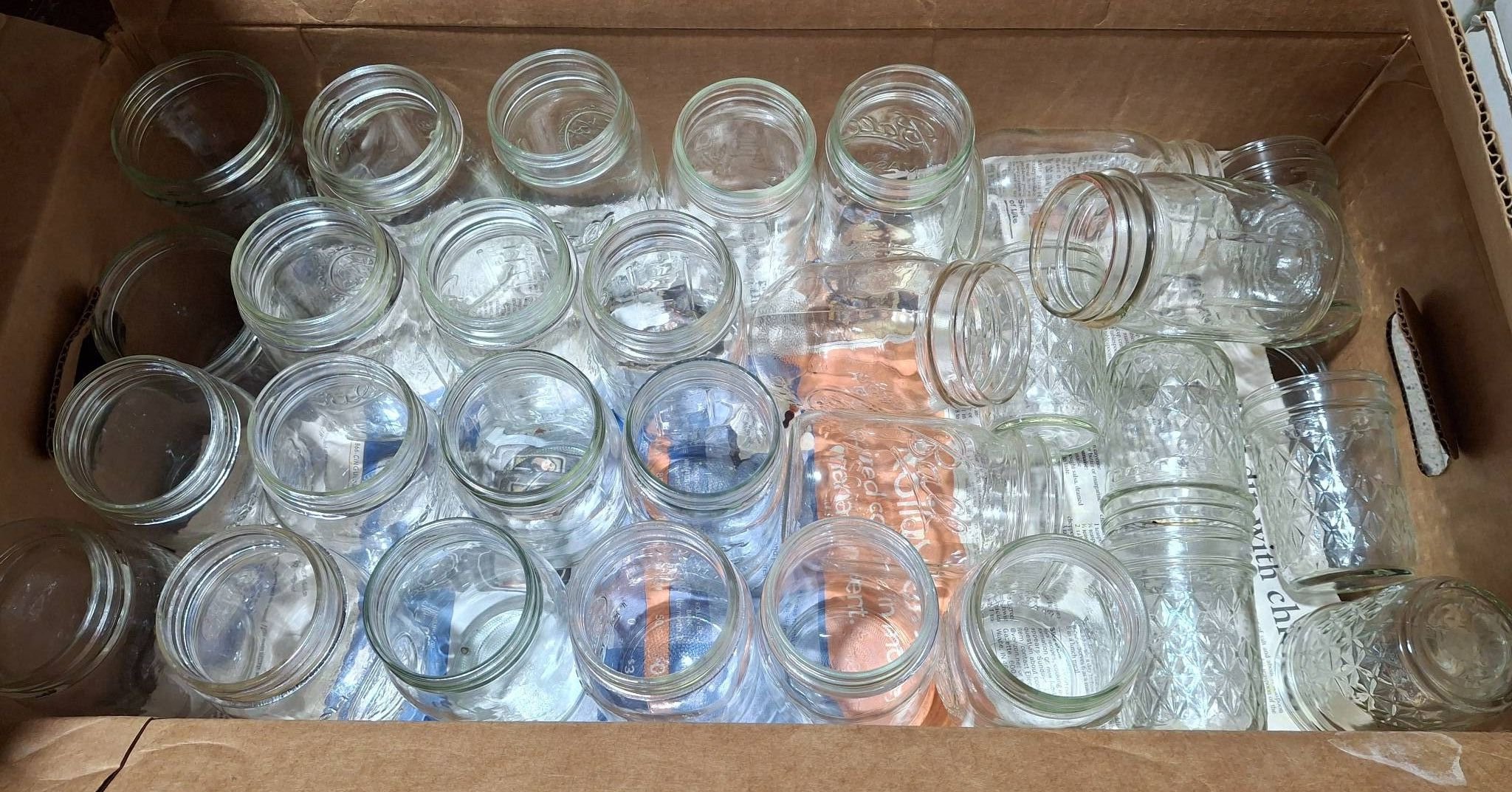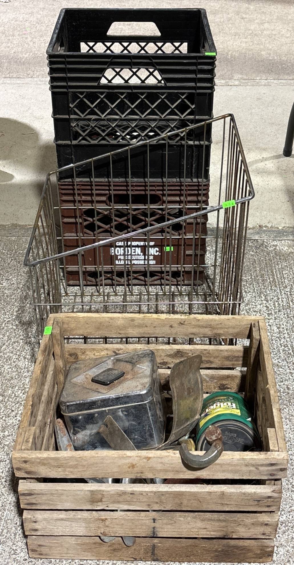 55002 Household Items Inc. Glass Bottles, Plasticware, Electronics, and Wood Crates