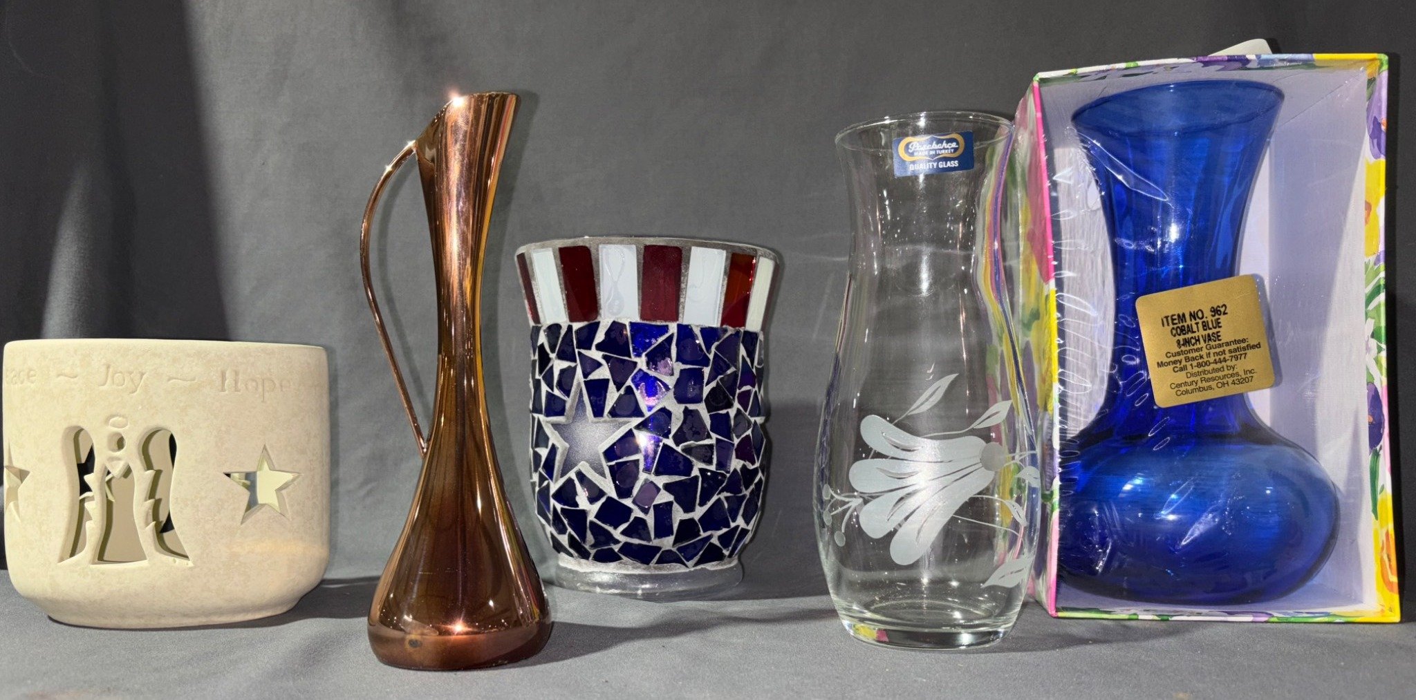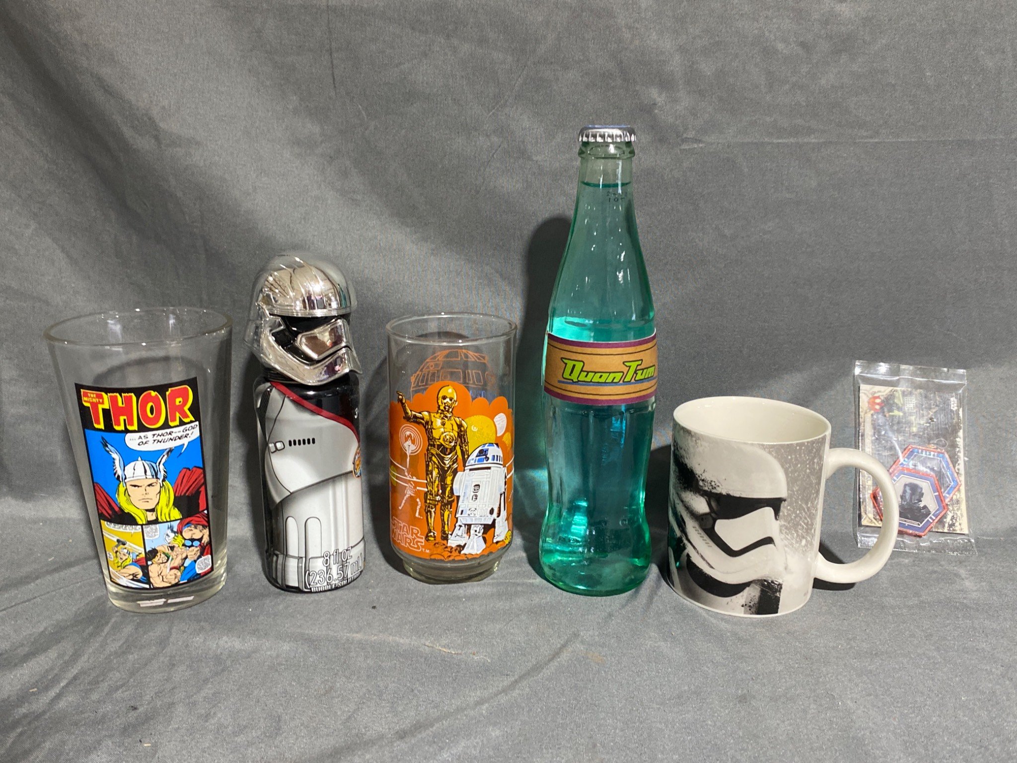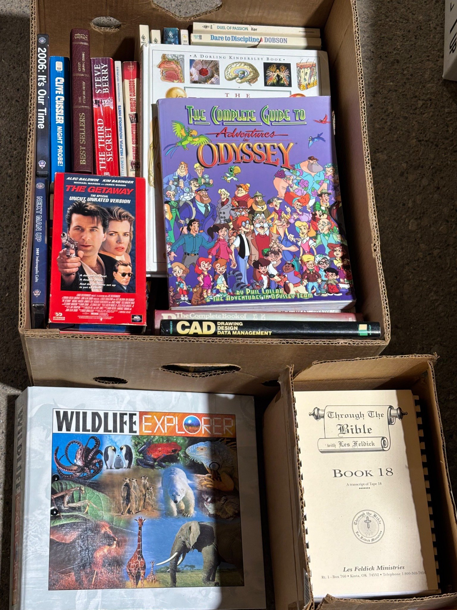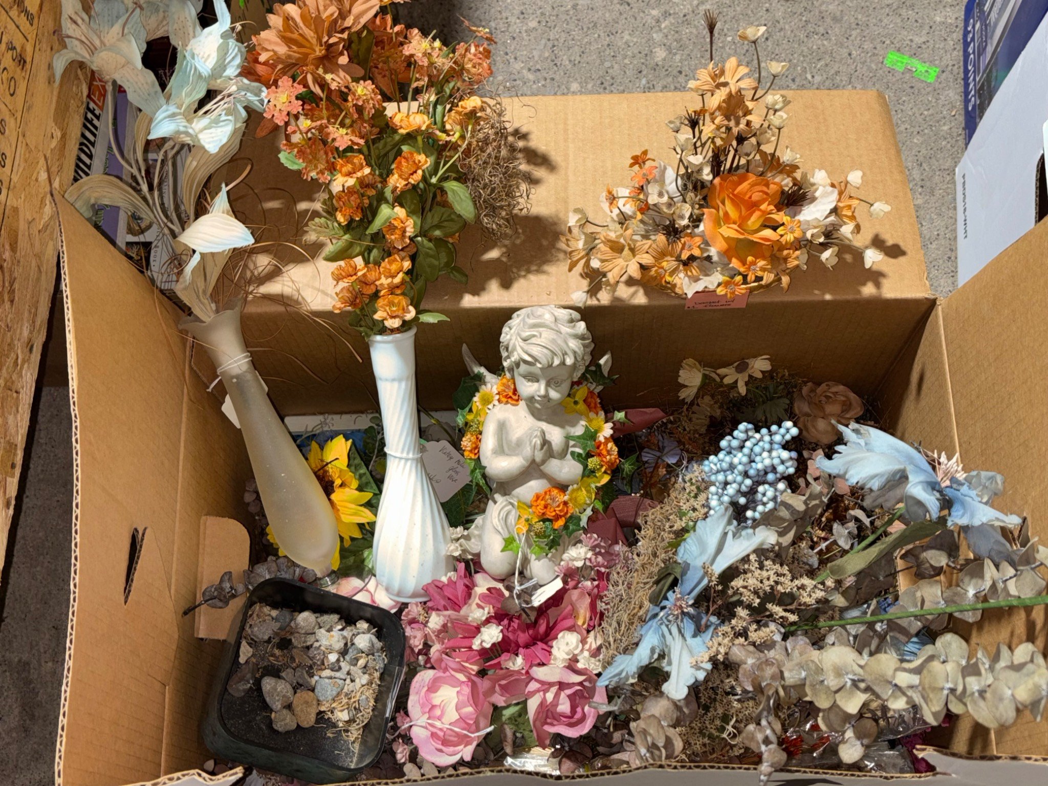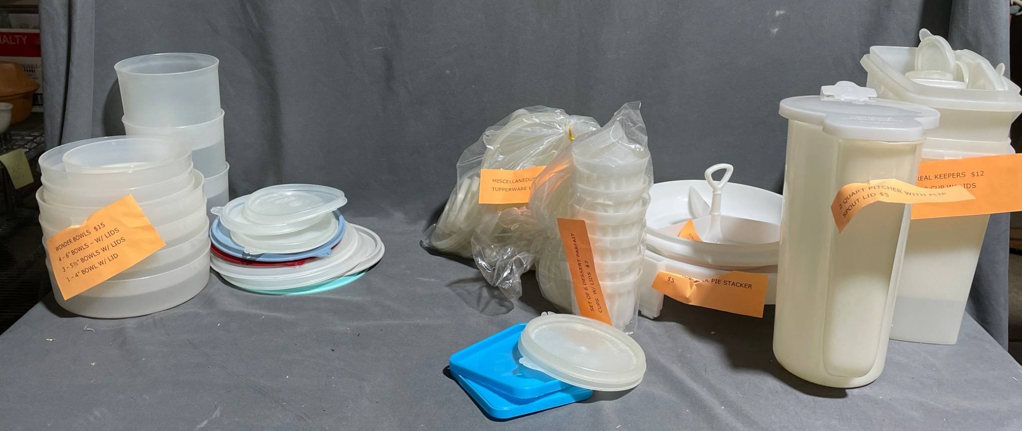 55002 Household Items Inc. Glass Bottles, Plasticware, Electronics, and Wood Crates