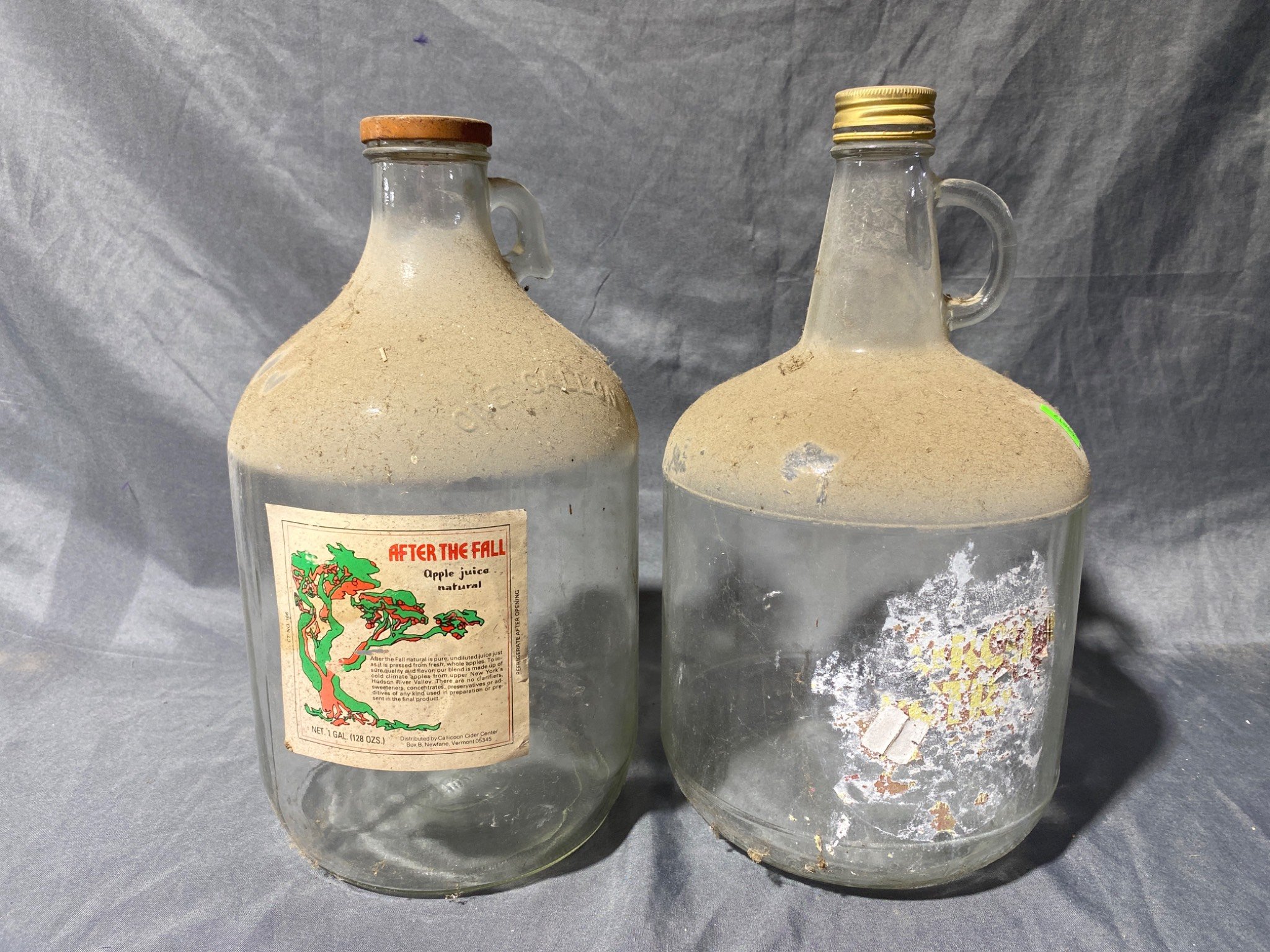 55012 2 Glass 1-Gallon Jugs With Handles, Paper Labels, & Metal/Cork Caps