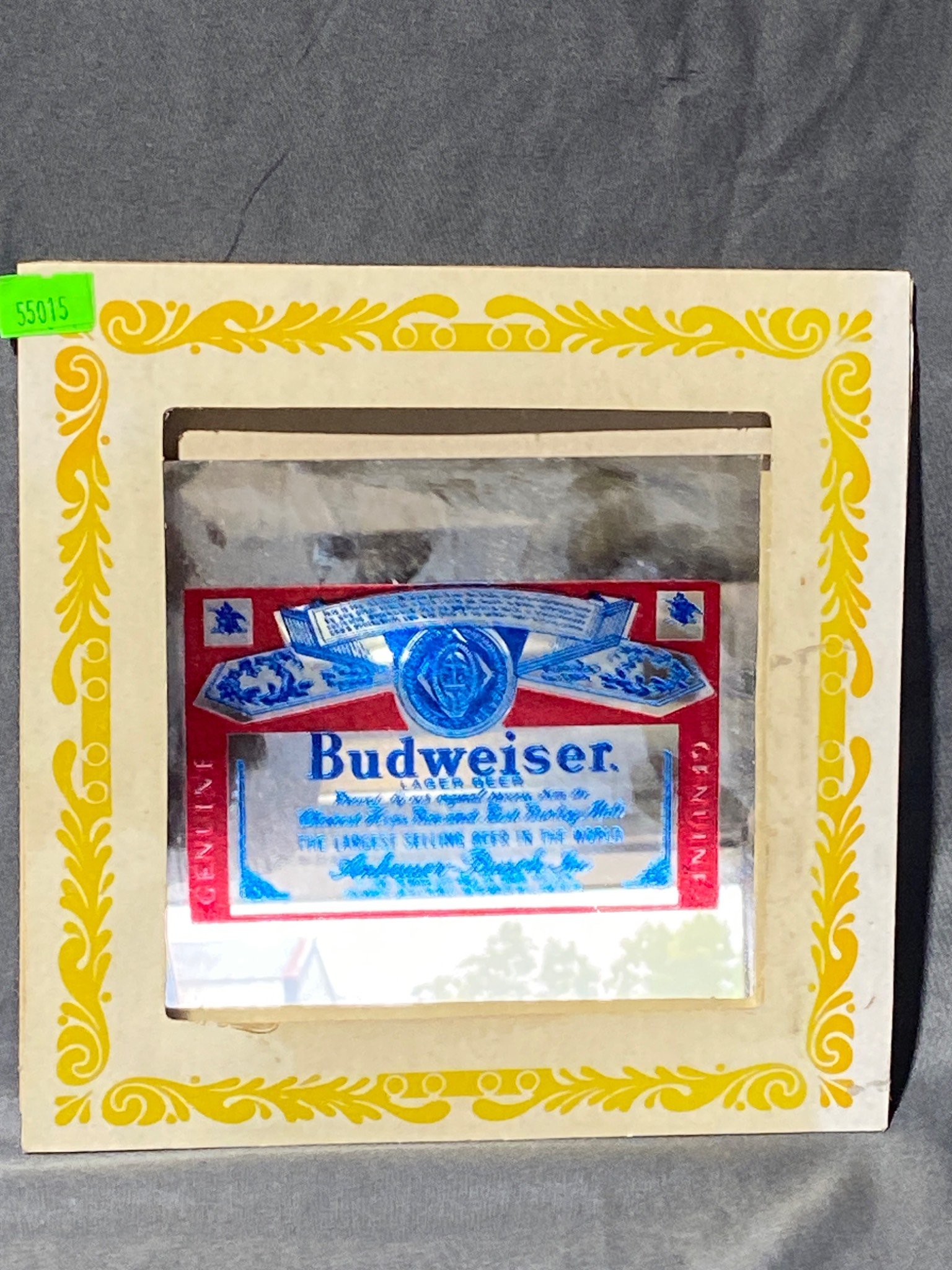 55015 Budweiser Glass Mirror Sign with Yellow Frame, 6”x6”