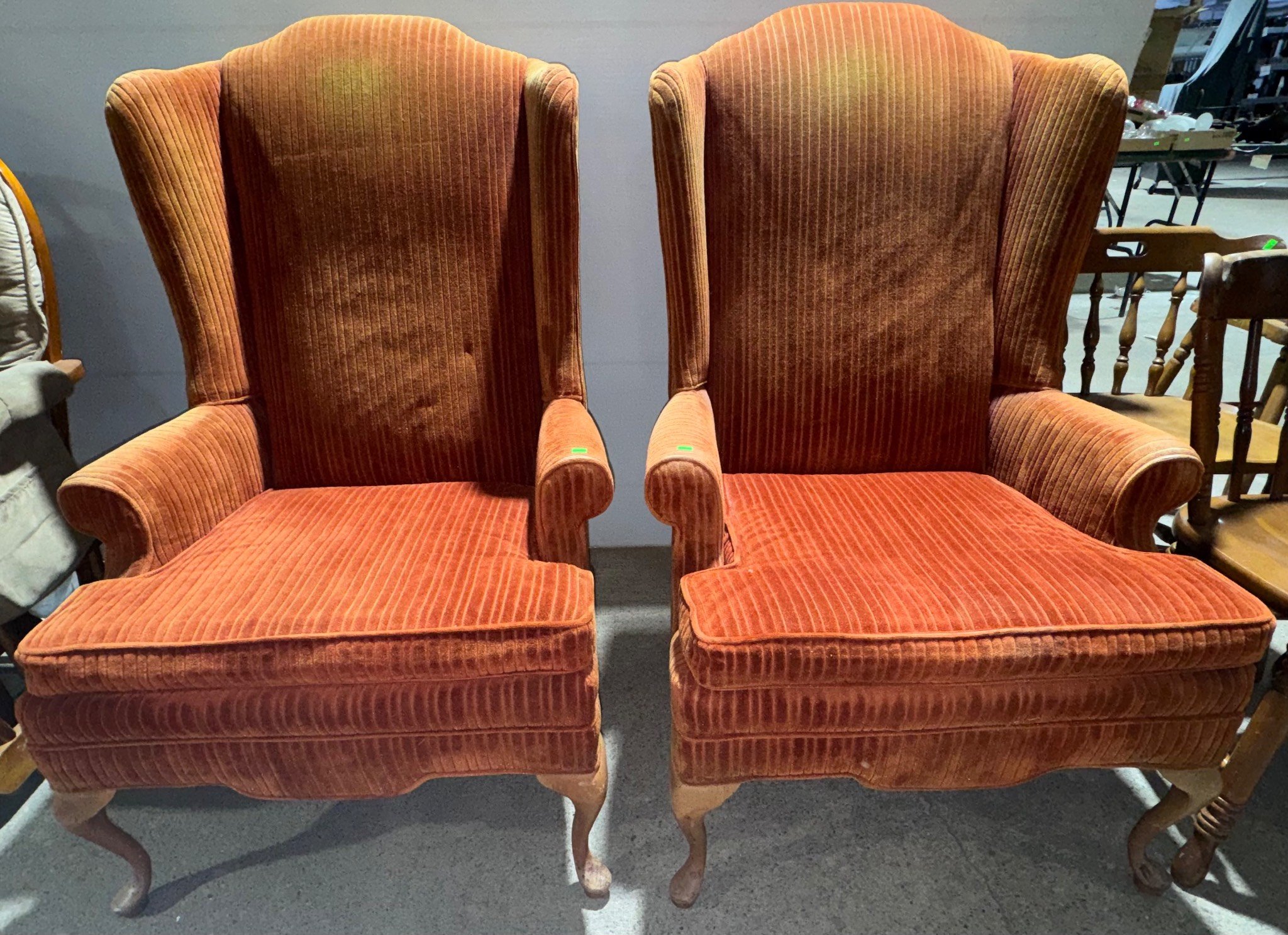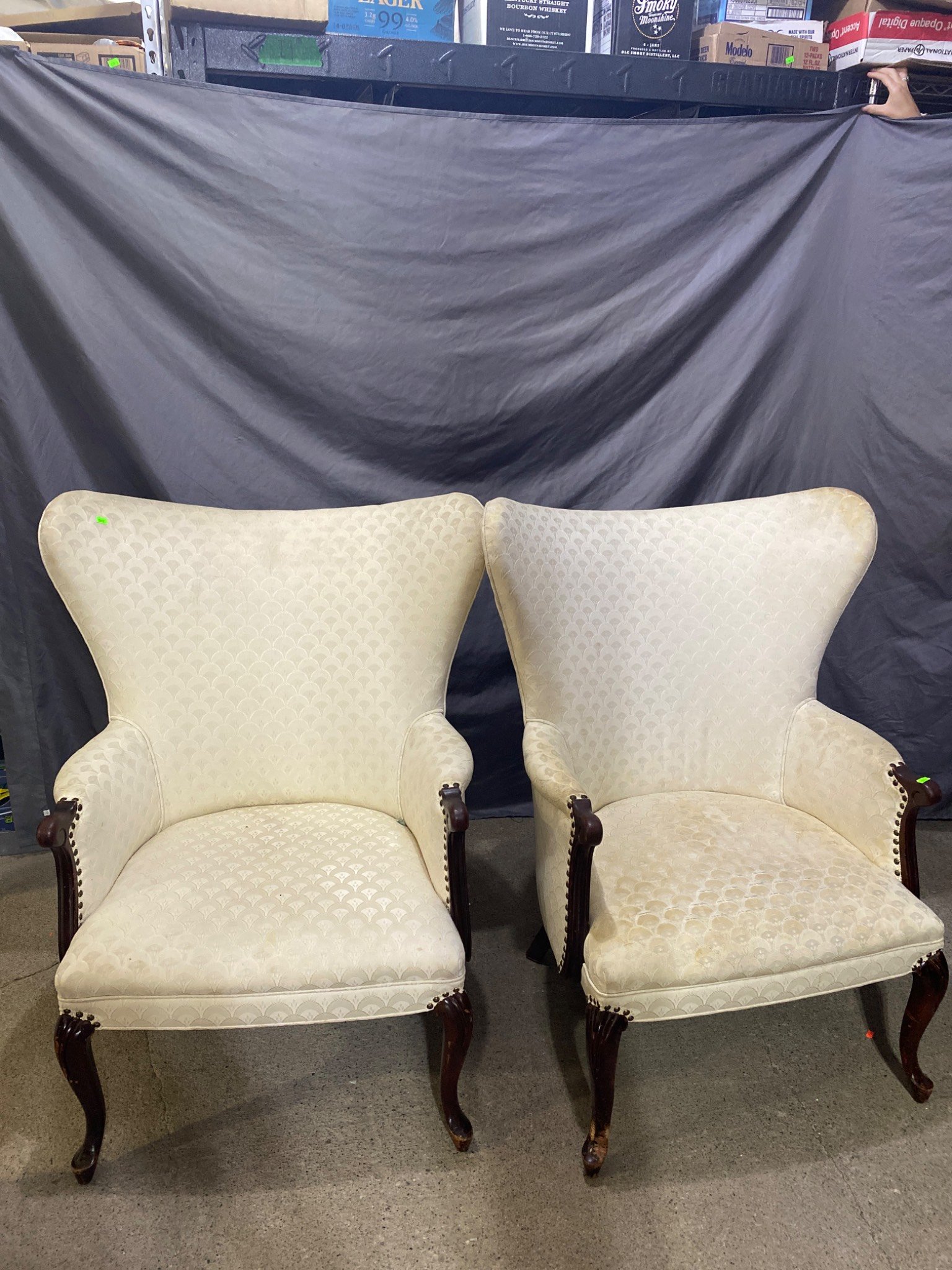 55018 Upholstered Armchairs with Carved Accents, 31”Wx39”H