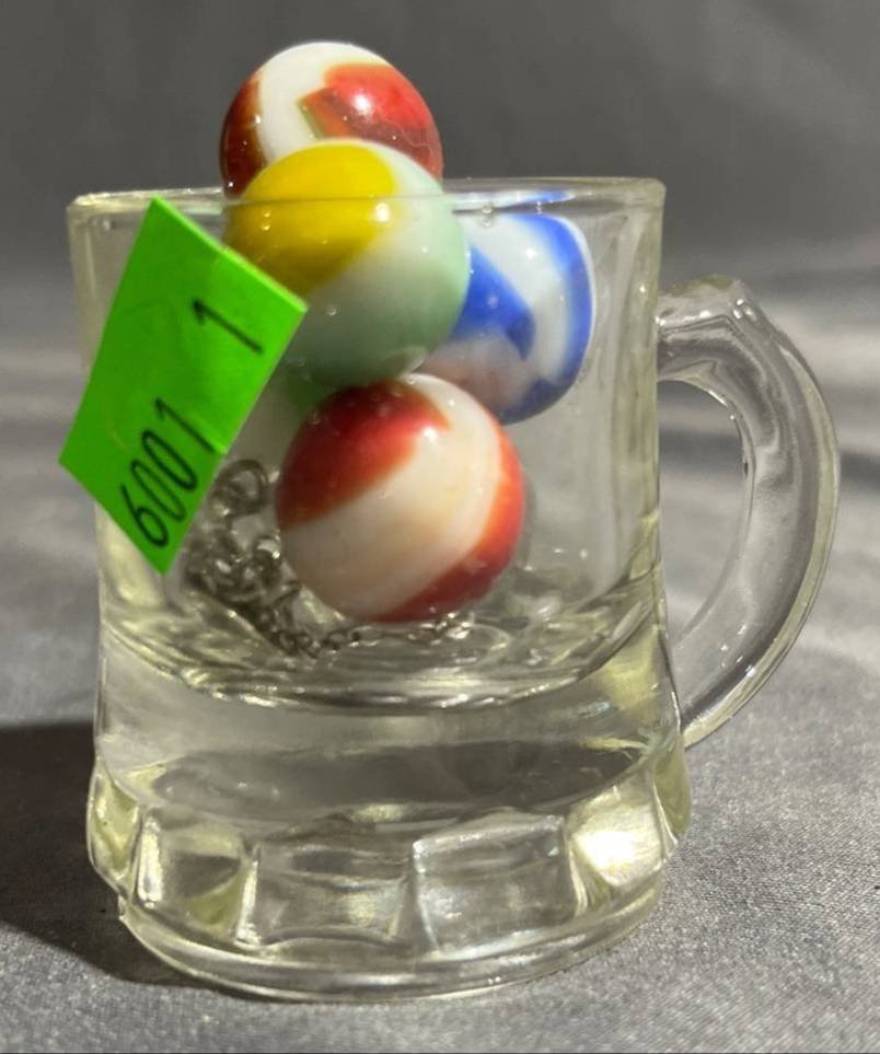 6001 Clear Glass Miniature Mug with Multicolored Glass Marbles 2”