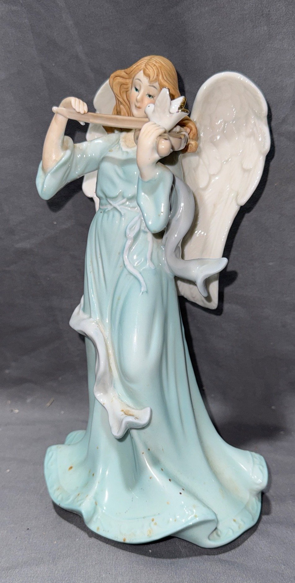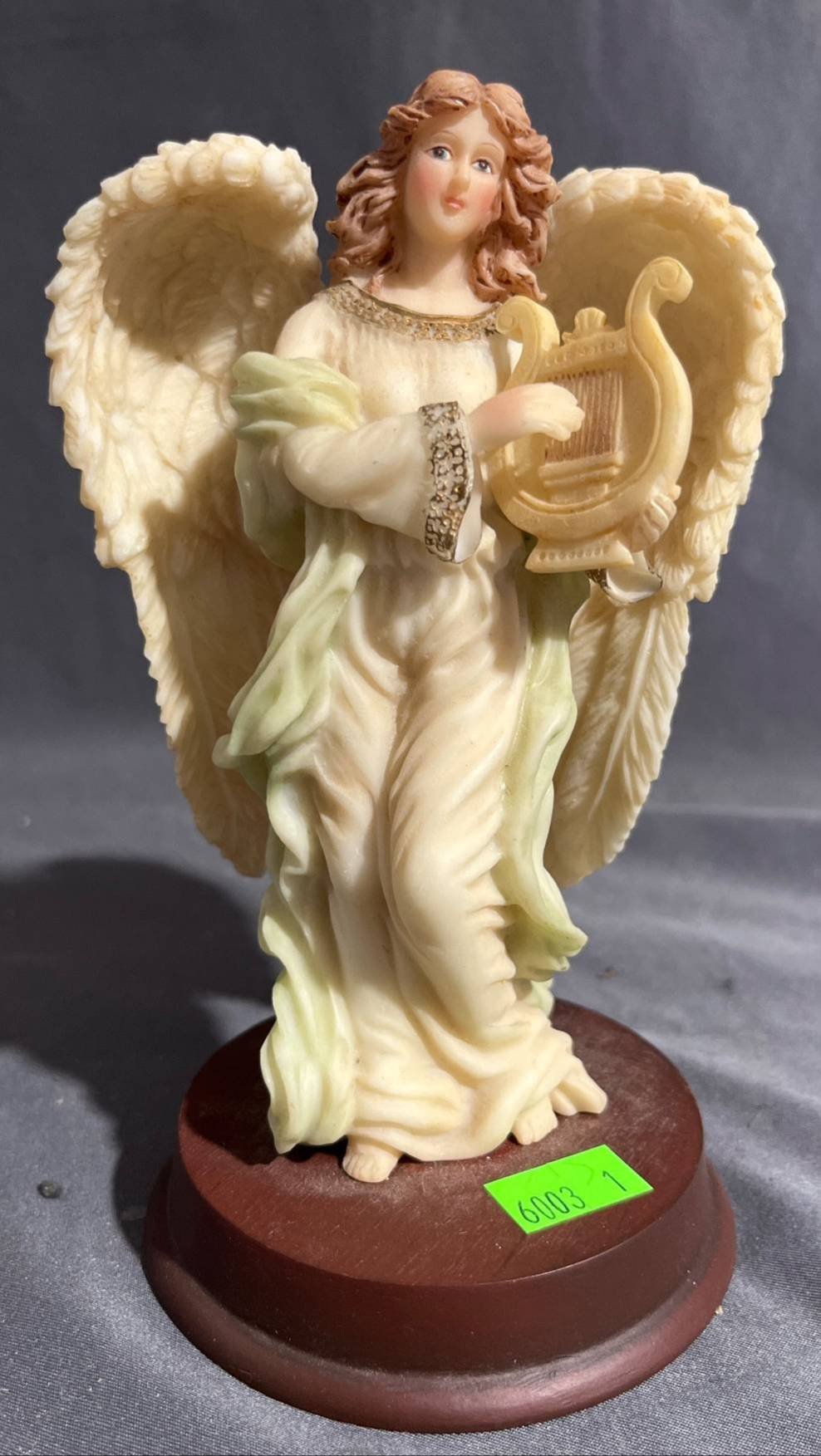 6003 Angel Figurine Holding Lyre on Round Base 6”