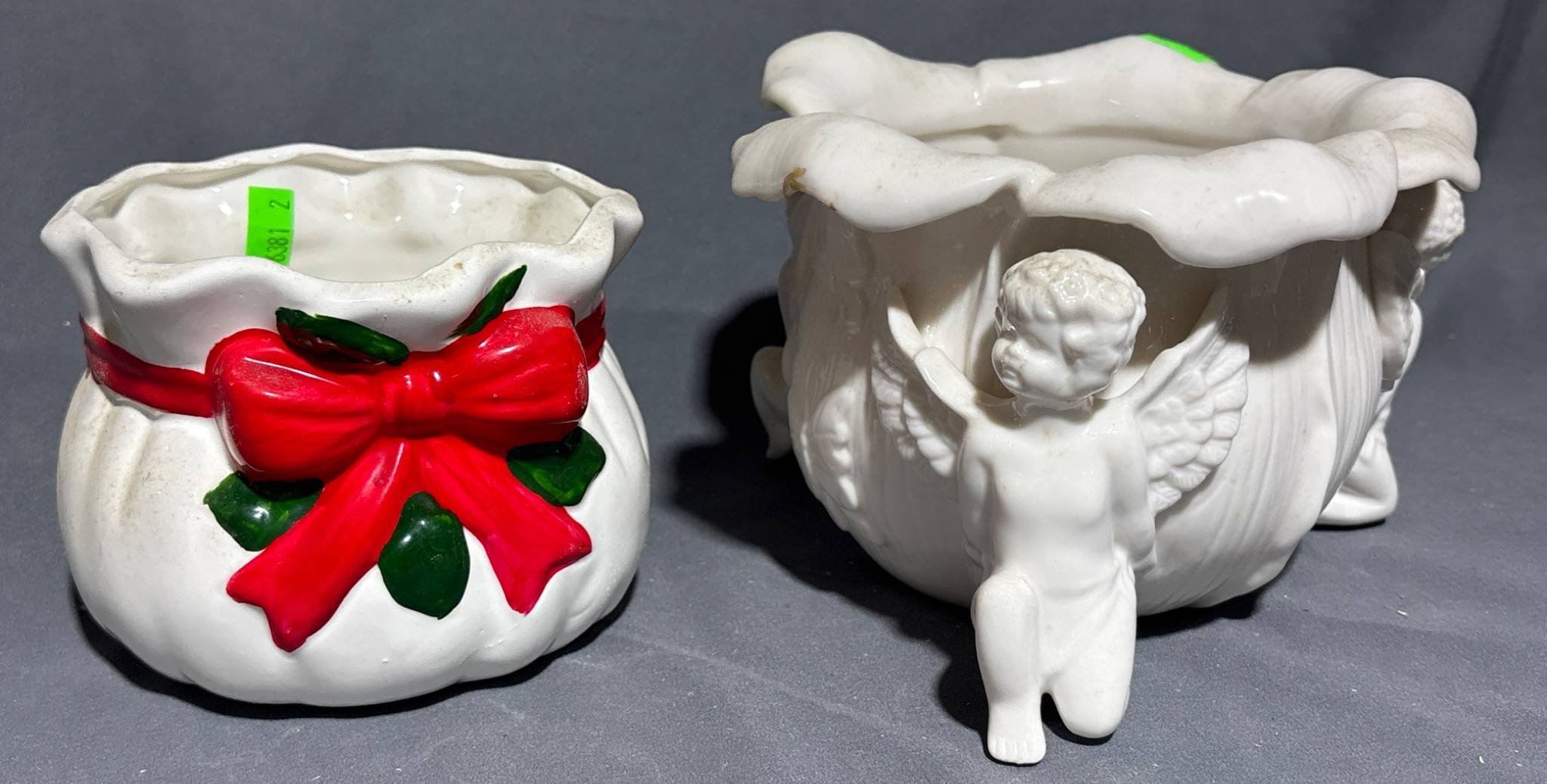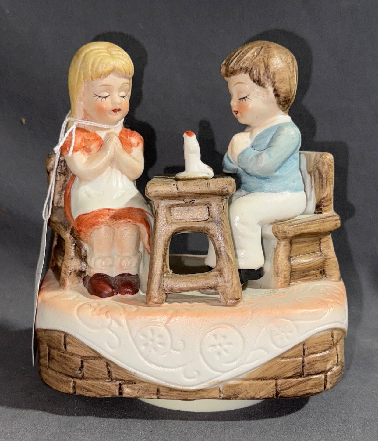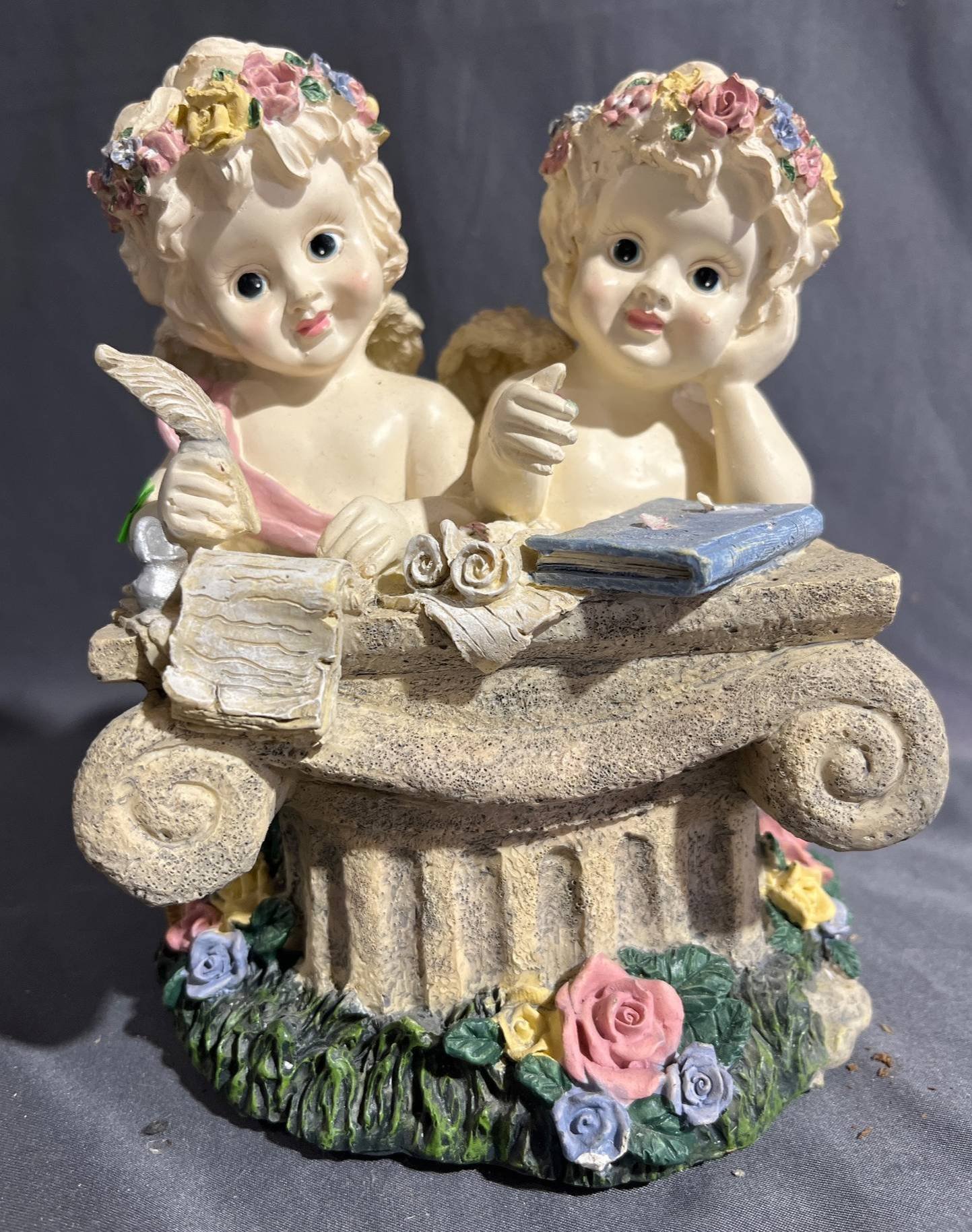 6004 Musical Figurine Featuring Two Cherubs with Floral Details 7”, broken