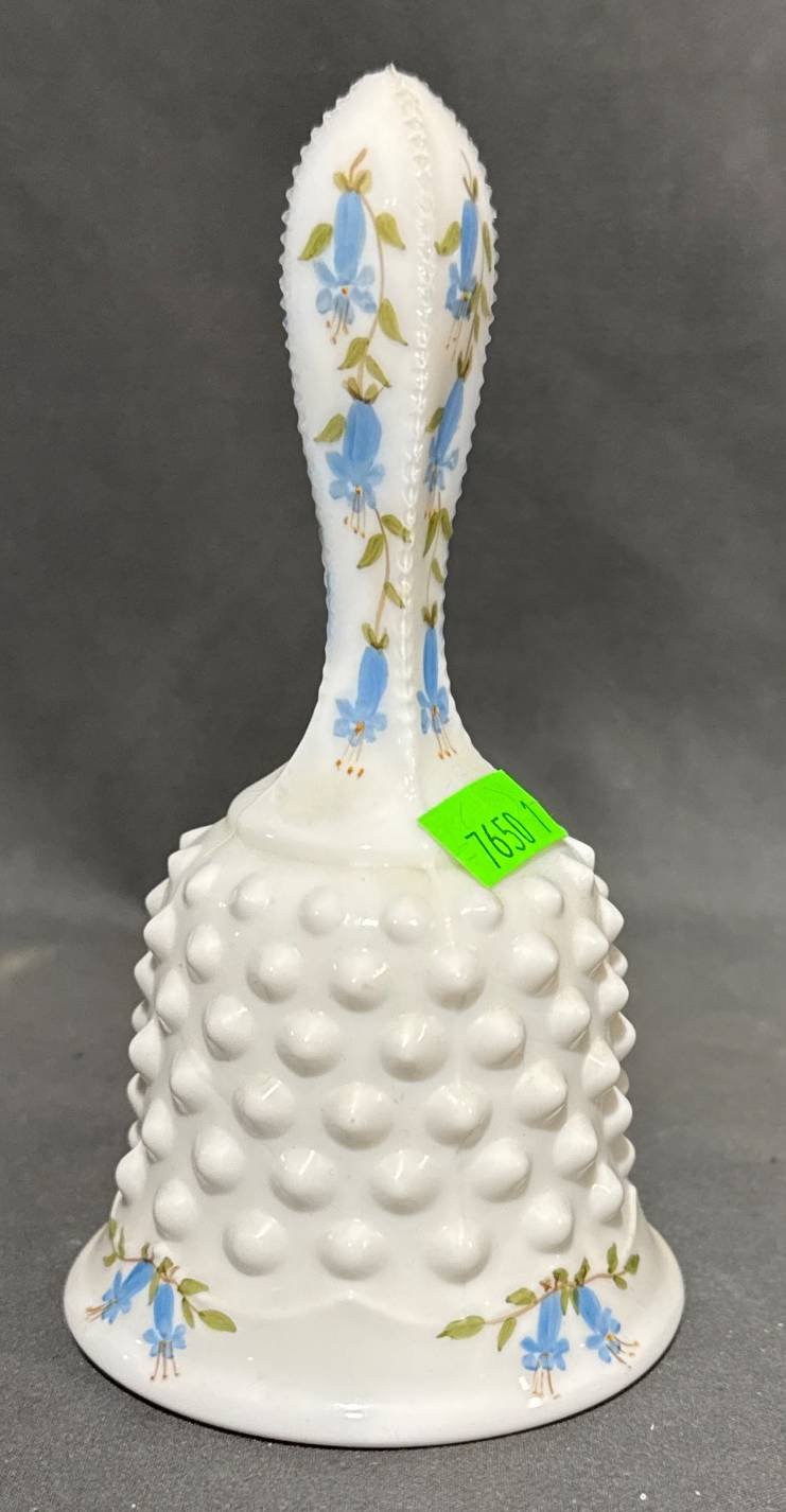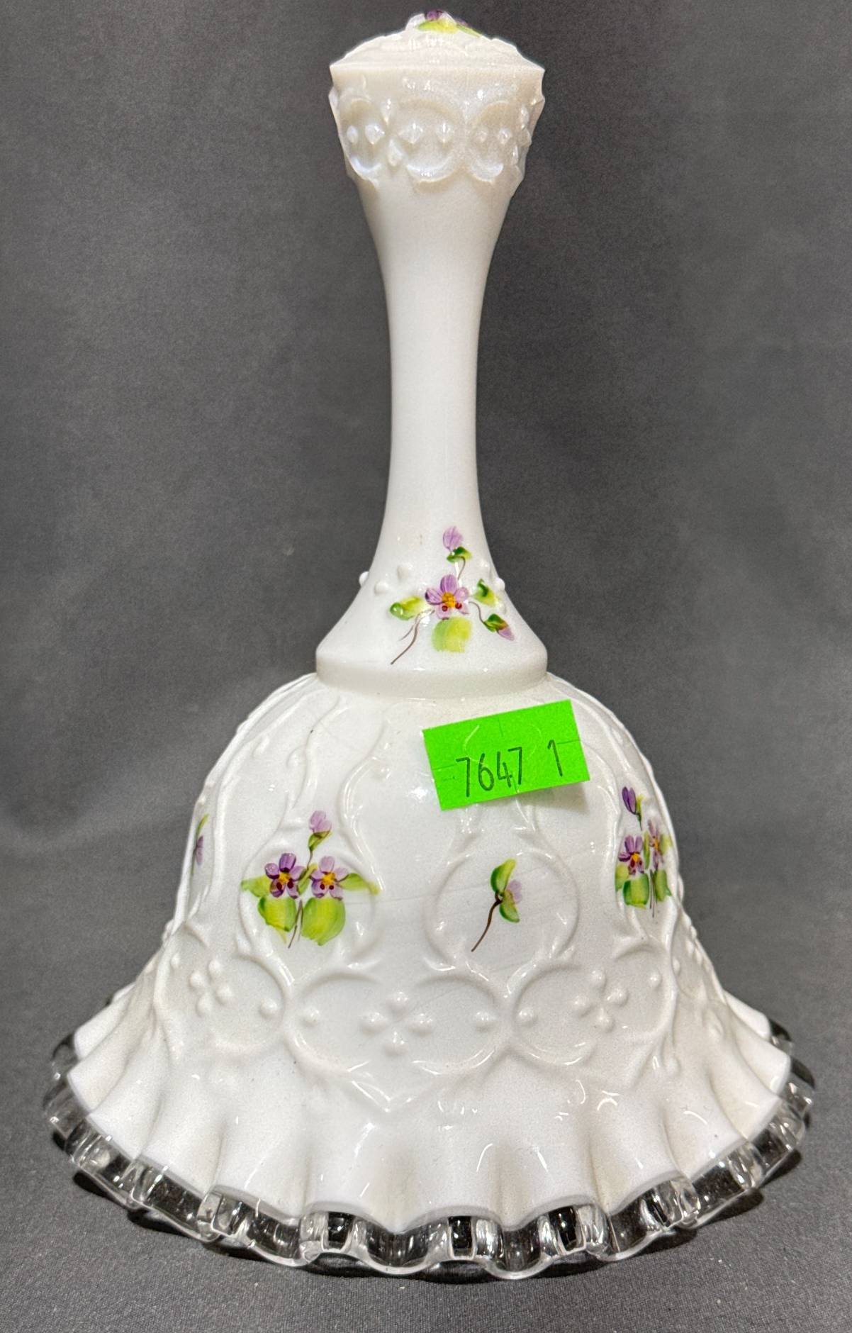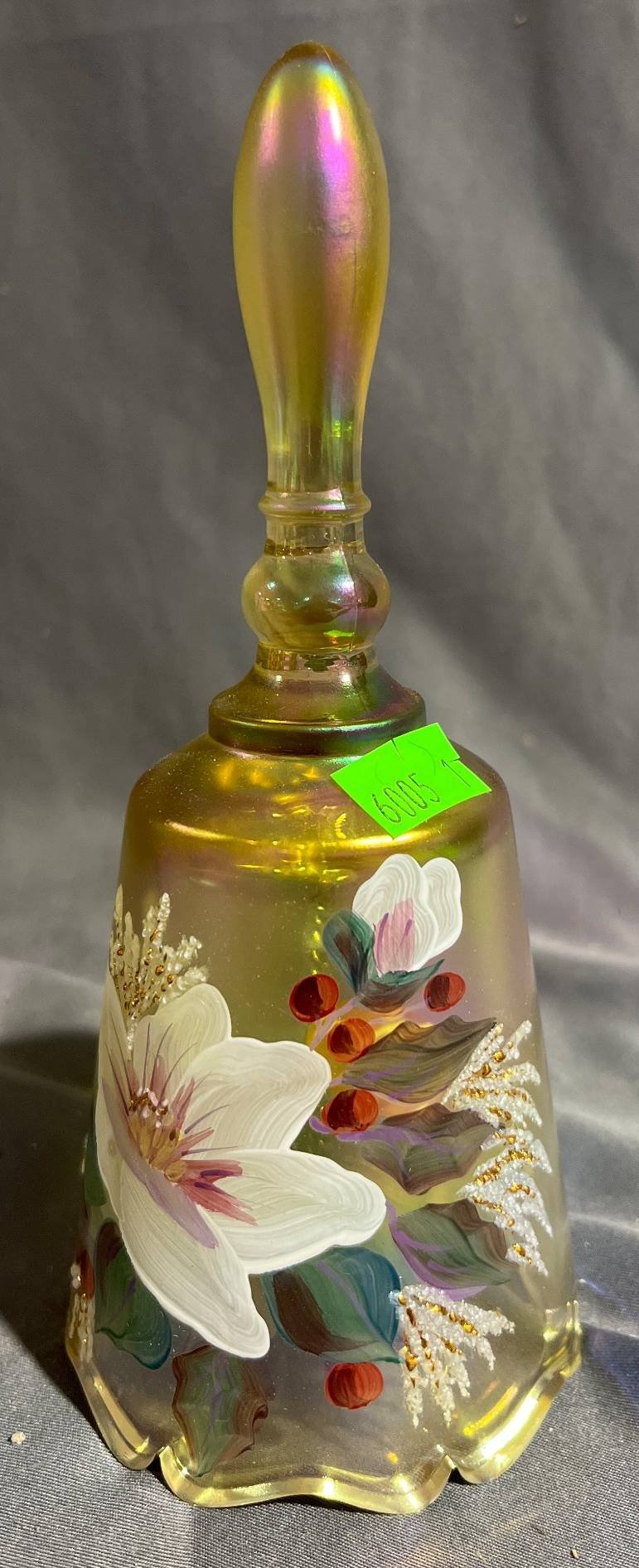 6005 Fenton Iridescent Glass Bell With Hand-Painted Floral Design 7”