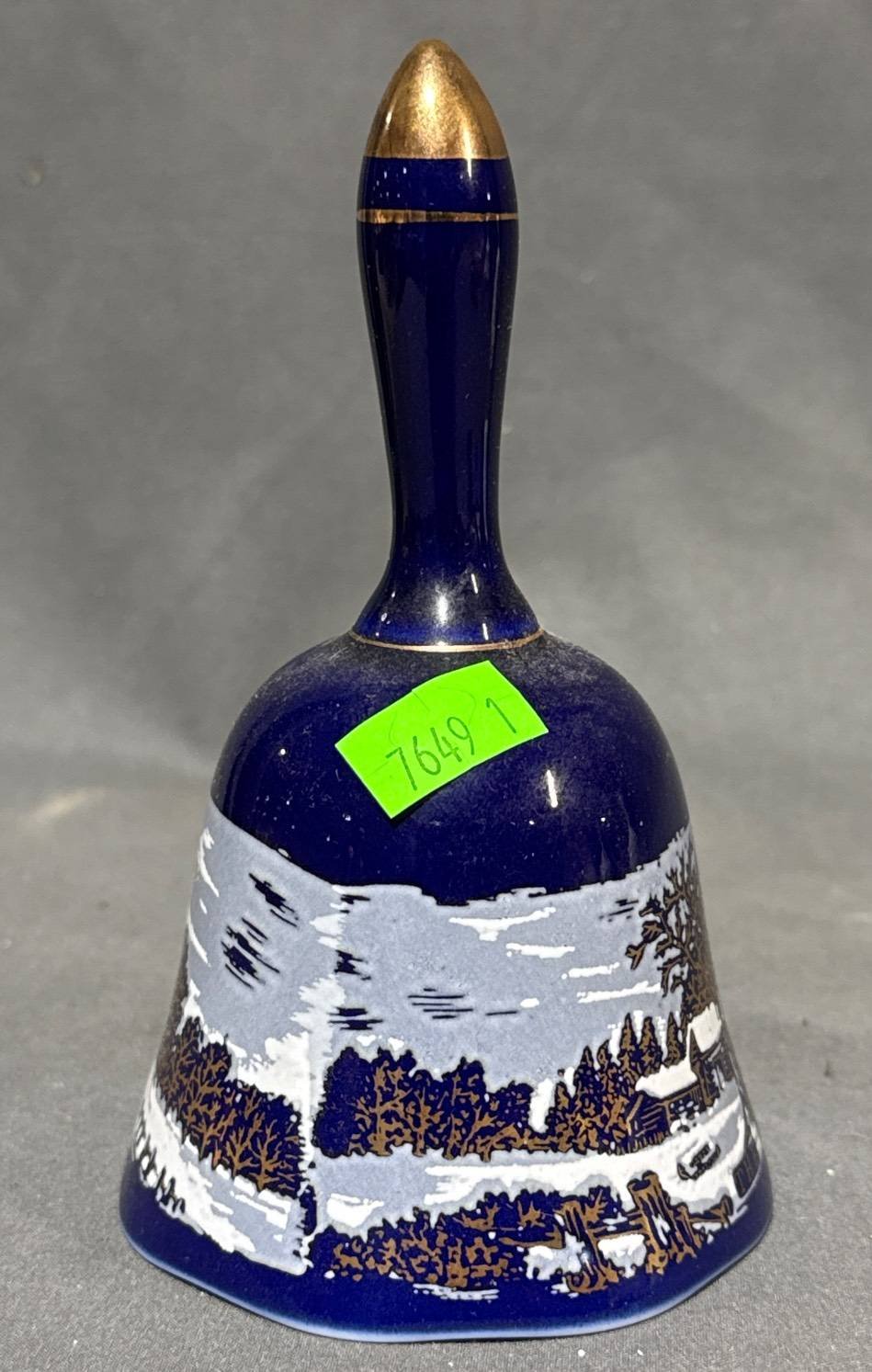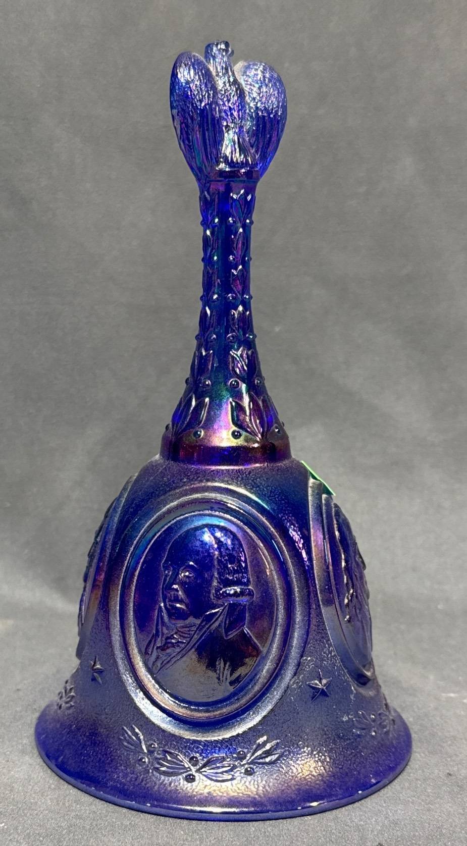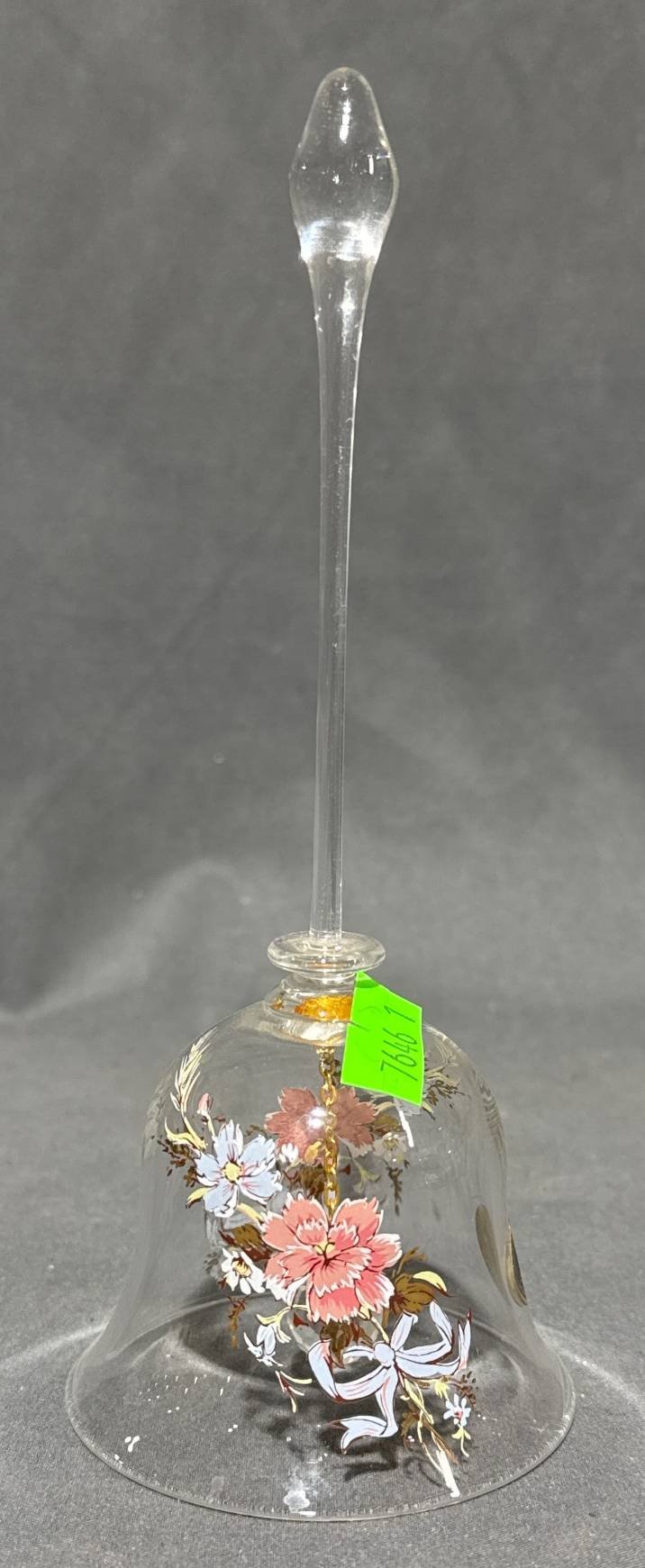 6005 Fenton Iridescent Glass Bell With Hand-Painted Floral Design 7”