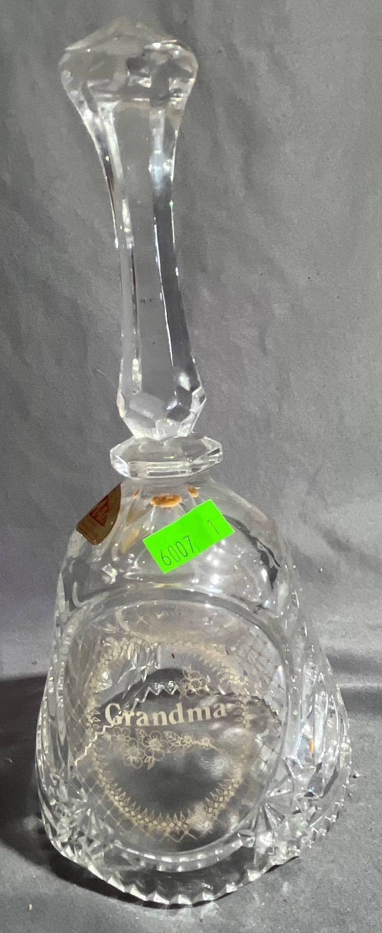 6007 Art Mark Etched Glass Bell with “Grandma” Dedication and Faceted Handle 8”