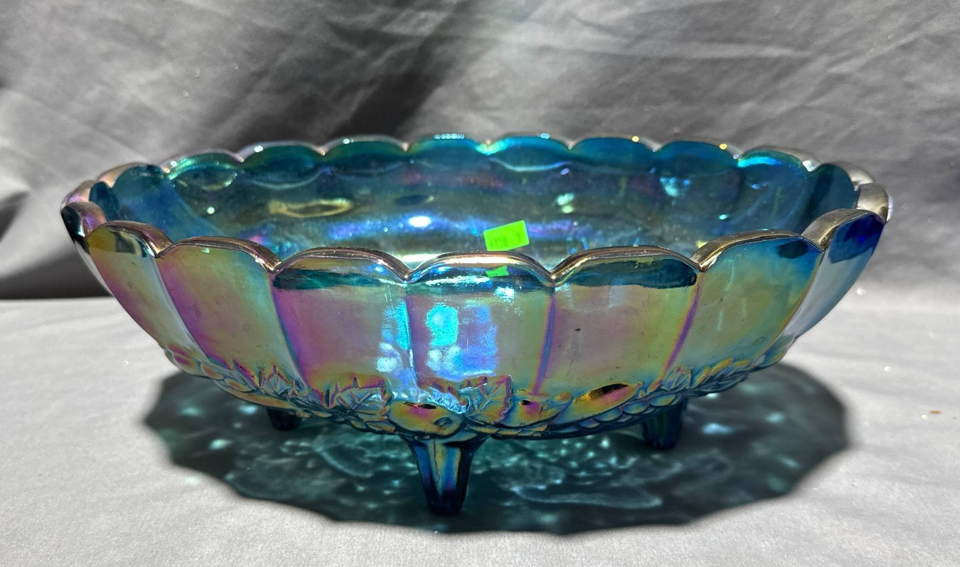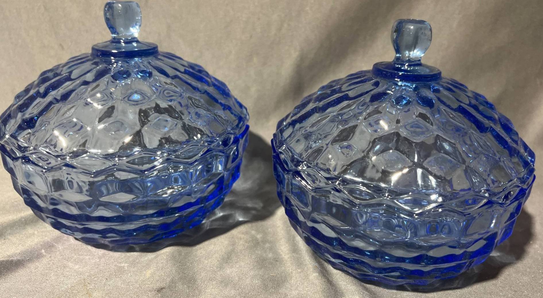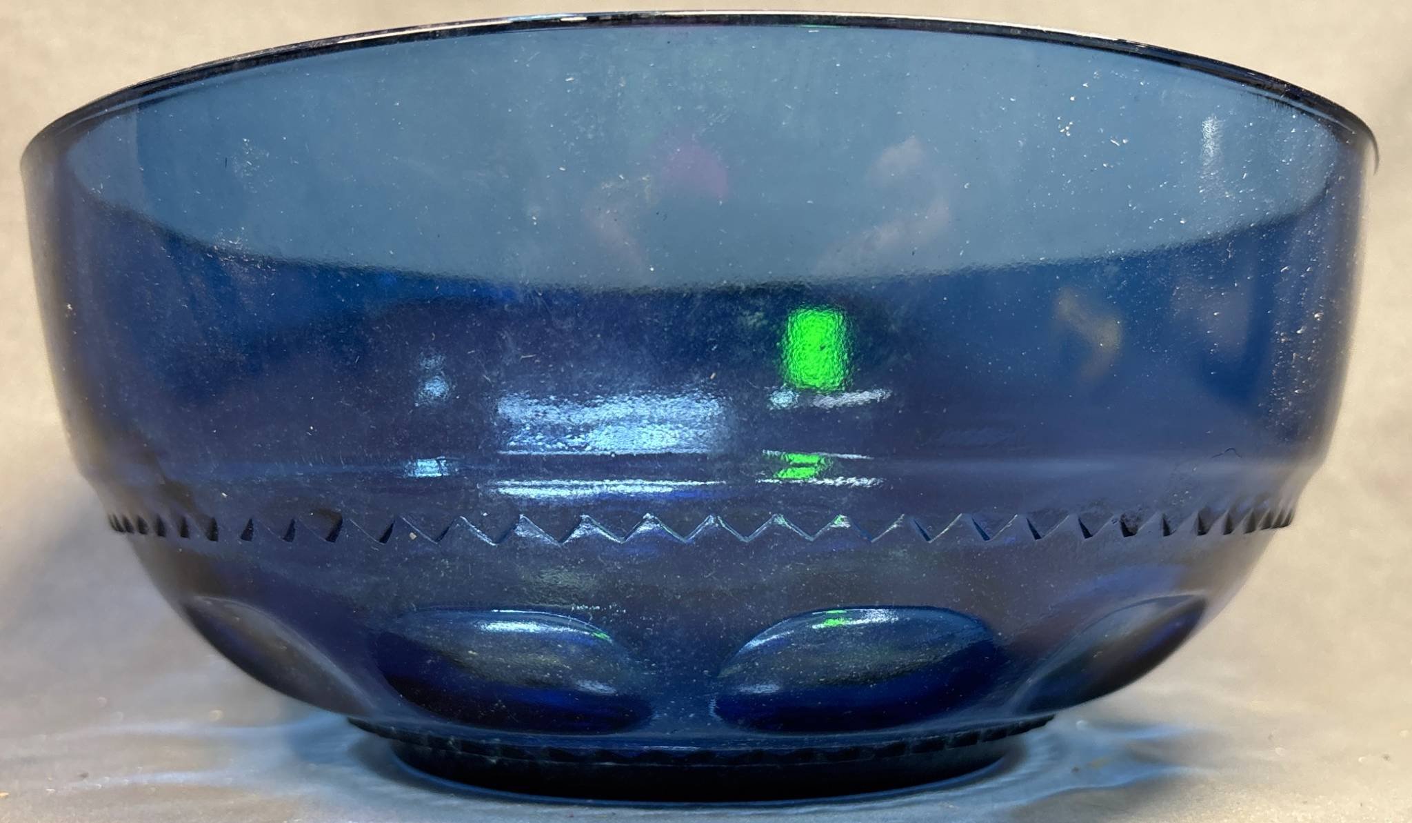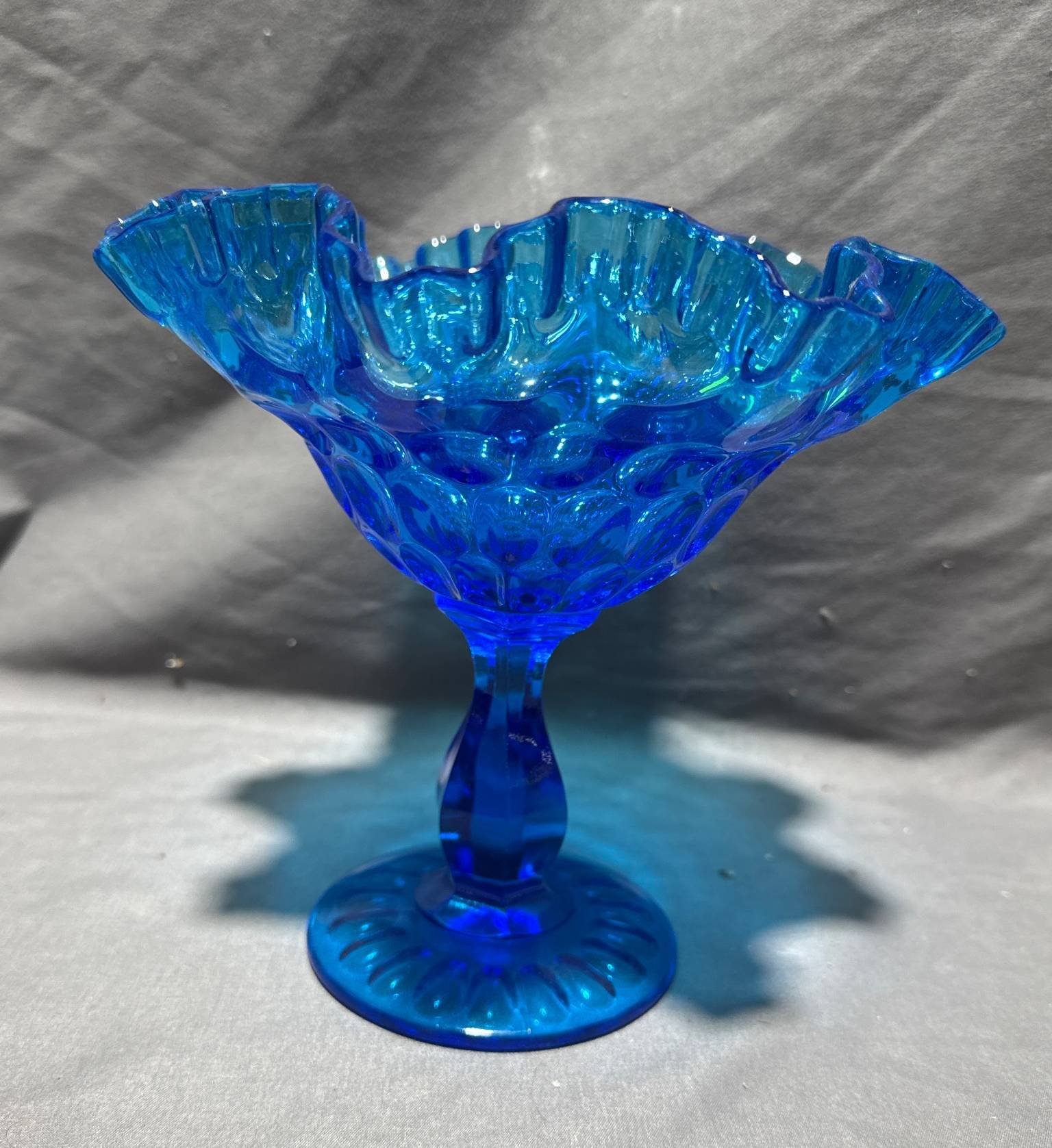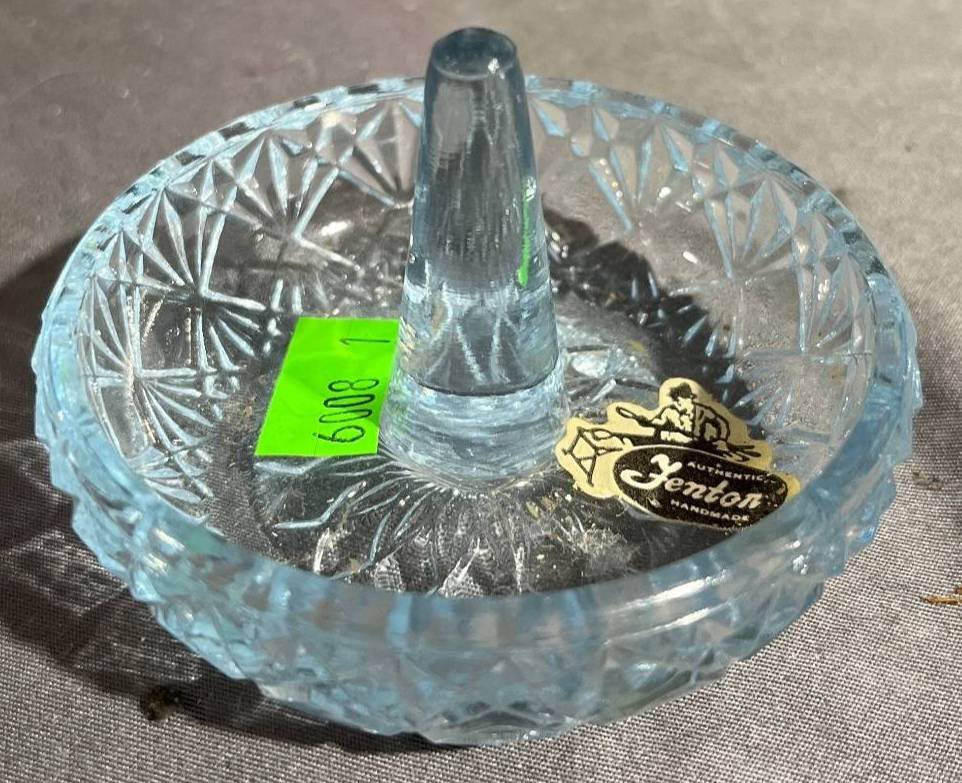 6008 Fenton Handmade Blue Glass Ring Holder with Etched Design 3”