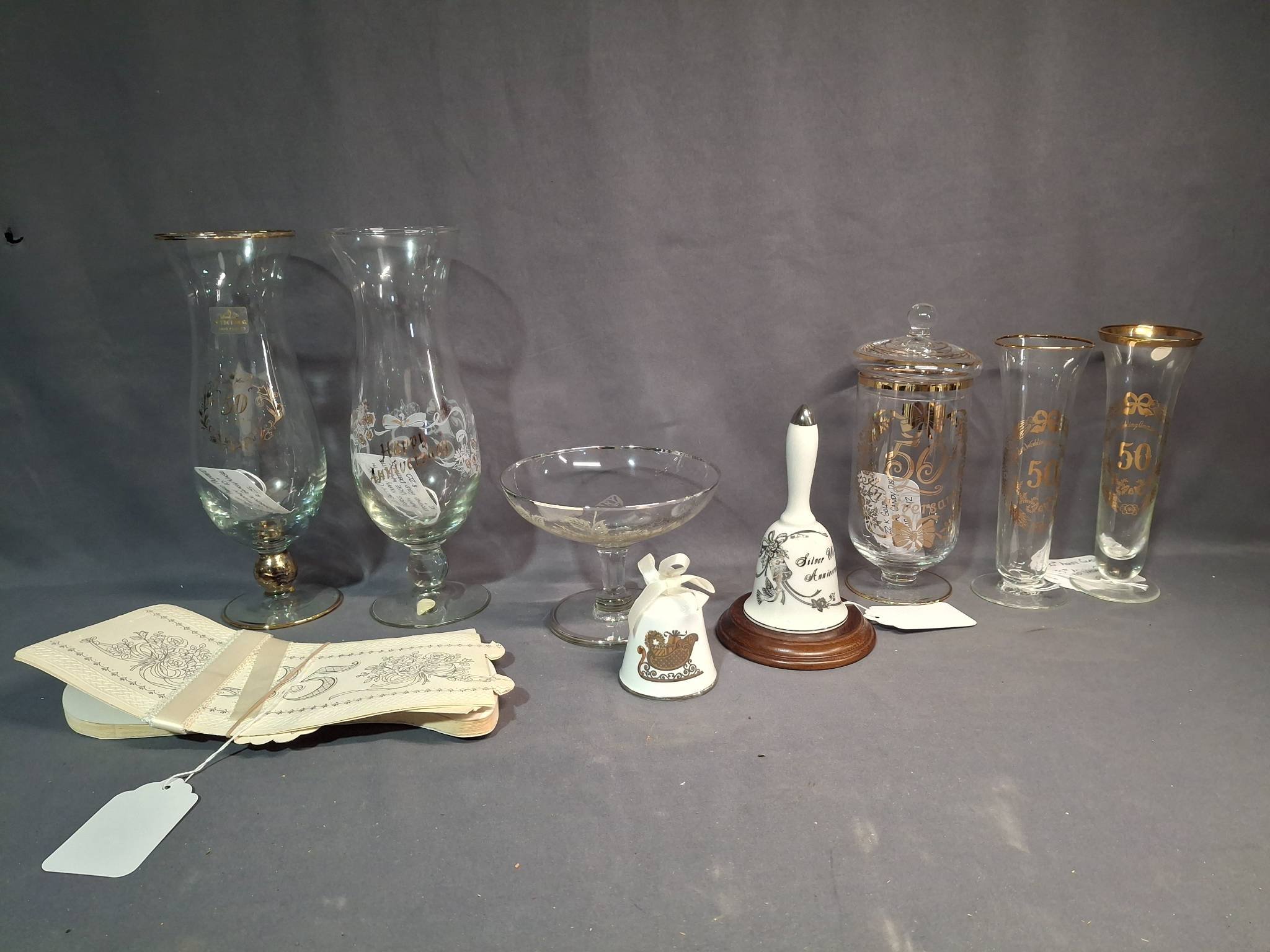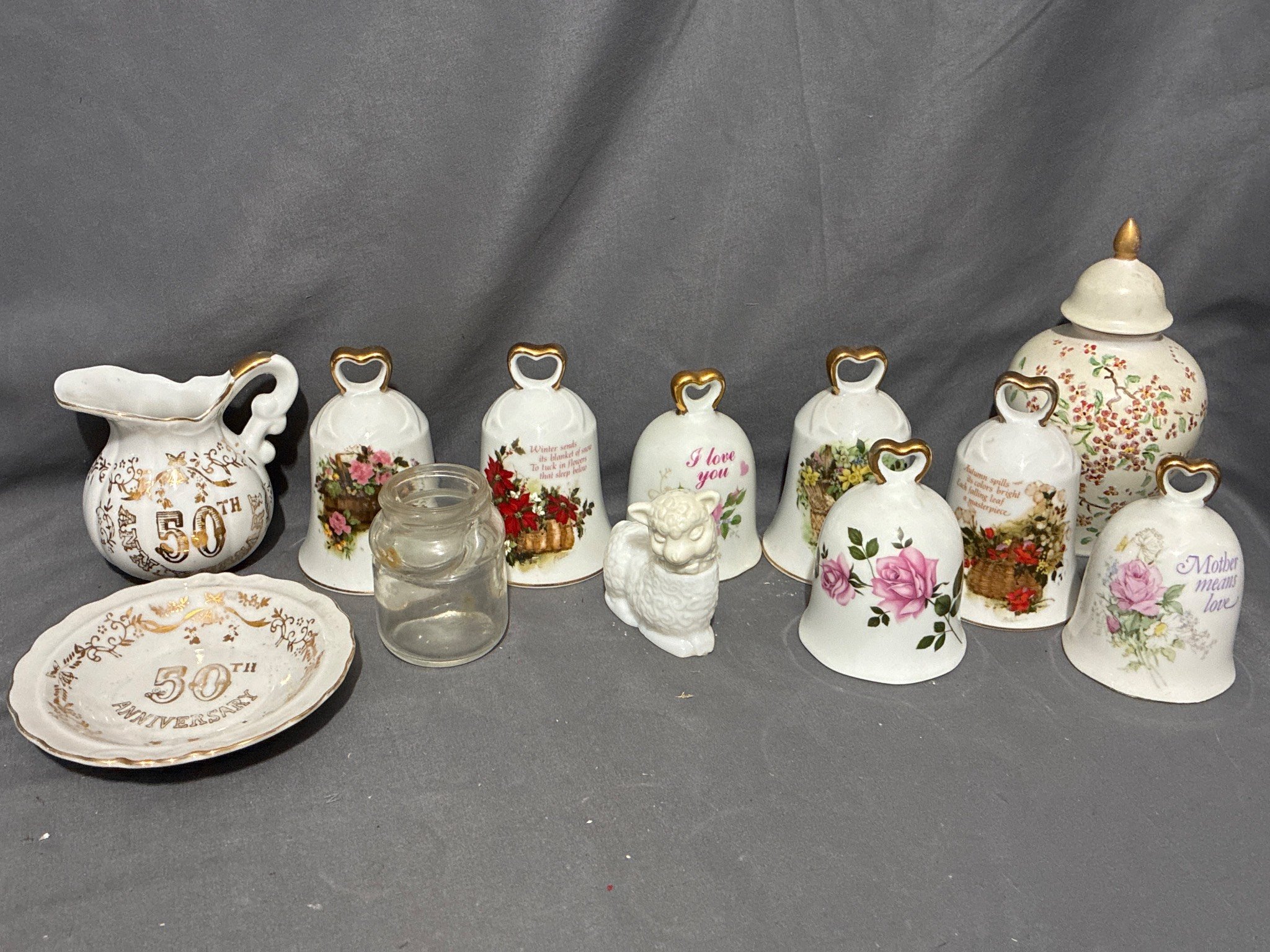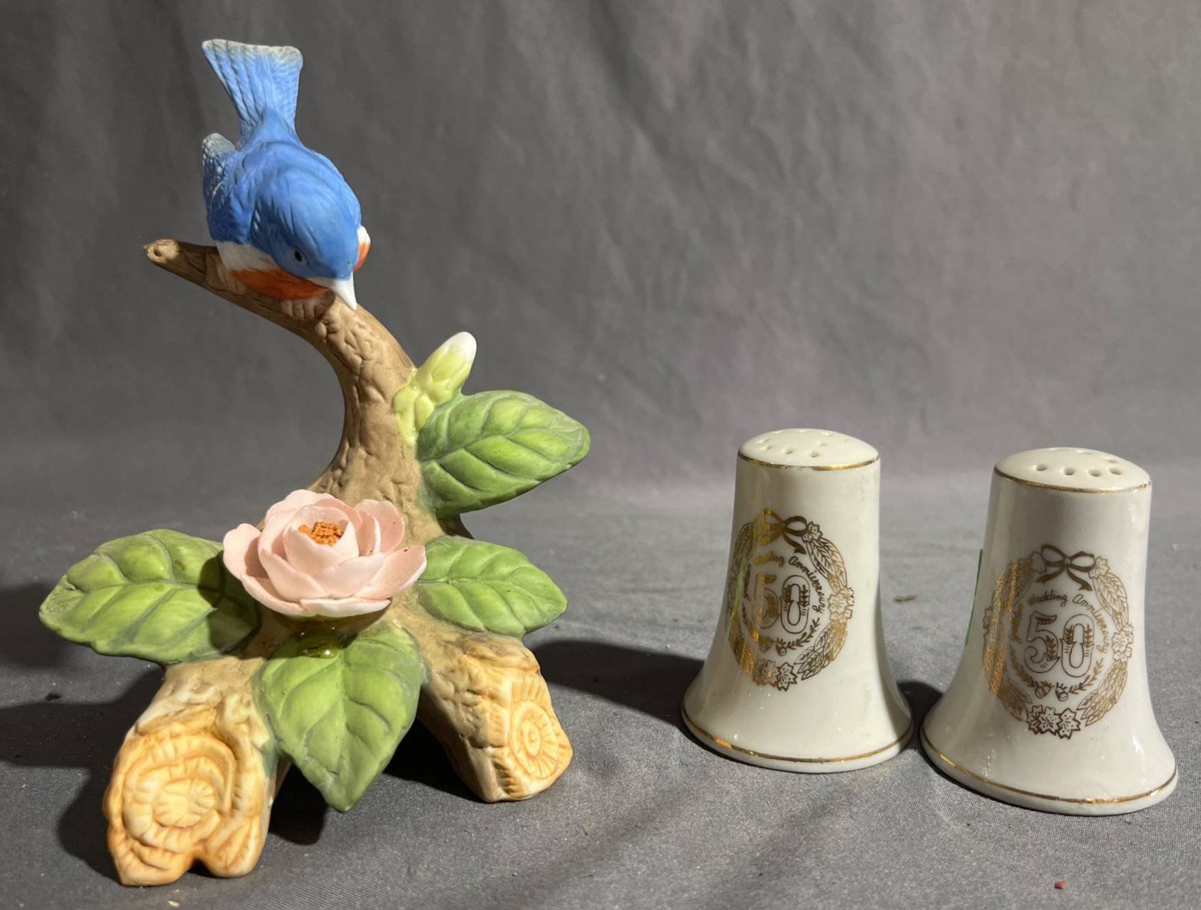 6009 50th Anniversary Salt and Pepper Shakers 2.5” and Bird Figurine 6”