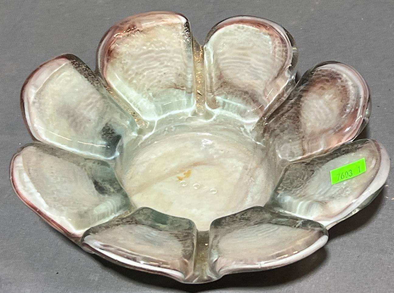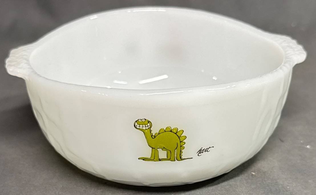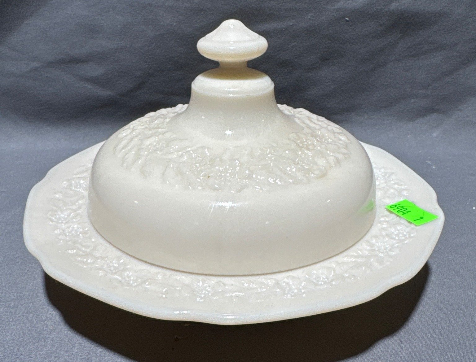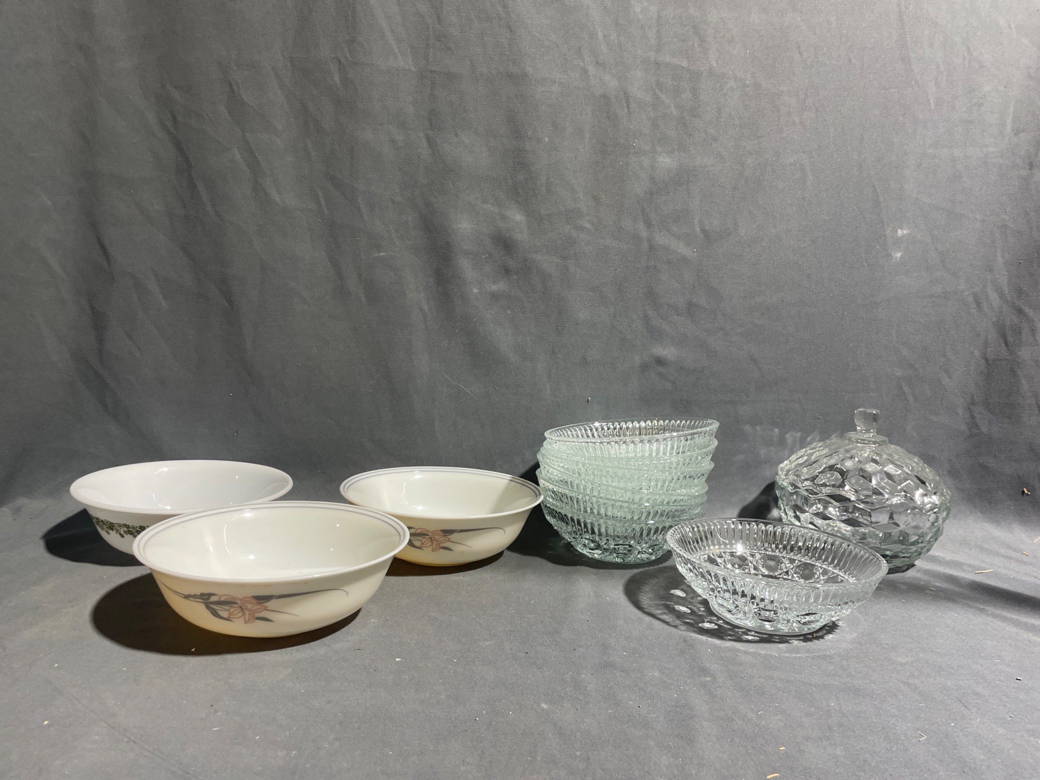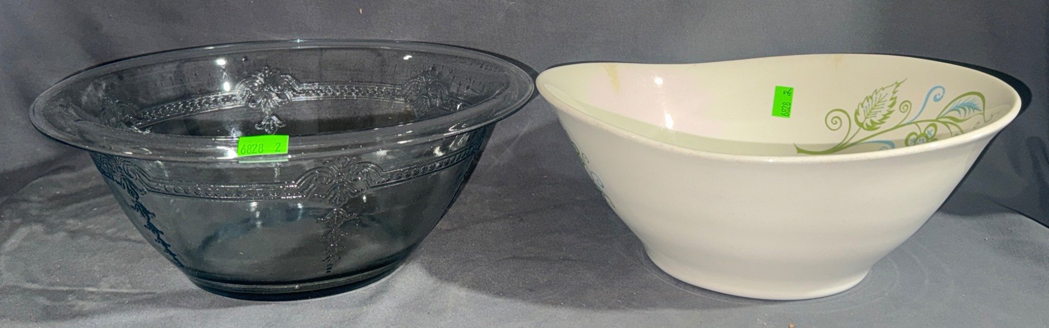 6013 White Pressed Glass Bowl with Scalloped and Embossed Design 8.5”