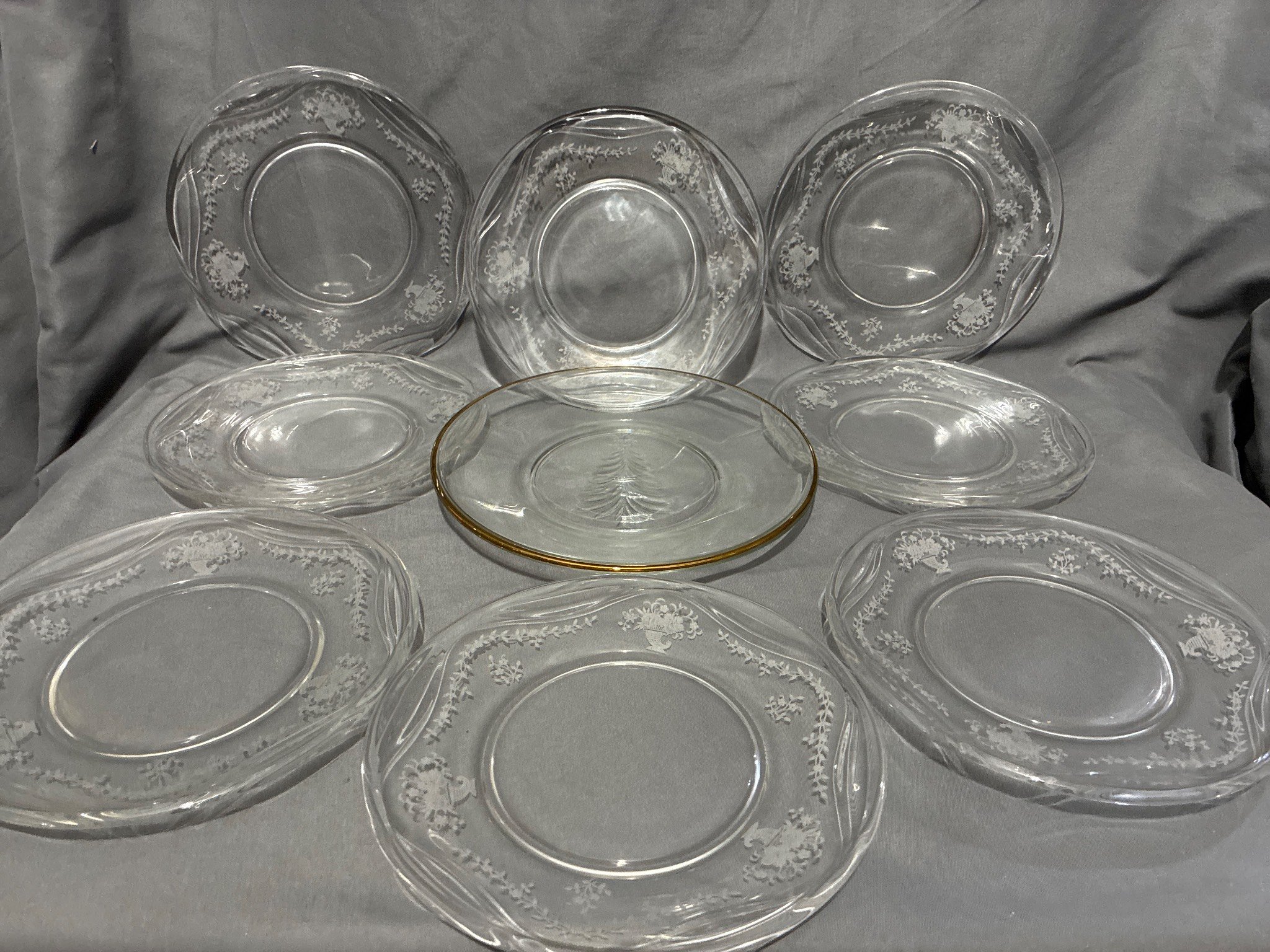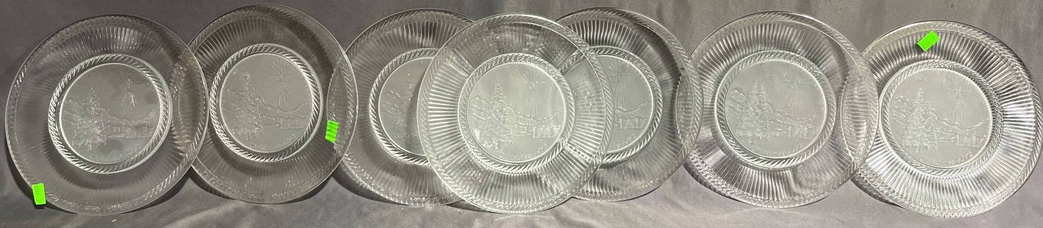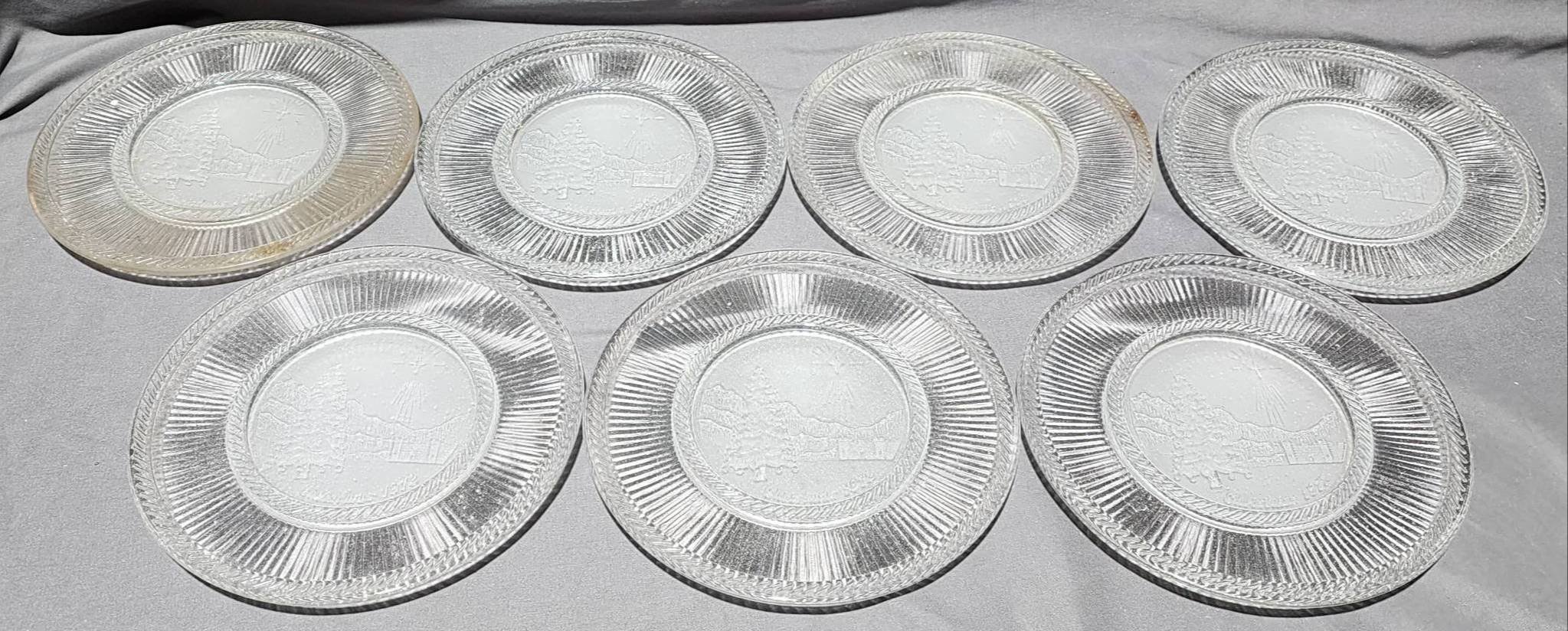 6014 7- Clear Glass Plates with Etched Christmas 1972 Design 8”