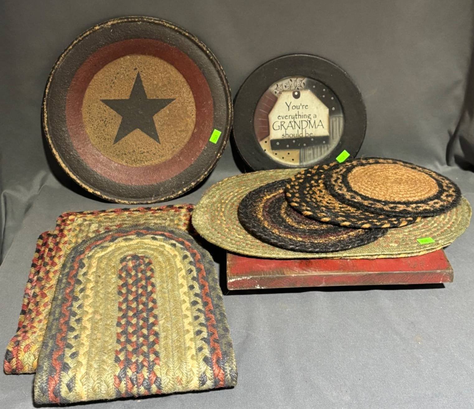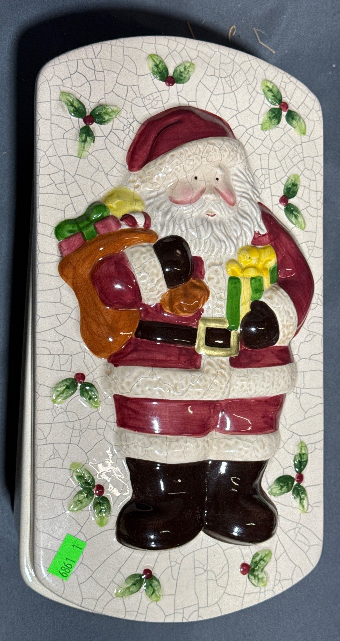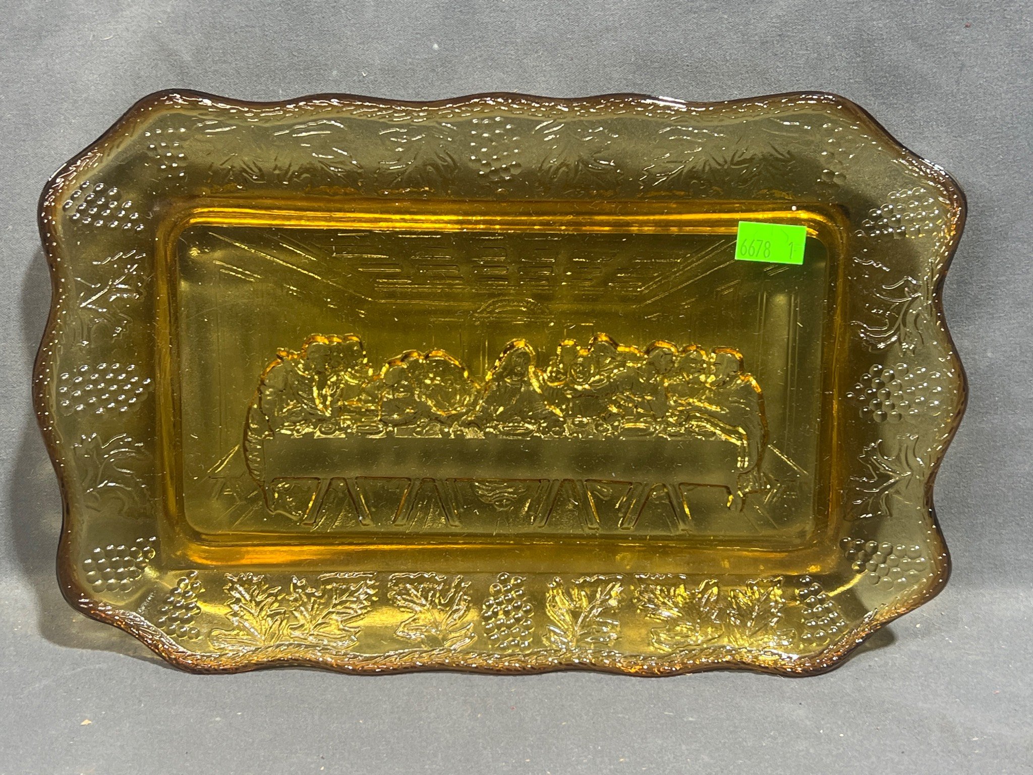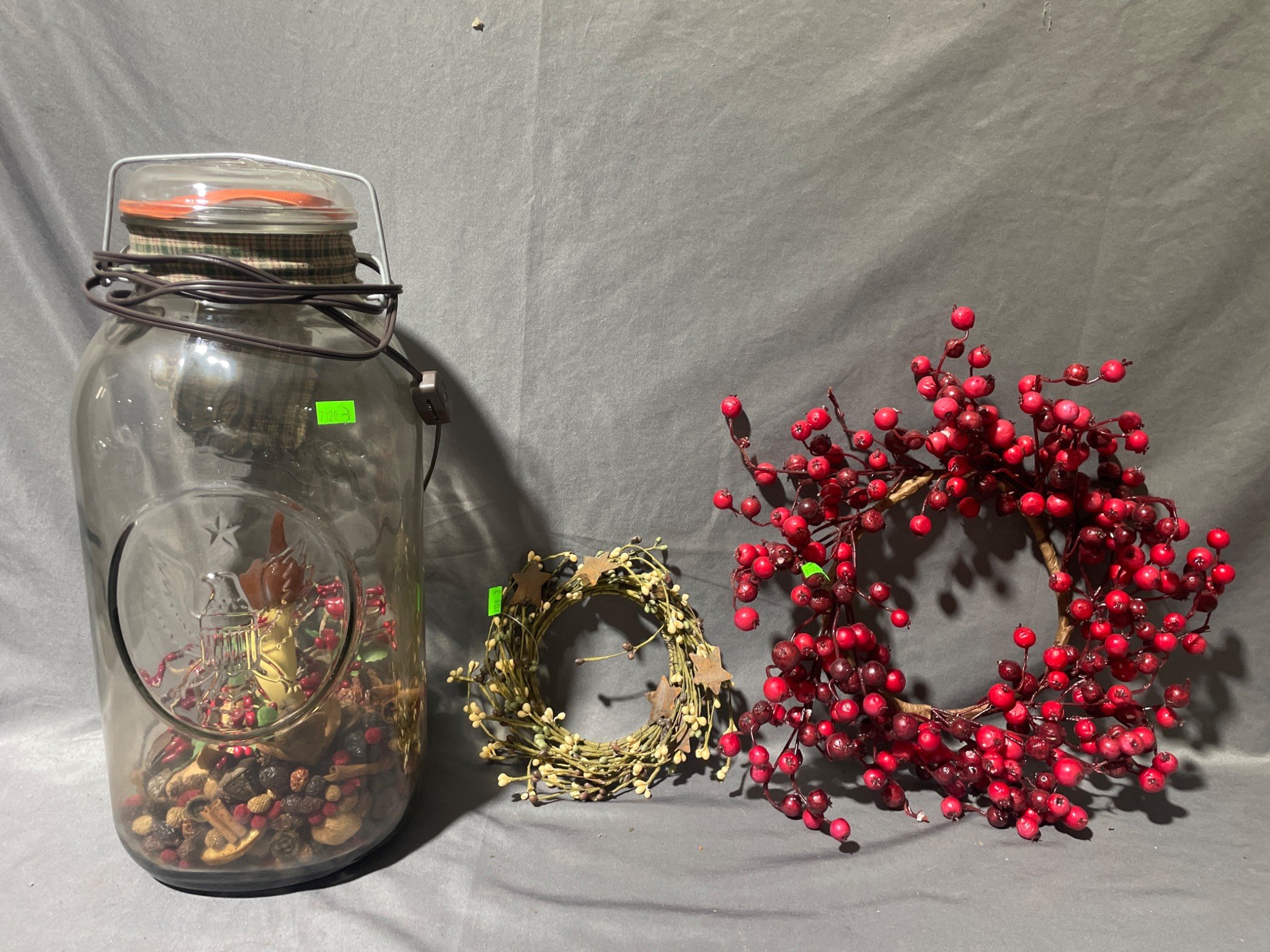 6016 3 Etched Glass Plates with ‘Season’s Greetings’ Design 14” and Resin Holiday Wreath 12”