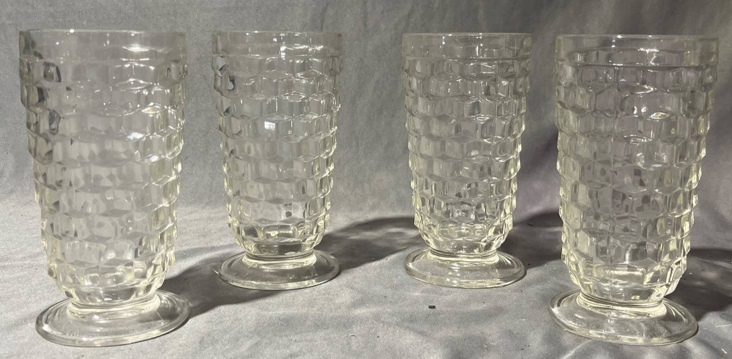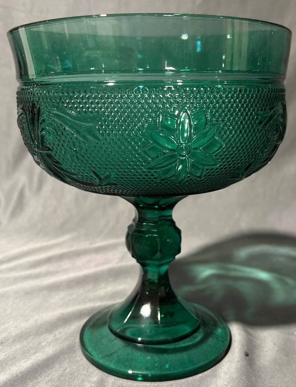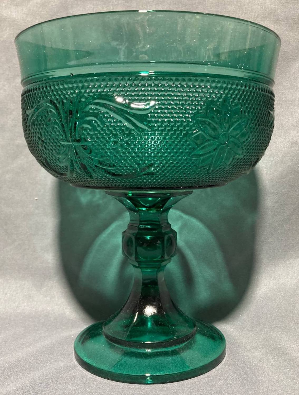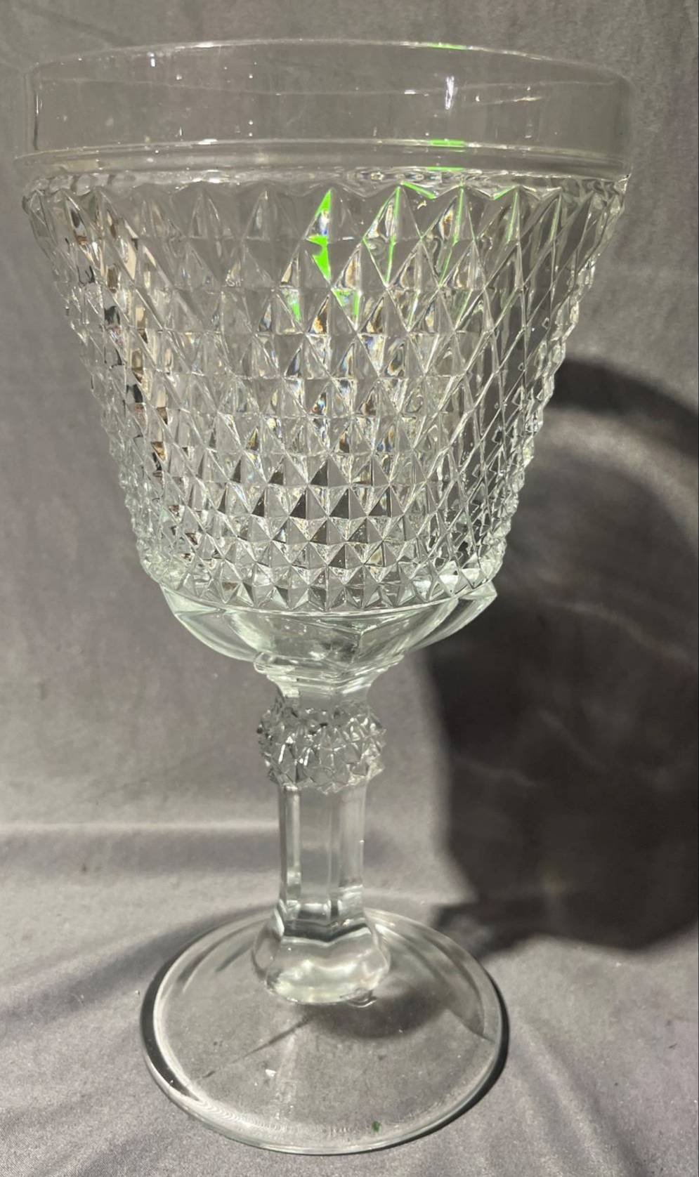 6017 Indiana Glass Pressed Glass Goblet with Diamond Pattern and Hexagonal Stem Detail 11”