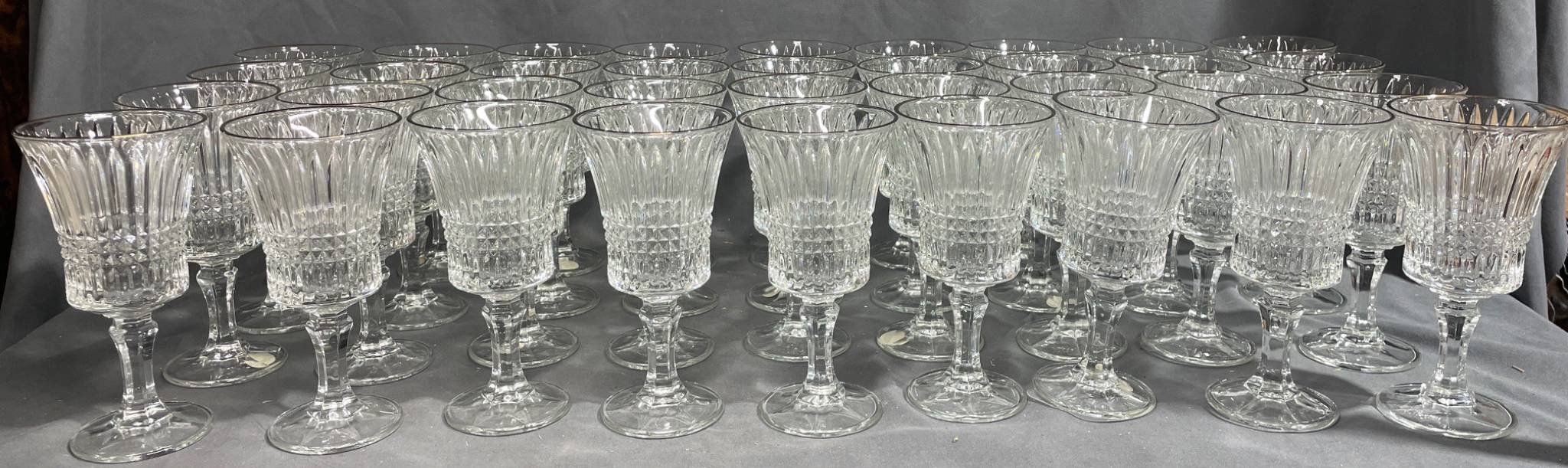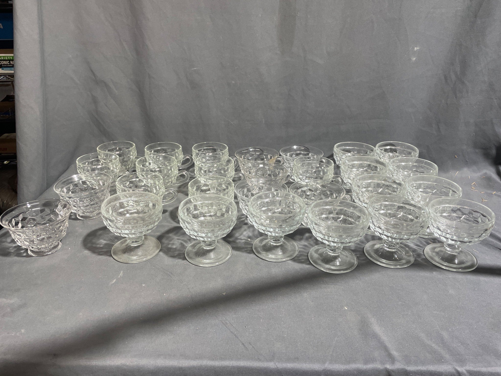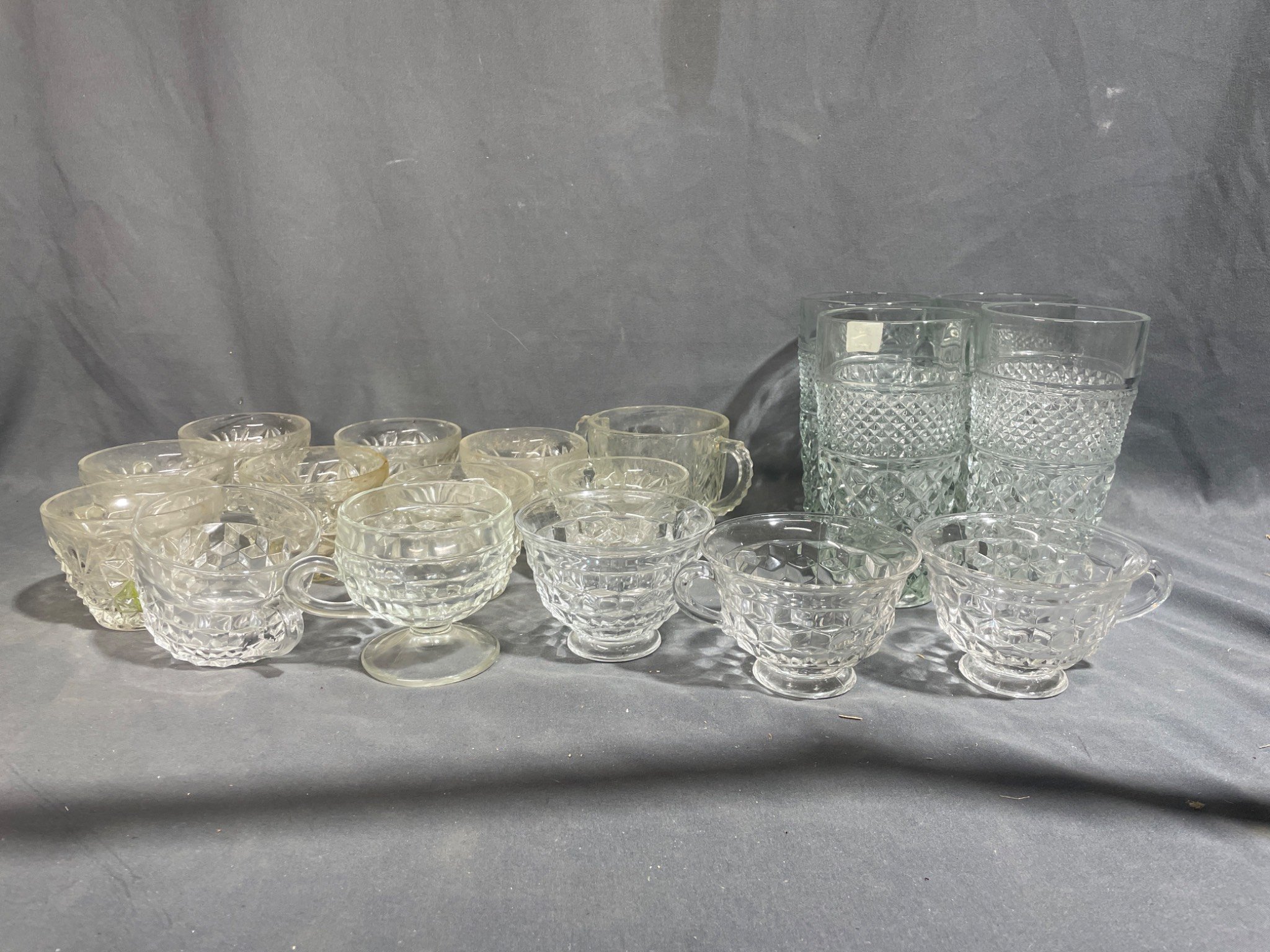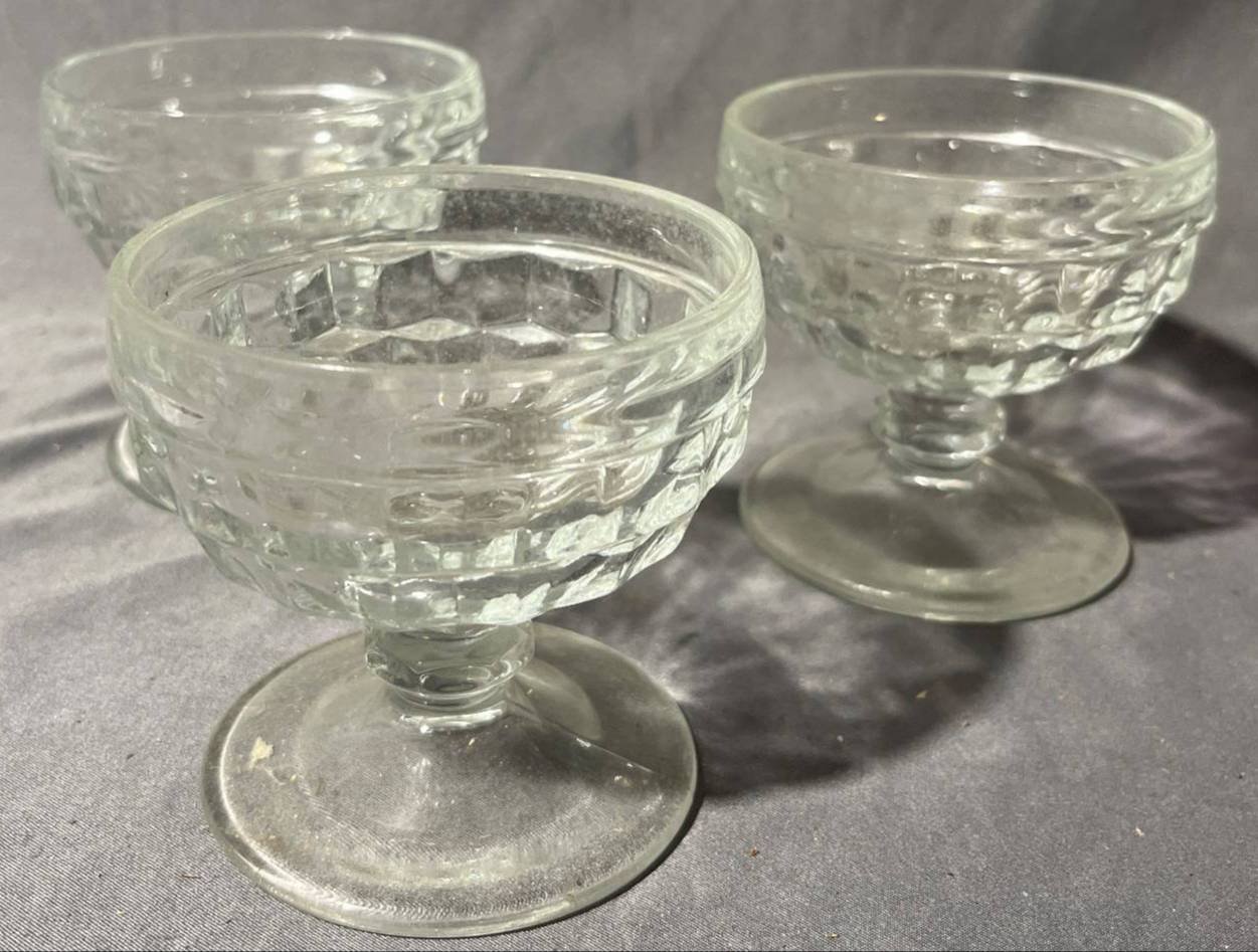 6017 Indiana Glass Pressed Glass Goblet with Diamond Pattern and Hexagonal Stem Detail 11”