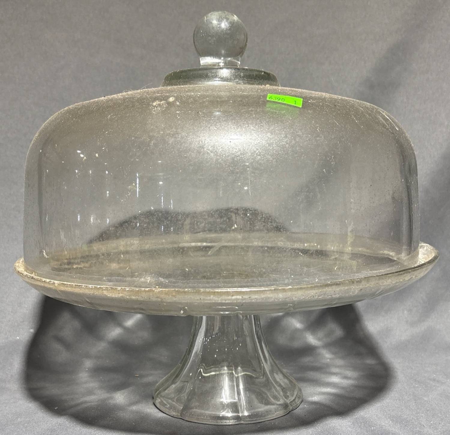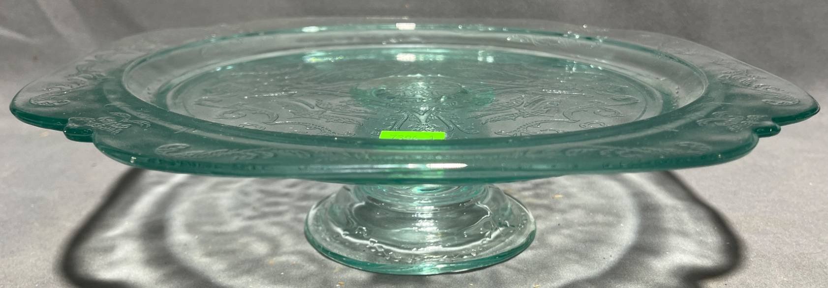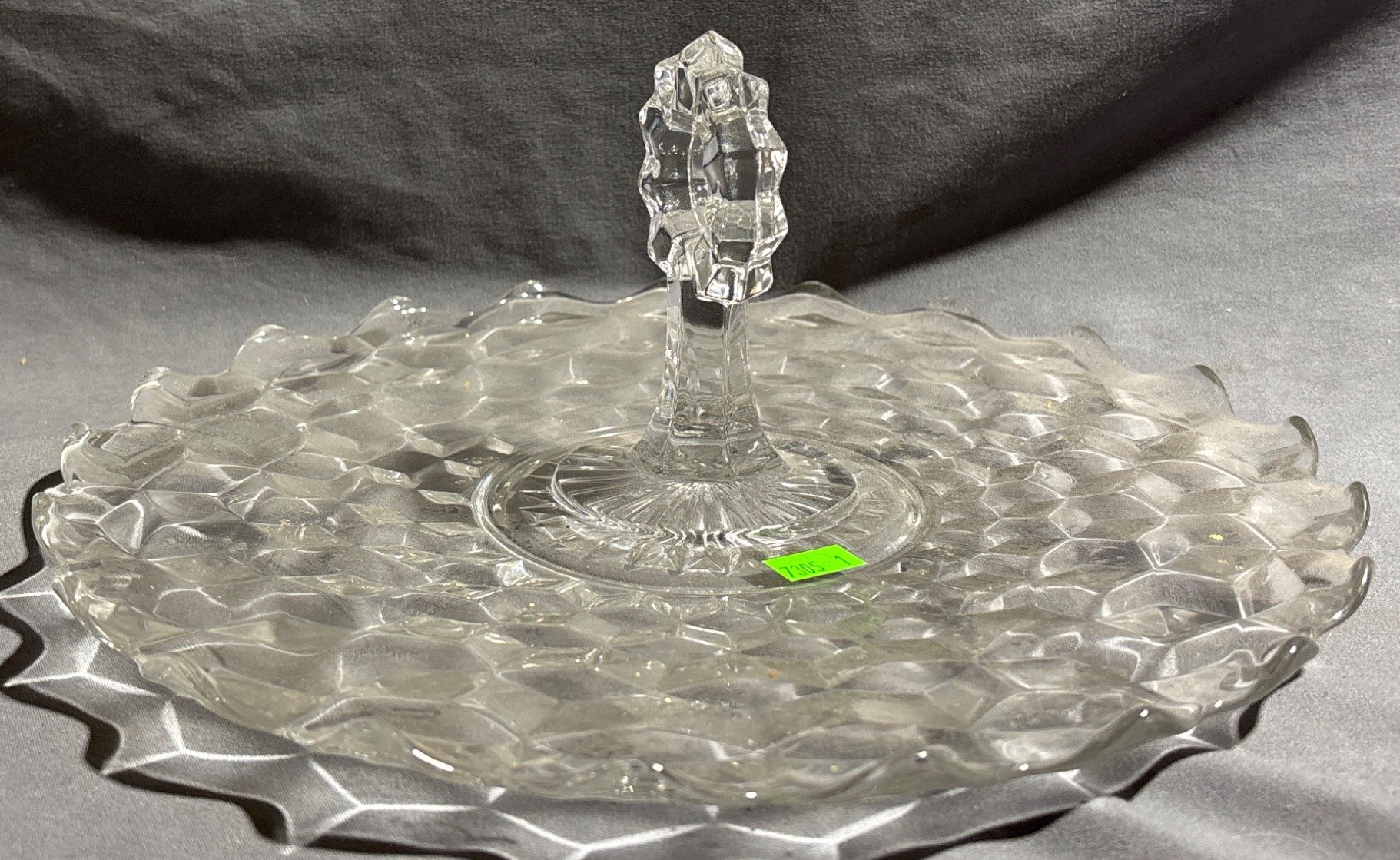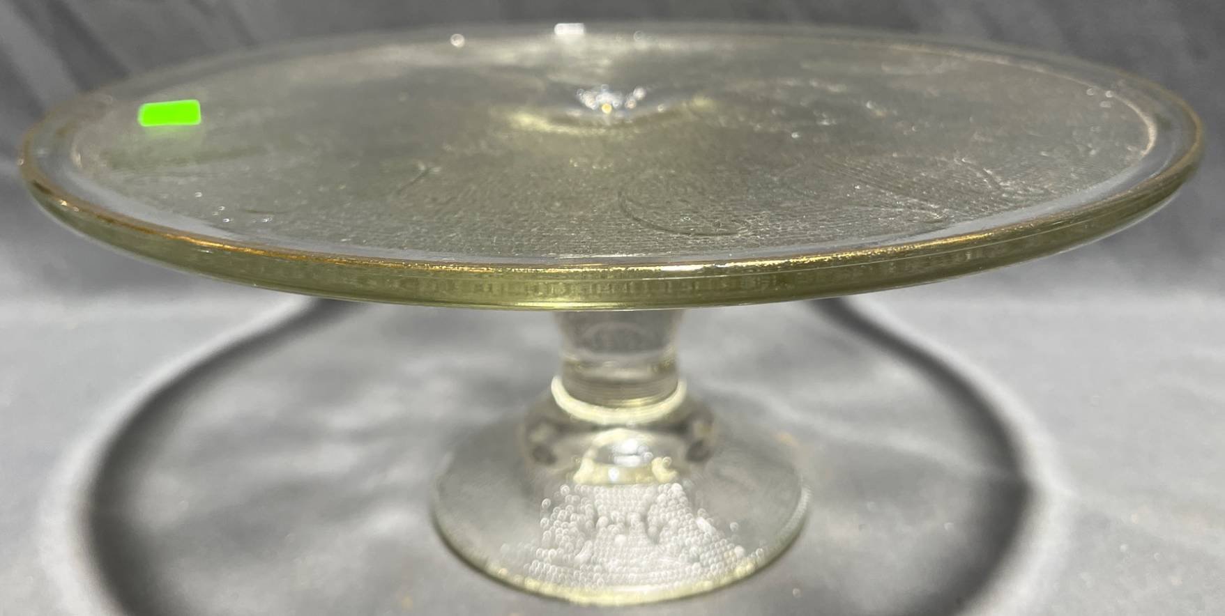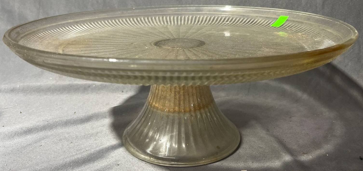 6018 Pressed Glass Pedestal Cake Stand with Ribbed Design 12”
