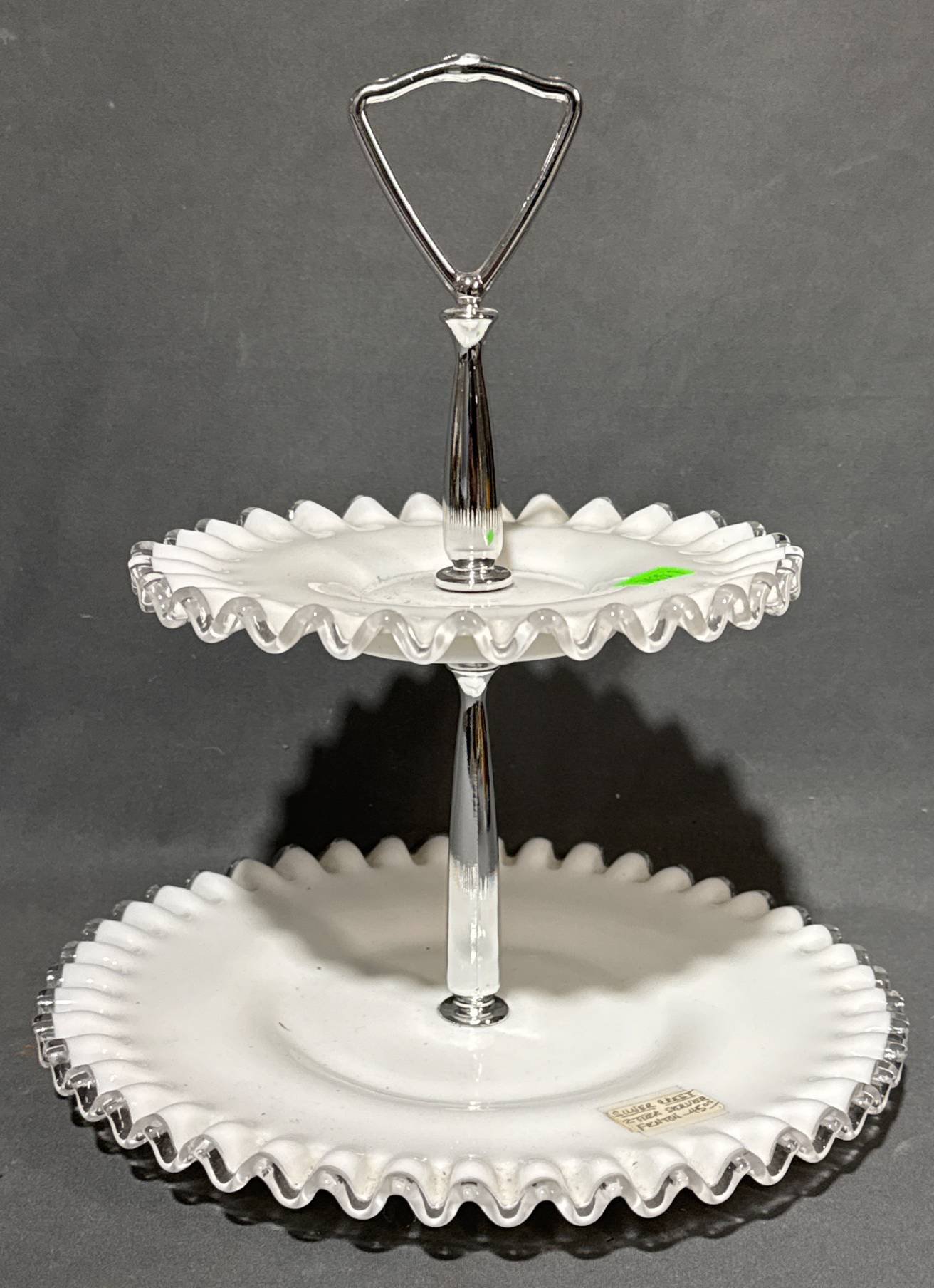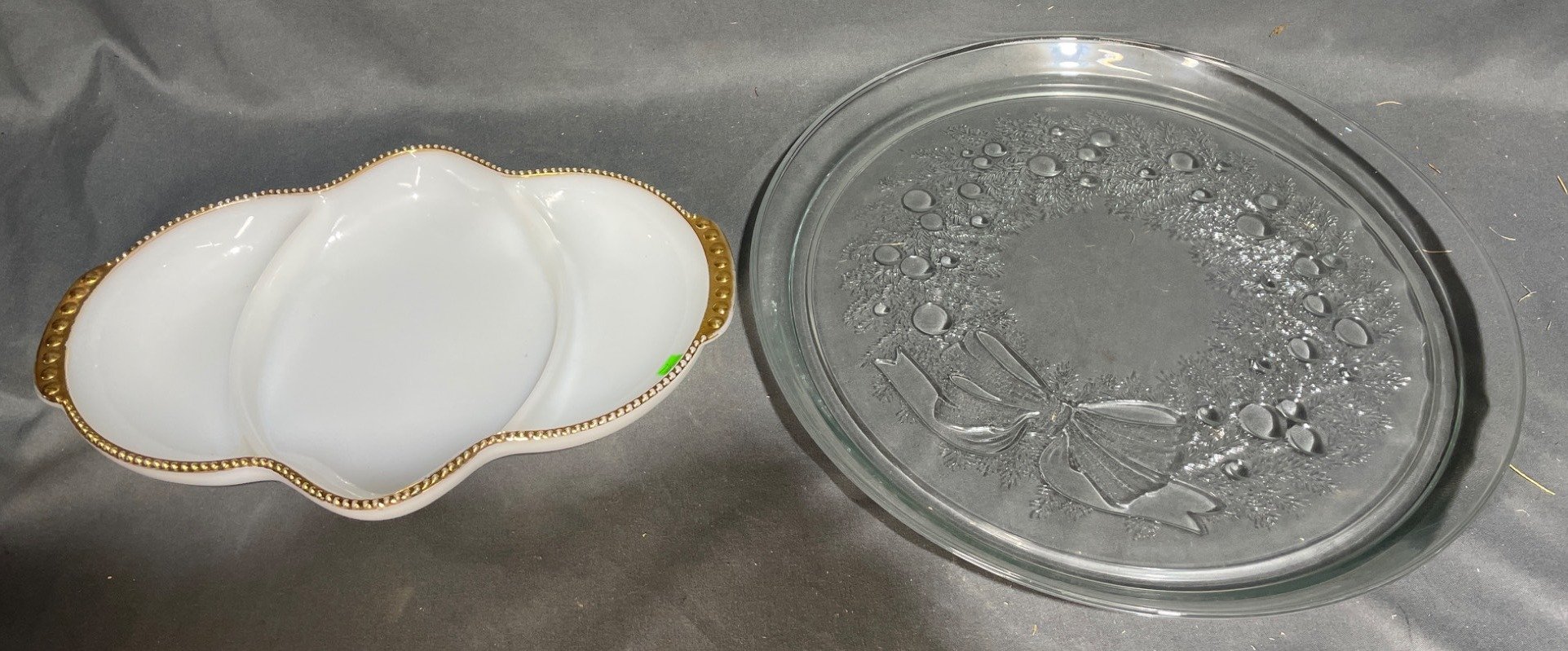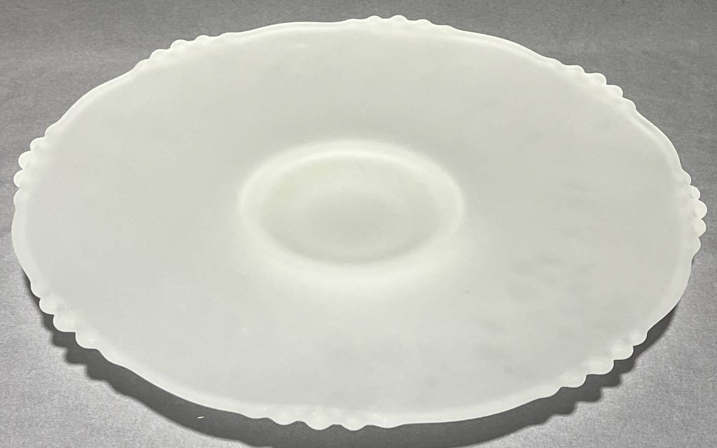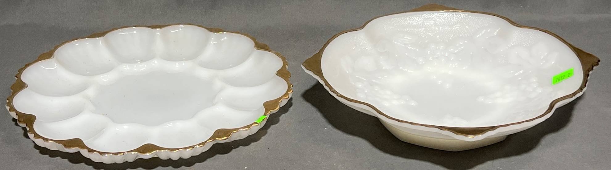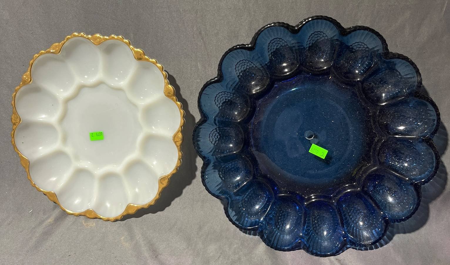 6019 Milk Glass and Blue Glass Egg Plates with Scalloped Edges 10” & 11”