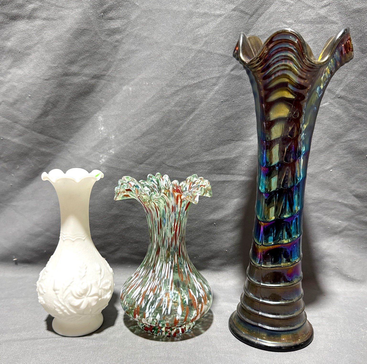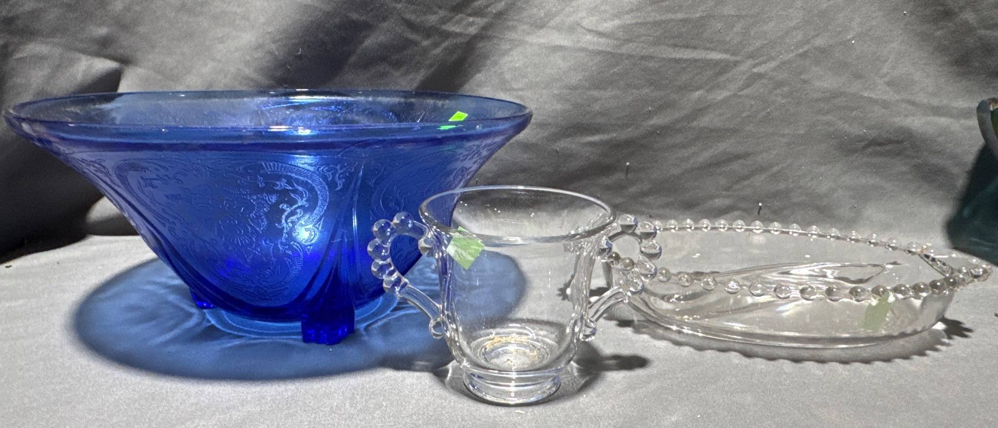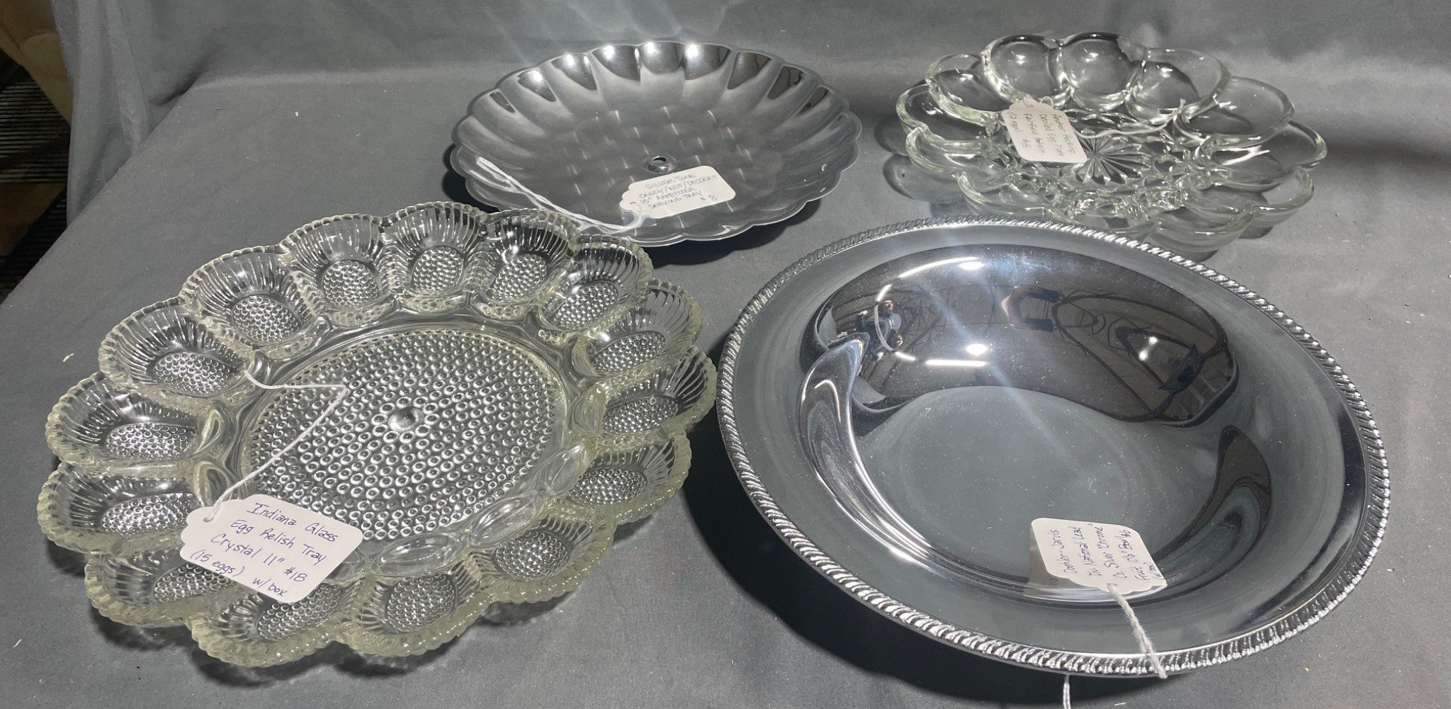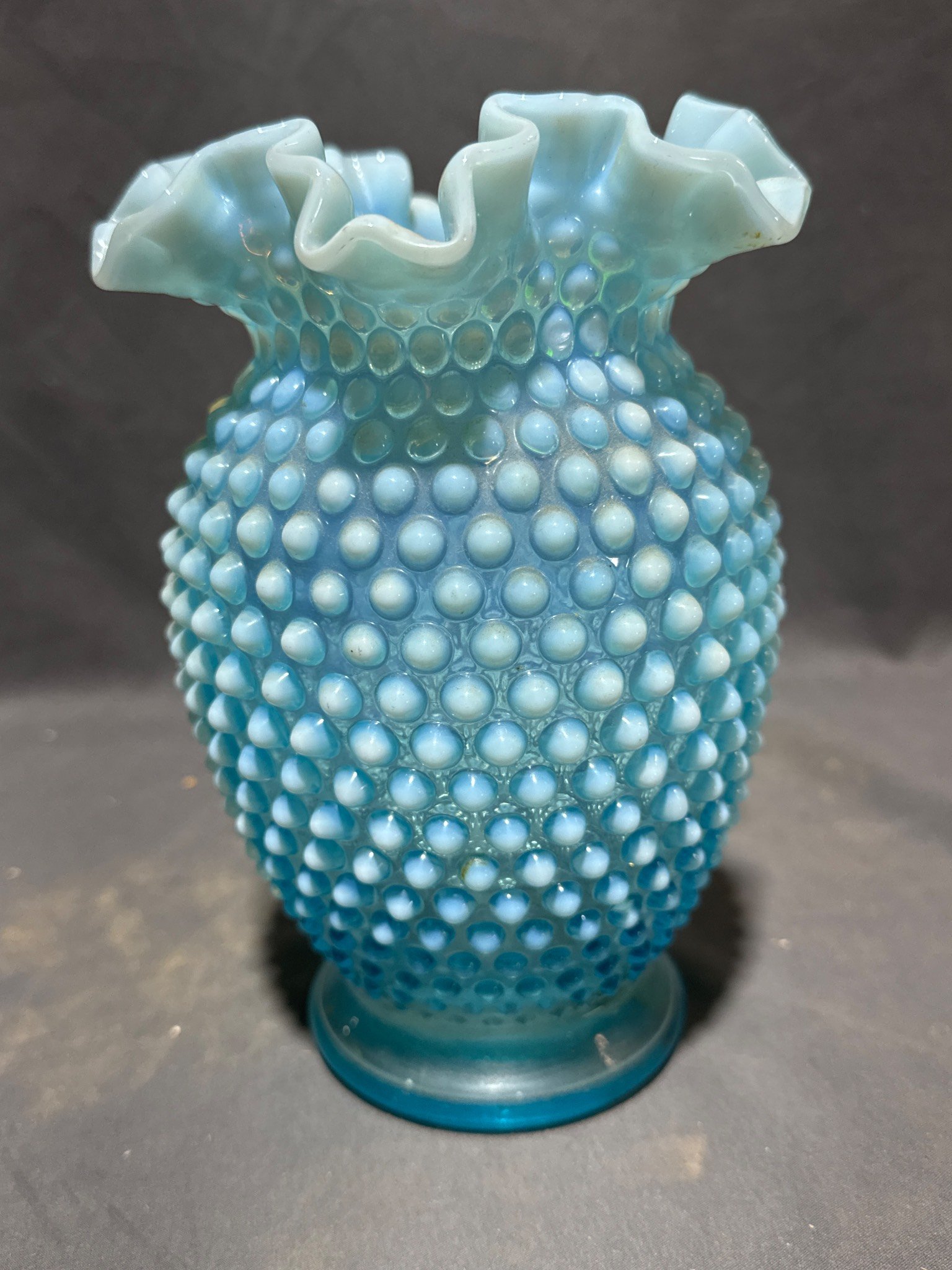 6019 Milk Glass and Blue Glass Egg Plates with Scalloped Edges 10” & 11”