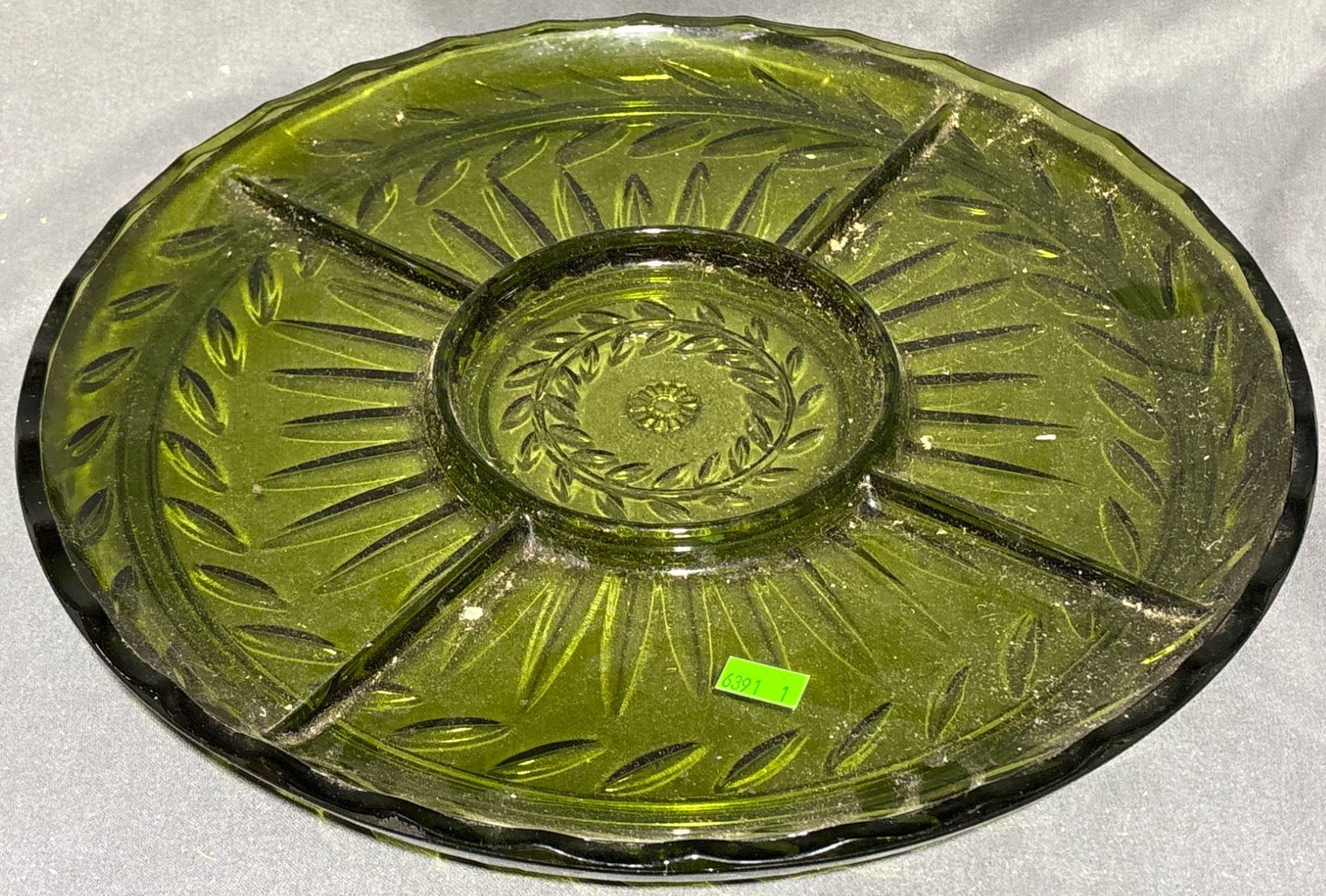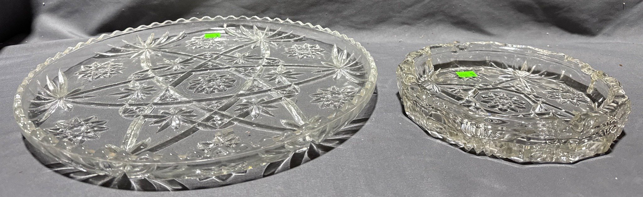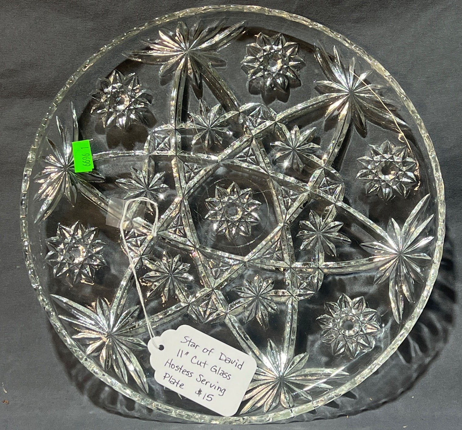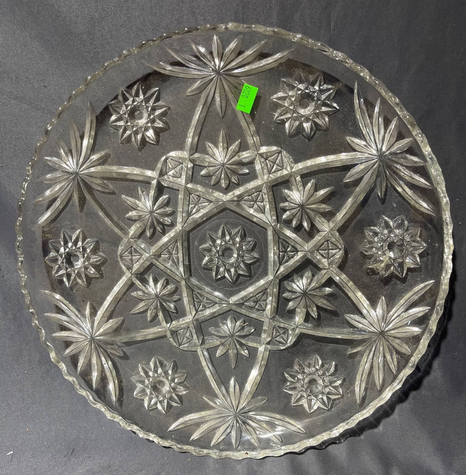 6020 Cut Glass Round Platter with Geometric and Floral Motifs 13”