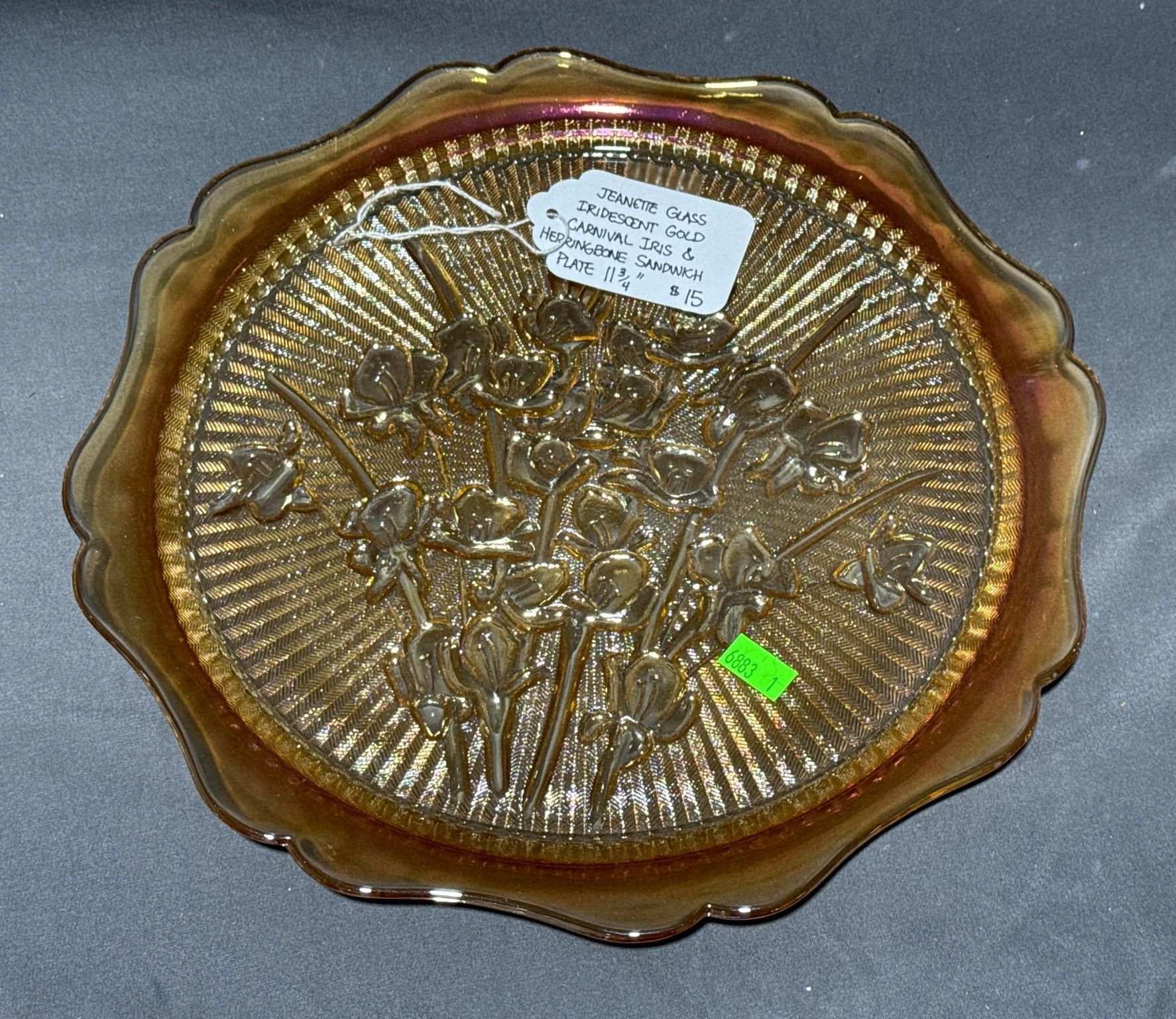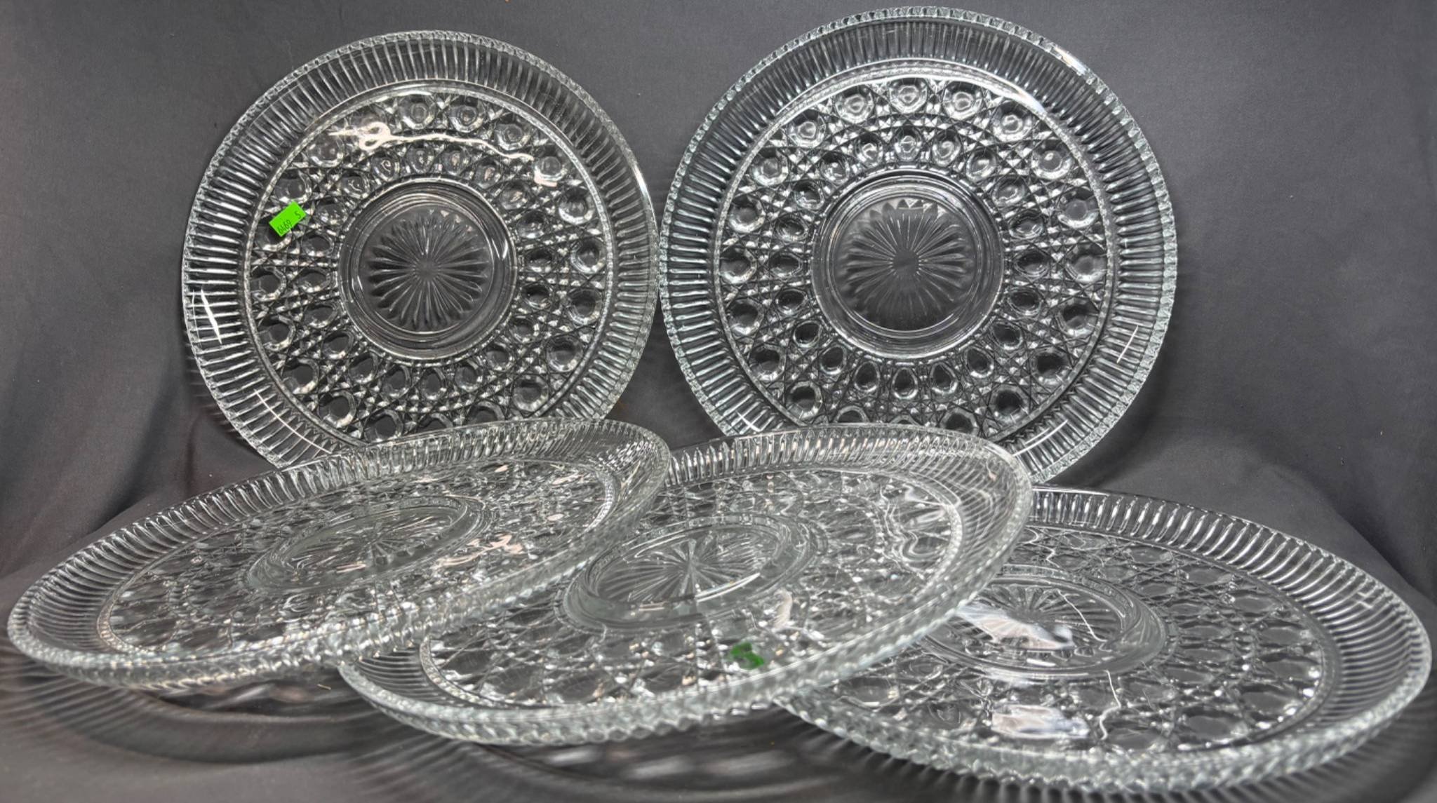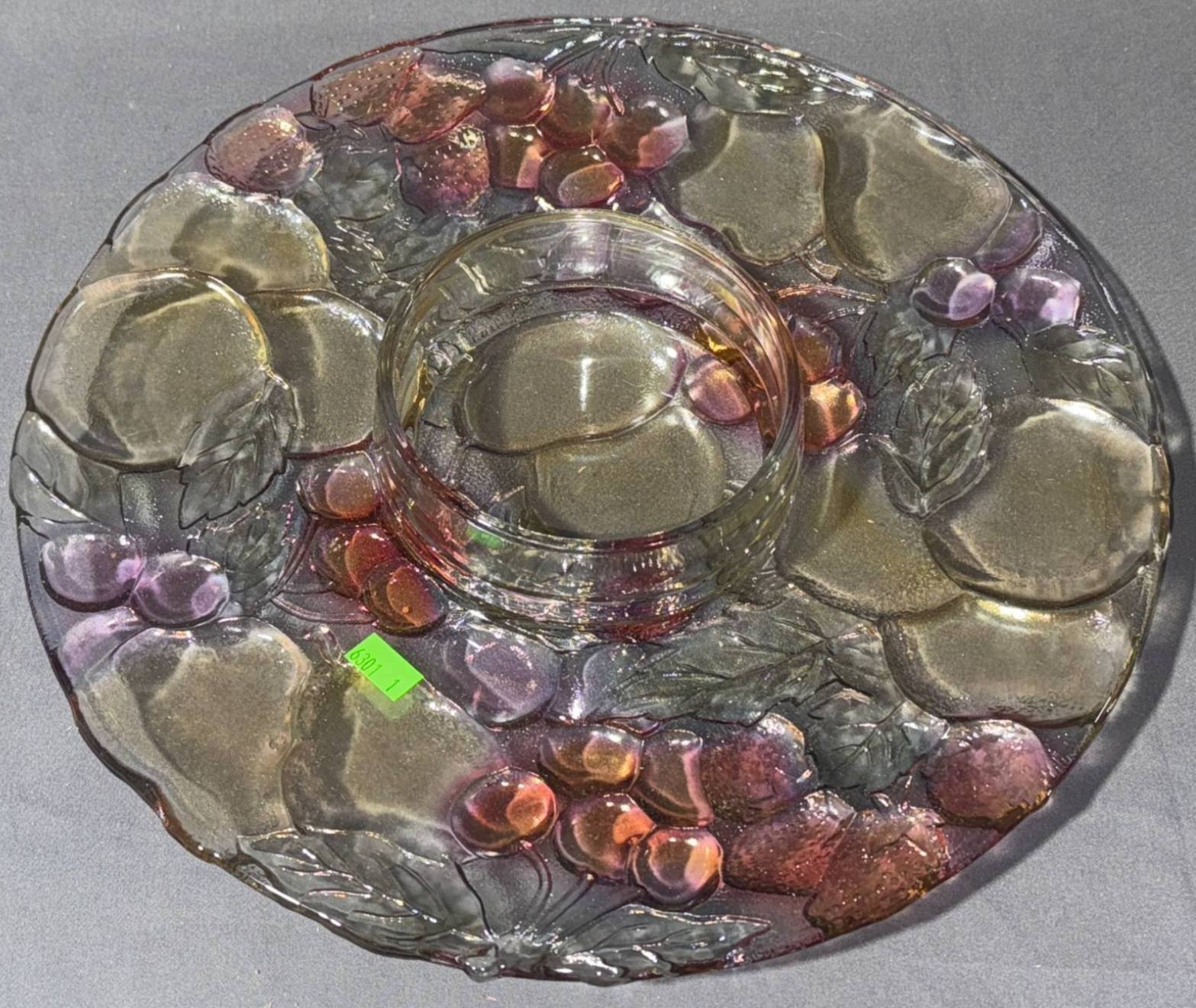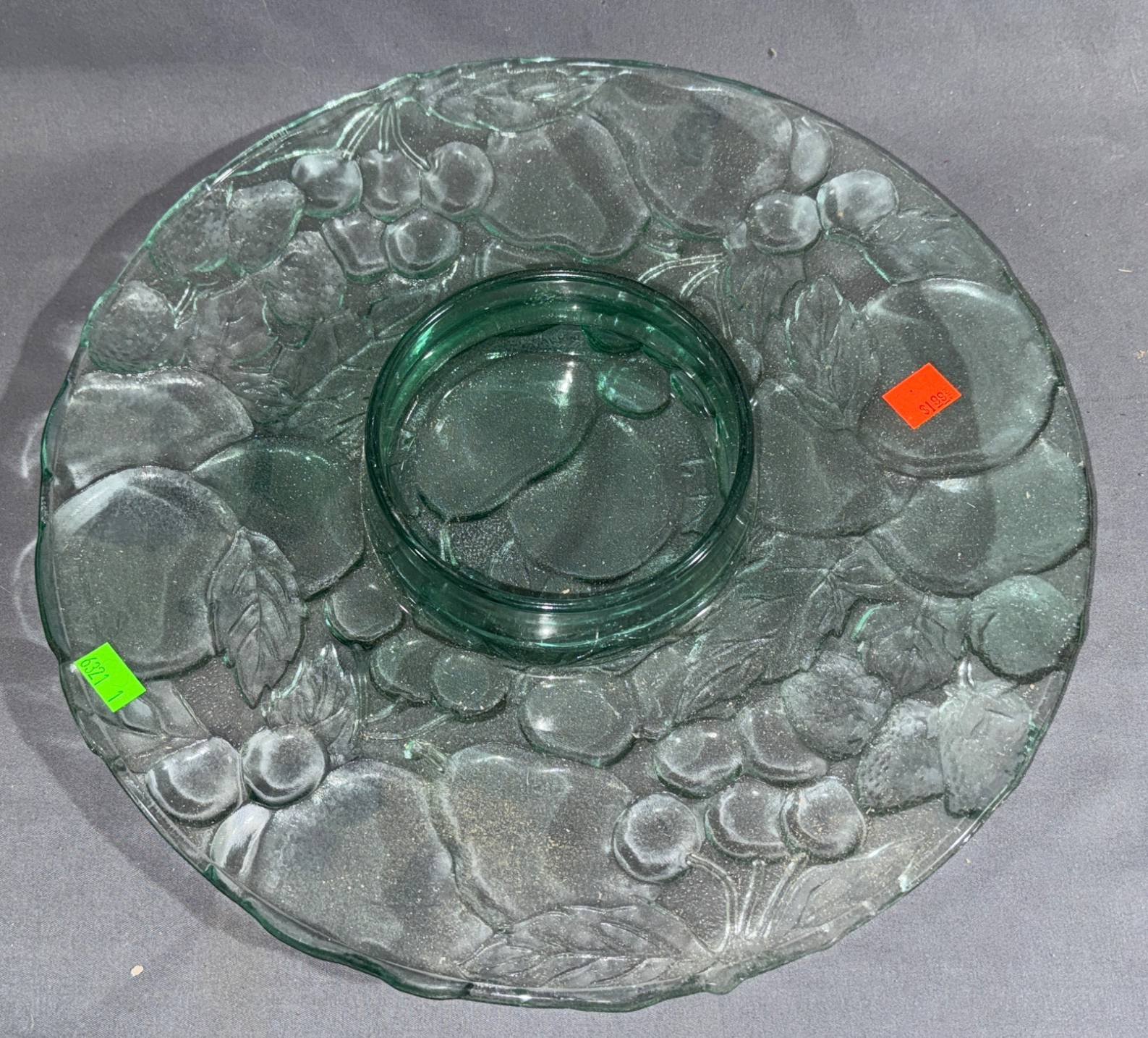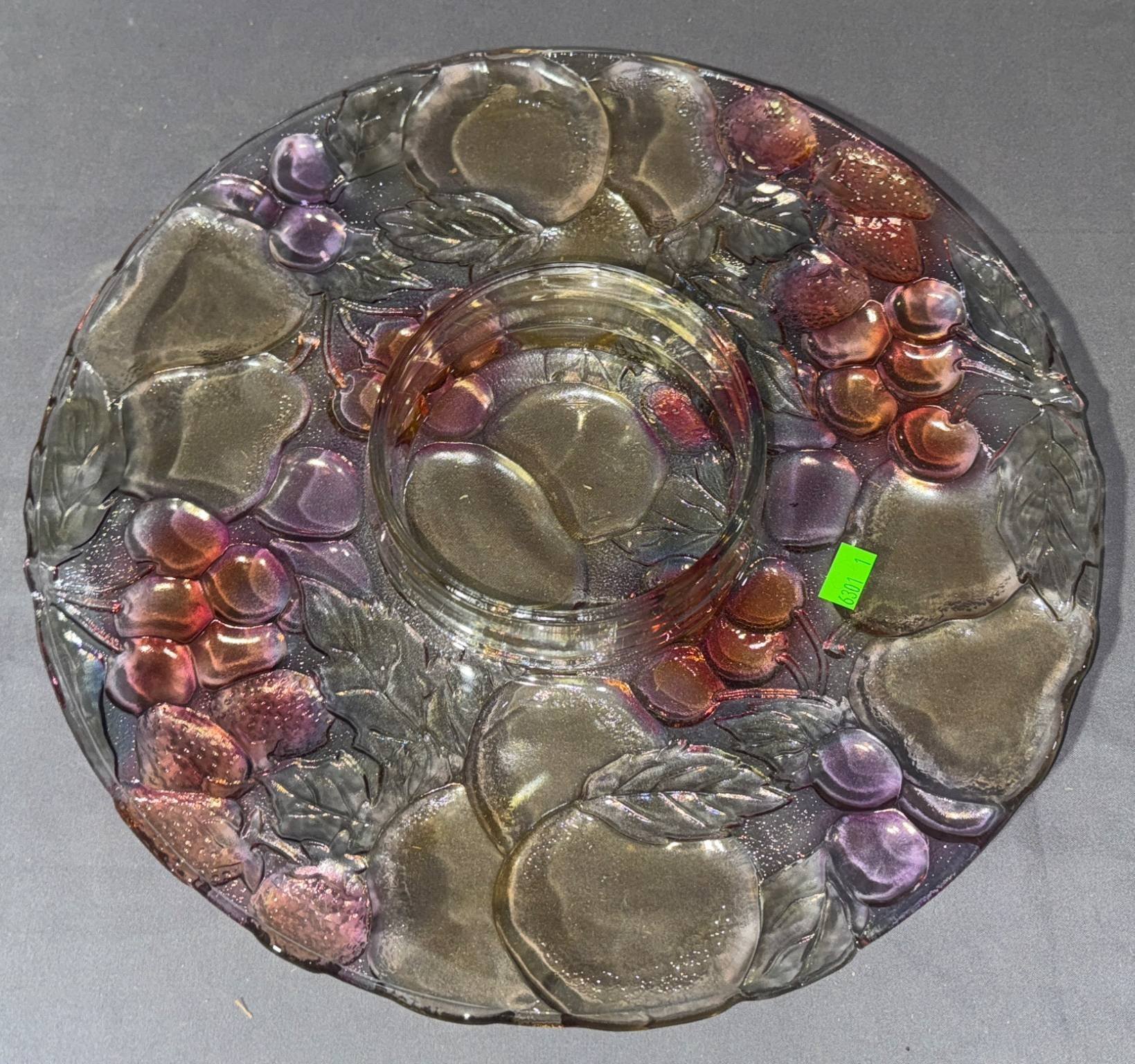 6020 Cut Glass Round Platter with Geometric and Floral Motifs 13”