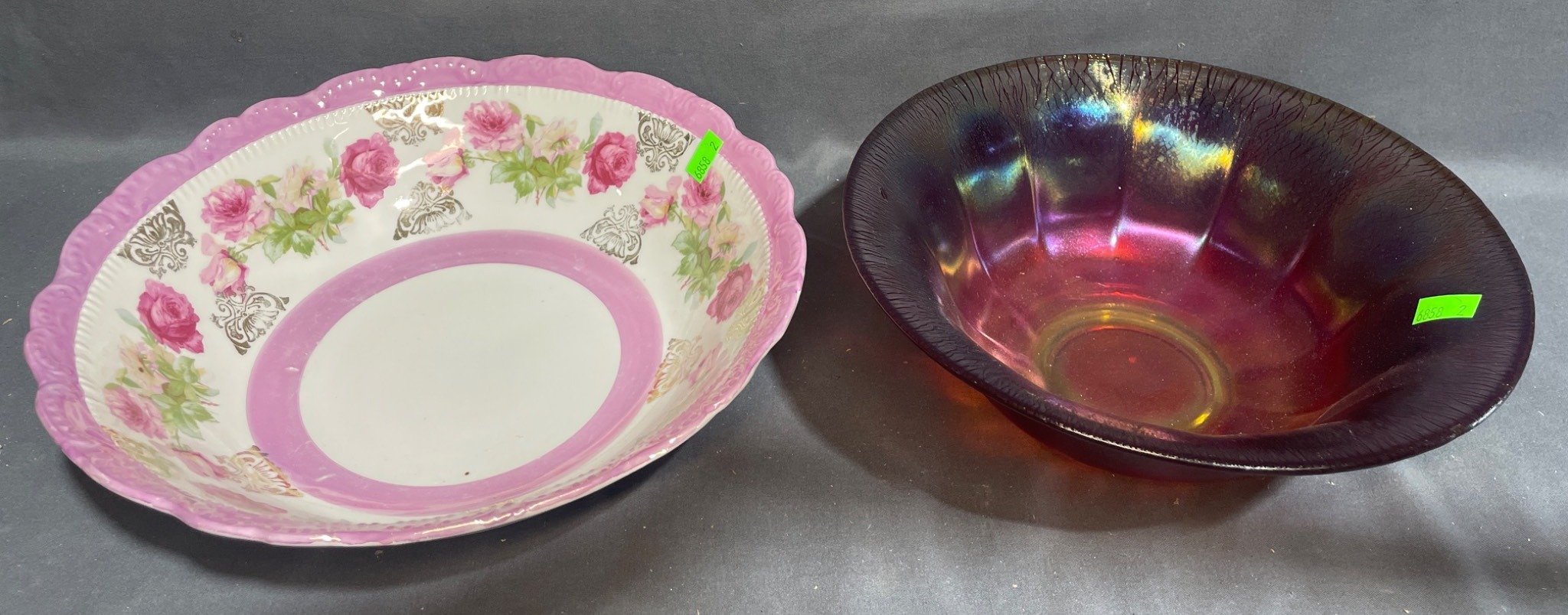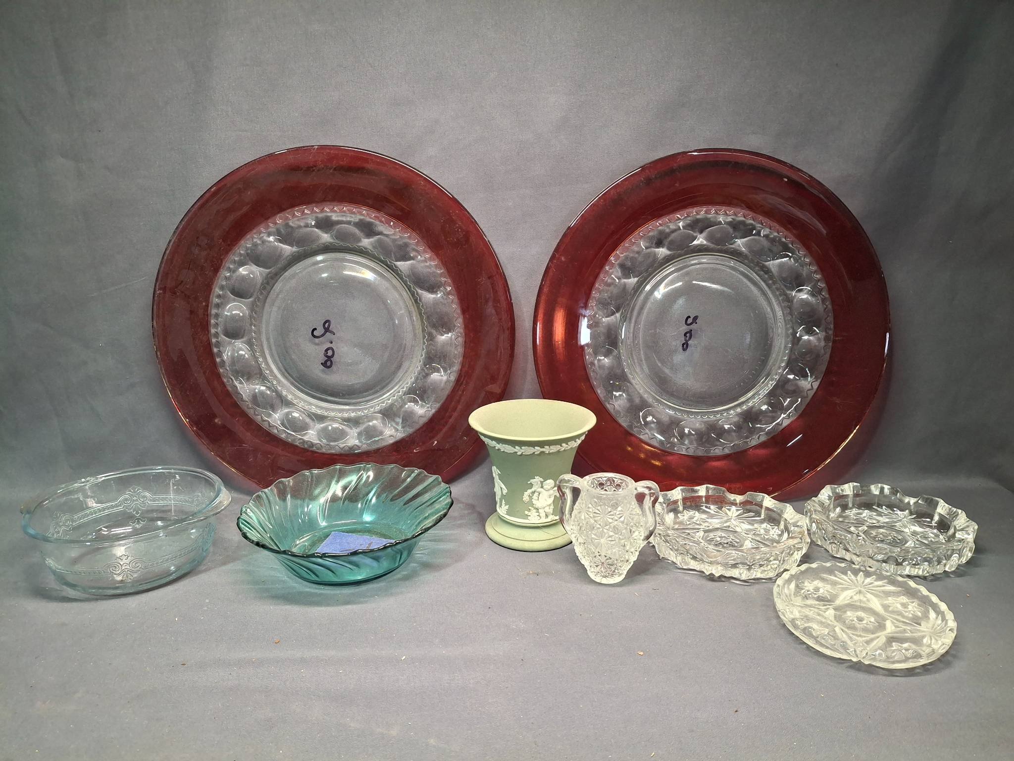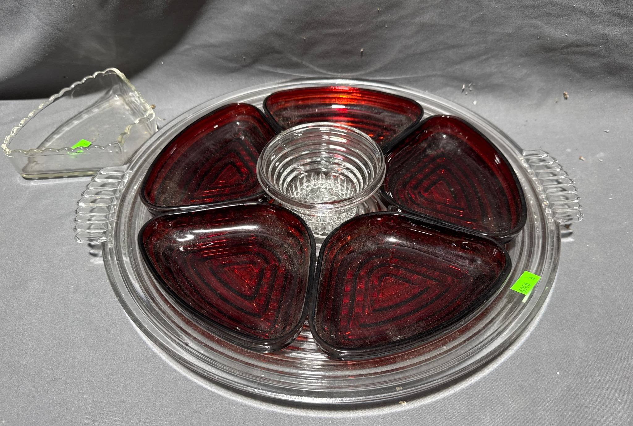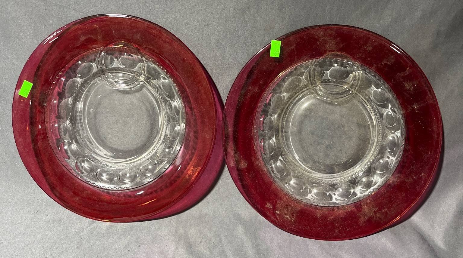 6021 2-Kings Crown Ruby Clear and Red Glass plates with Bubble Design 10”