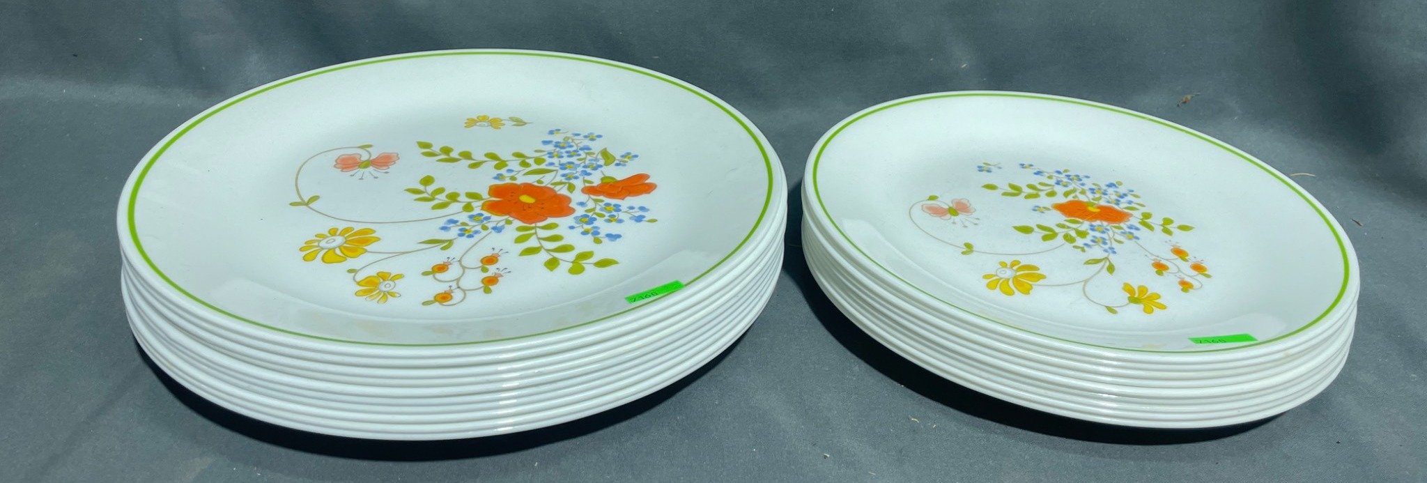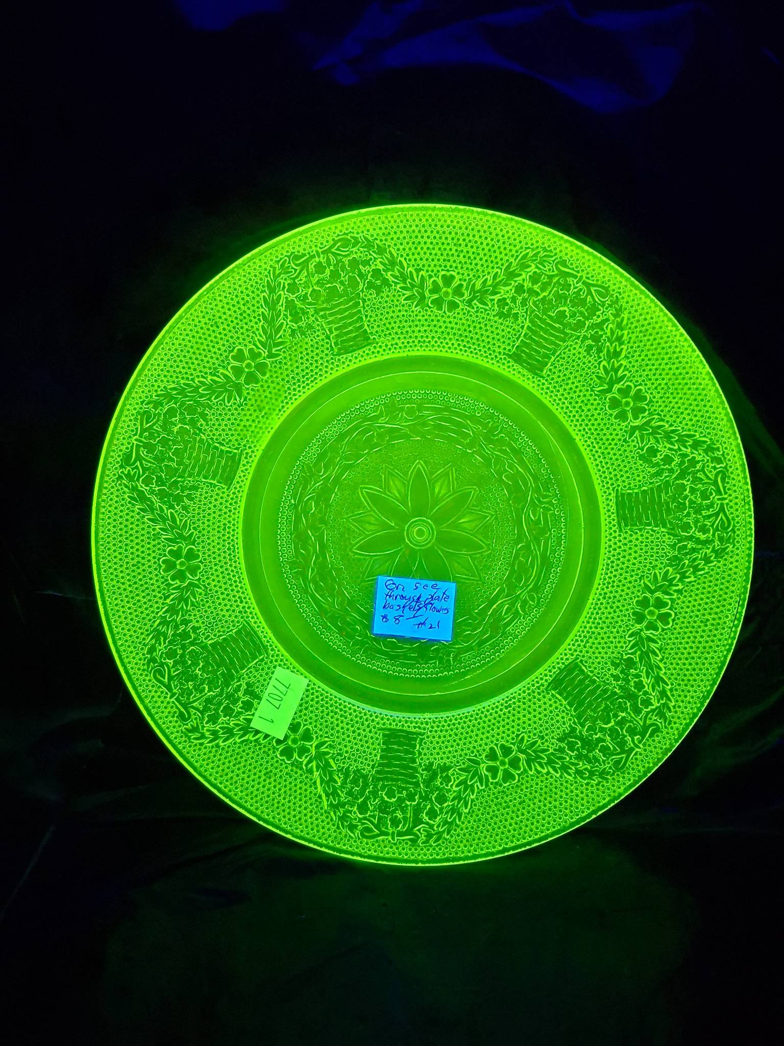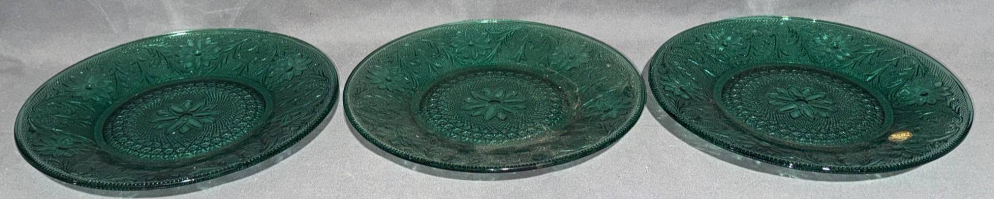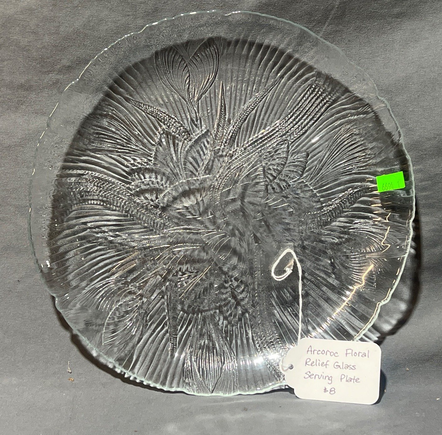 6022 2- Colored Glass Plates with Etched Floral Design by Arcoroc Exclusive 12”